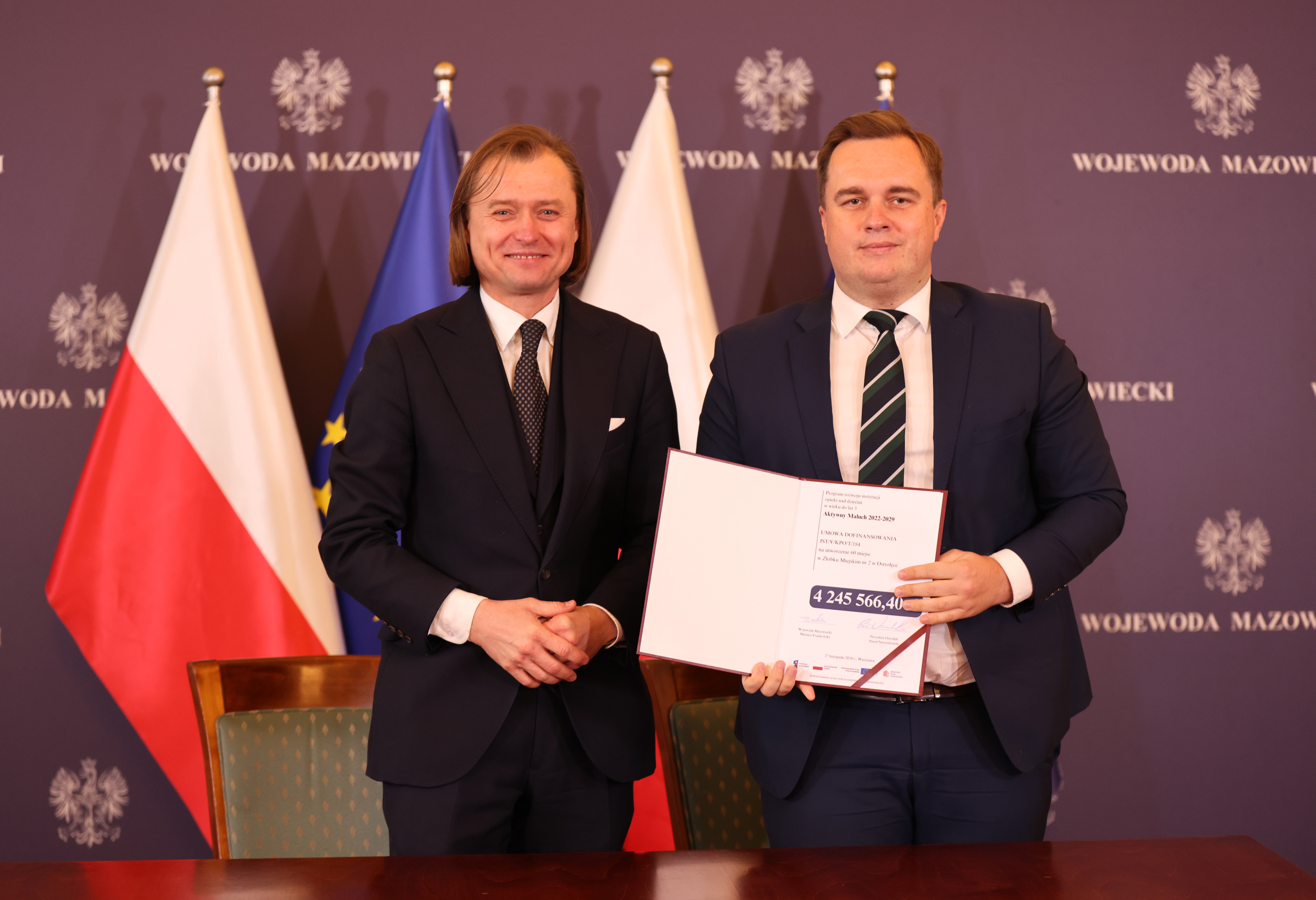 - Miasto Ostrołęka – umowa na kwotę 4 245 566,40 zł na utworzenie 60 miejsc w Żłobku Miejskim nr 2 w Ostrołęce.