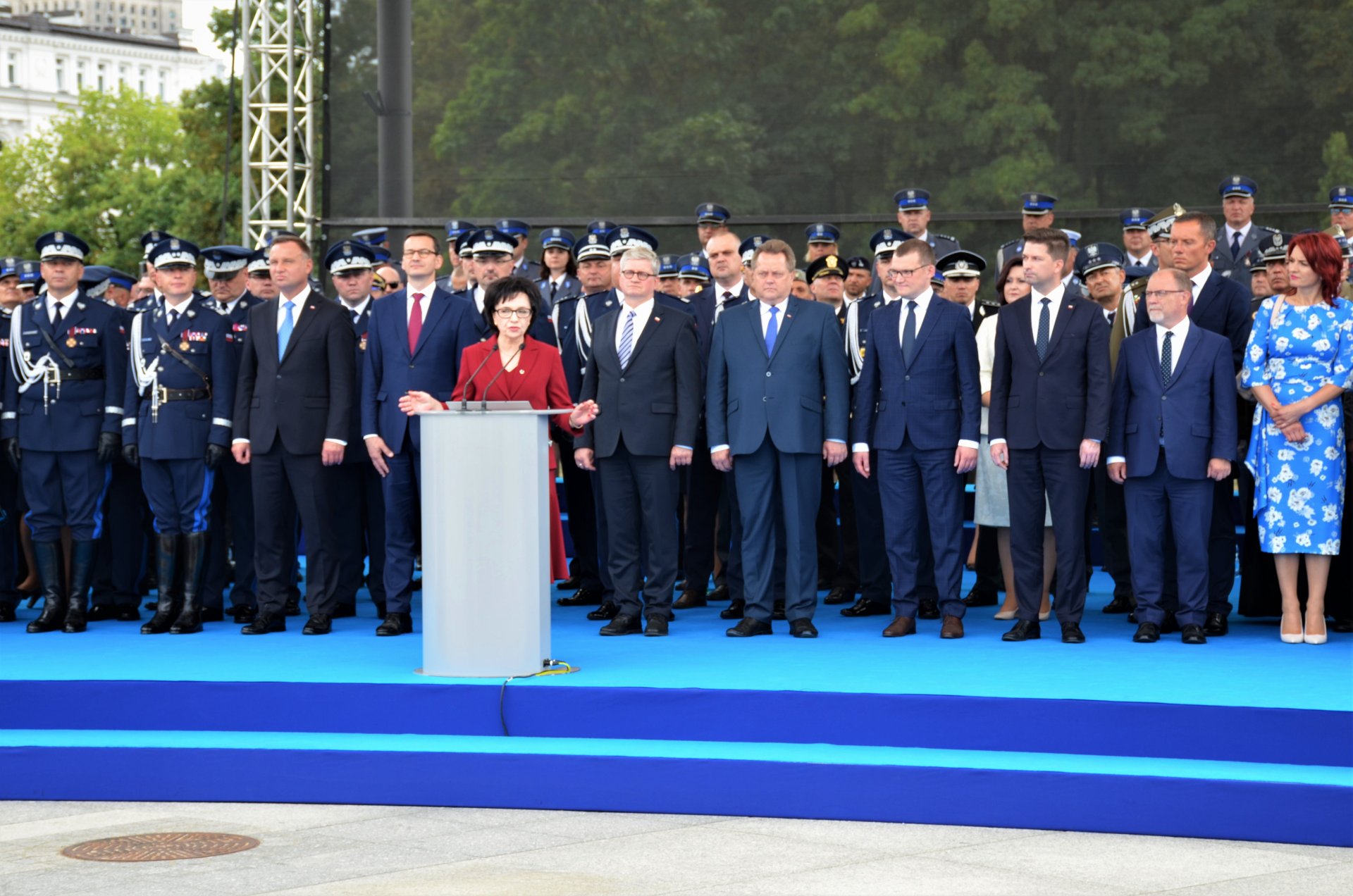W oficjalnych wystąpieniach Policjantom, Policjantkom oraz cywilnym pracownikom Policji wyrazy podziękowania złożyła również Minister Ministerstwa Spraw Wewnętrznych i Administracji Elżbieta Witek - Dbacie o ład, porządek publiczny, ale przede wszystkim dbacie o bezpieczeństwo obywateli. Bo tylko na takim fundamencie, jakim jest bezpieczeństwo, można budować dobrą przyszłość państwa.