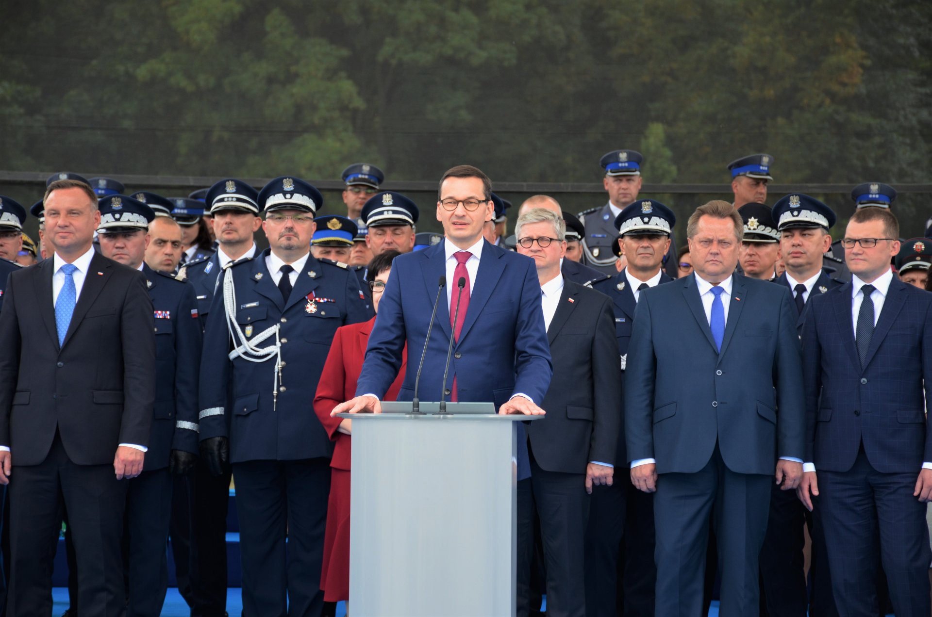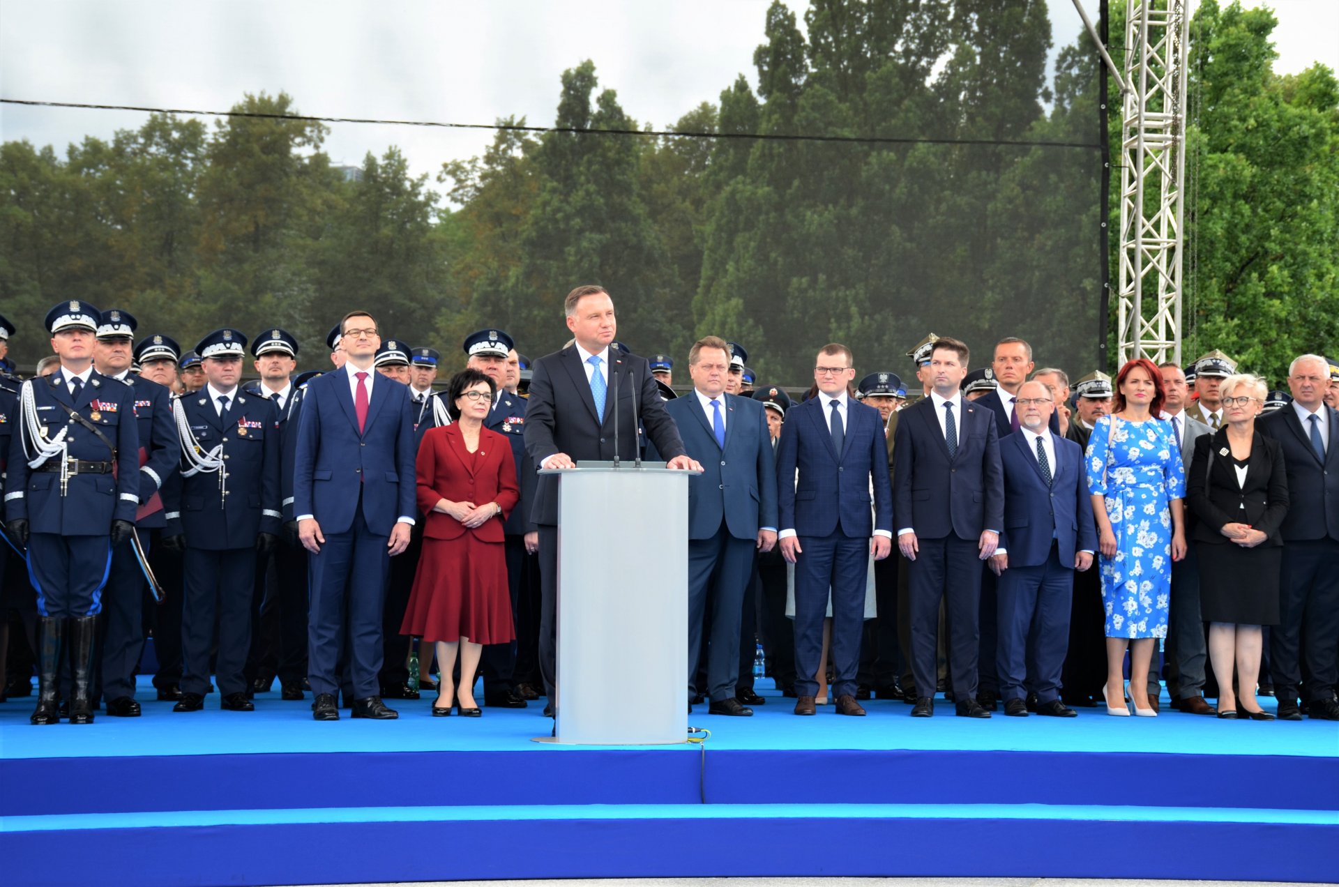 - Dziękuję wszystkim funkcjonariuszom policji i ich rodzinom za tę niezwykłą, oddaną służbę narodowi i ojczyźnie. Dziękuję za to, że jest to służba tak dobra, że zasługuje na tę niezwykle wysoką ocenę społeczną, to jest najważniejsze- powiedział Prezydent.
