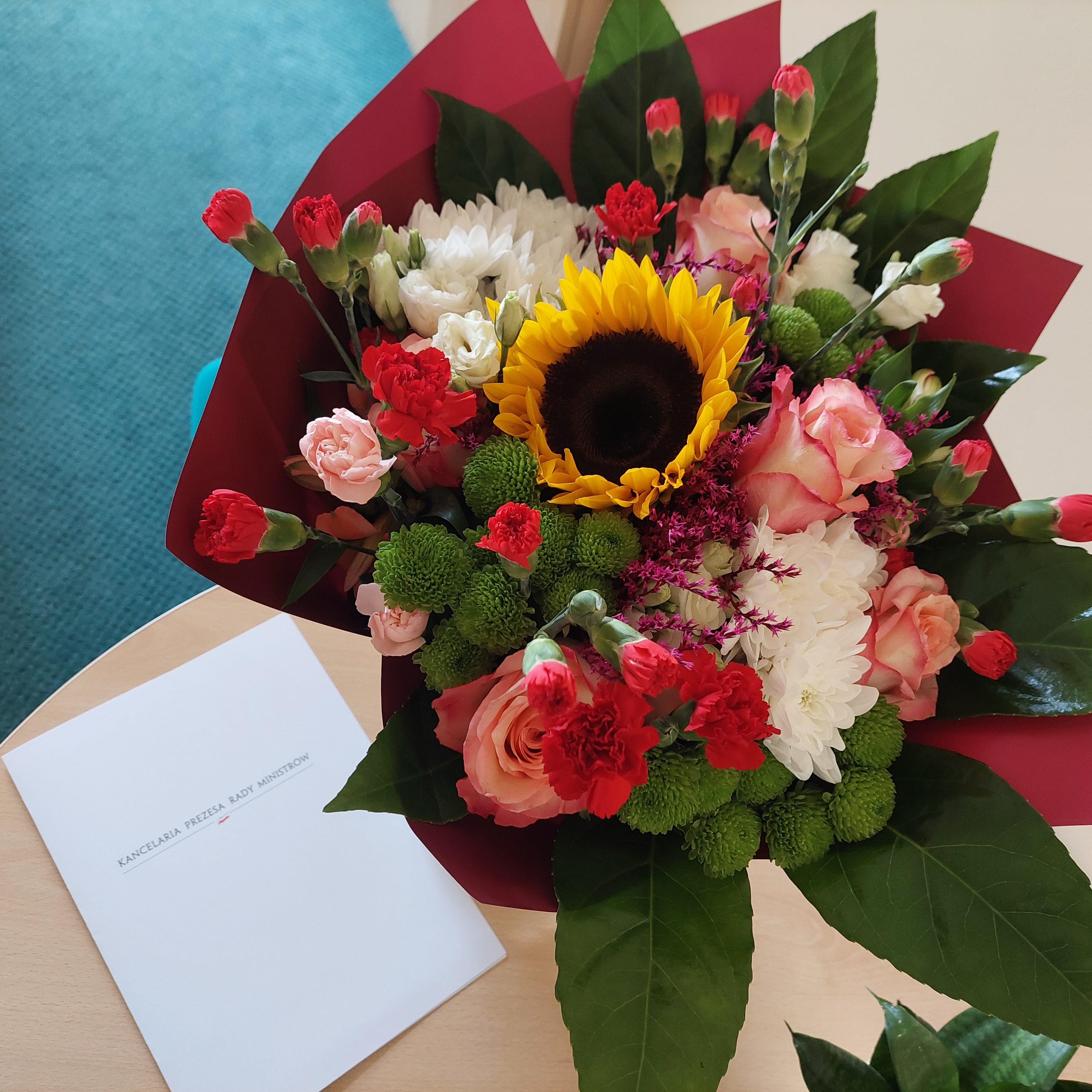 Ze względu na gorsze samopoczucie, życzenia i kwiaty odebrała córka Jubilatki. Pani Zofia na co dzień jest pogodną, uśmiechniętą osobą.