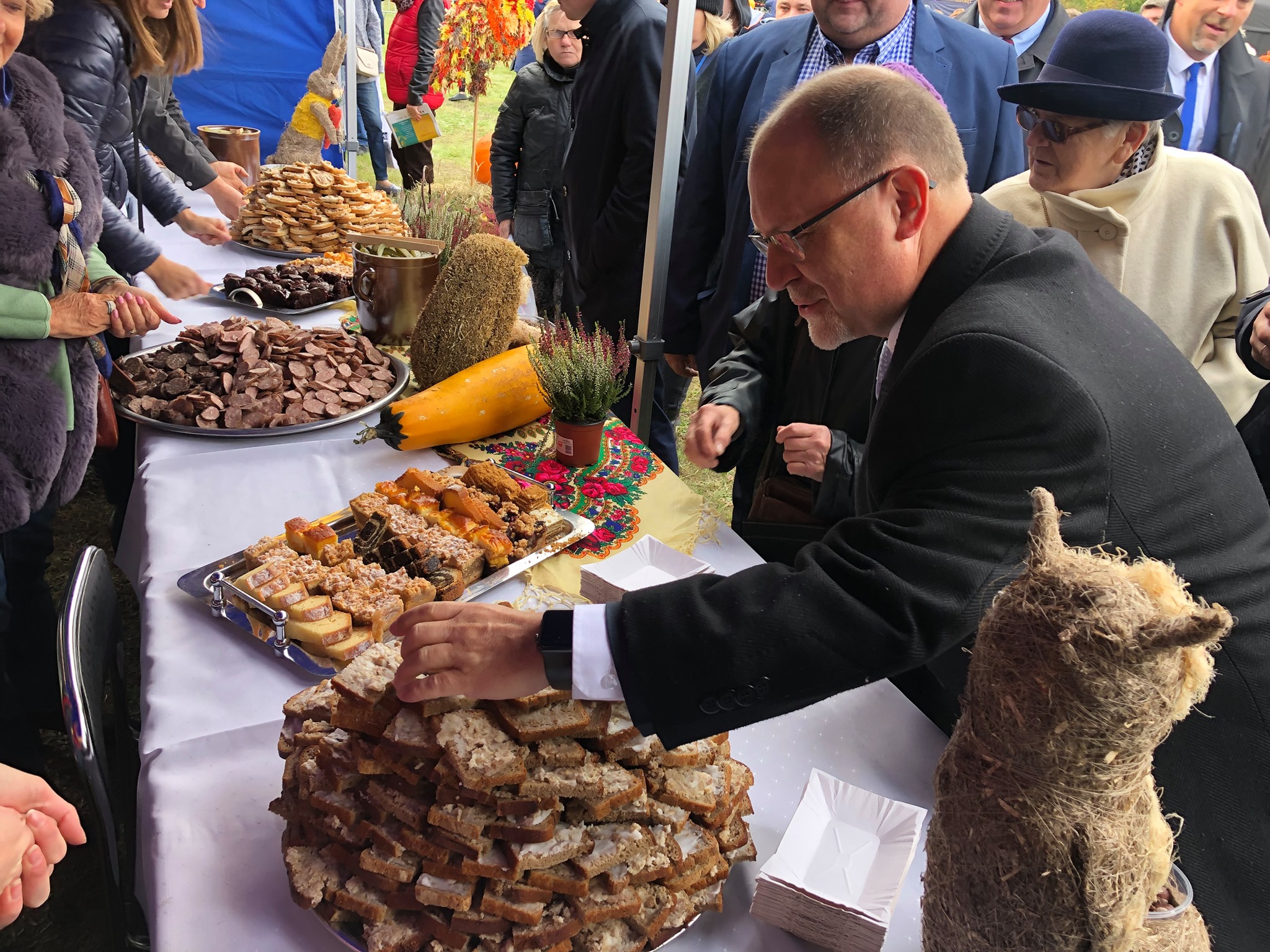 Po zakończeniu liturgii nastąpiło uroczyste rozpalenie dożynkowego ogniska, w którym udział wzięli: Wójt Maciej Mazur, Starosta Robert Wróbel, Zastępca Wójta Alicja Sokołowska, Przewodniczący Rady Eugeniusz Woźniakowski i ksiądz proboszcz Tomasz Osiadacz.