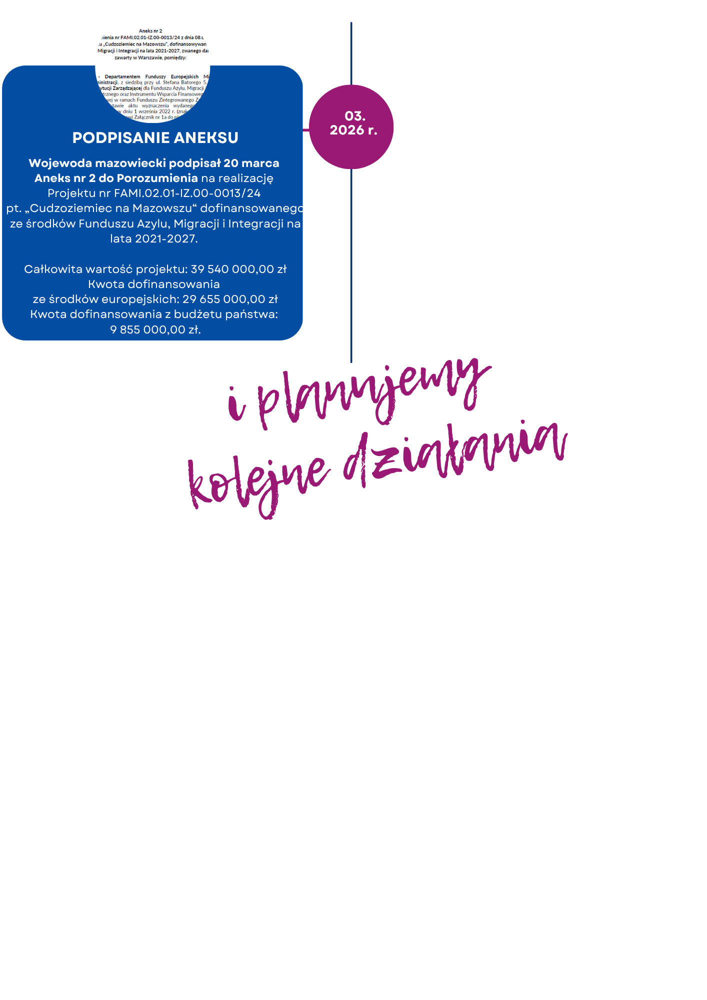 Od momentu podpisania przez Wojewodę Mazowieckiego 8 maja 2024 roku porozumienia finansowego nr FAMI.02.01-IZ.00-0013/24 zrealizowaliśmy:
