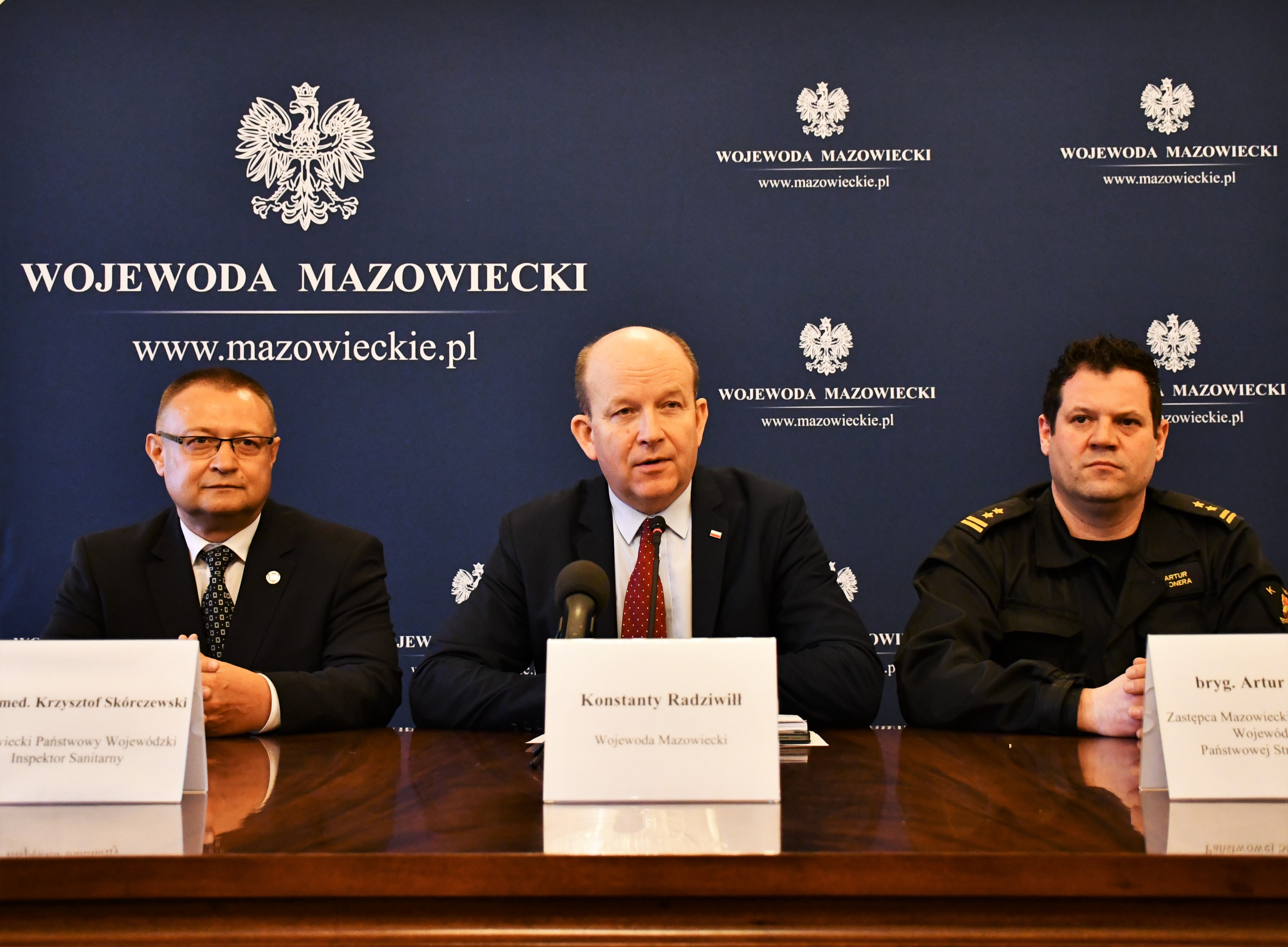 Wojewódzkie Centrum Zarządzania Kryzysowego monitoruje całodobowo sytuację na Mazowszu i jest gotowe do podjęcia działań wynikających z odpowiednich procedur. Wszelkie działania są podejmowane adekwatnie do sytuacji. Wojewoda na bieżąco raportuje o sytuacji na terenie województwa mazowieckiego Ministerstwu Zdrowia.