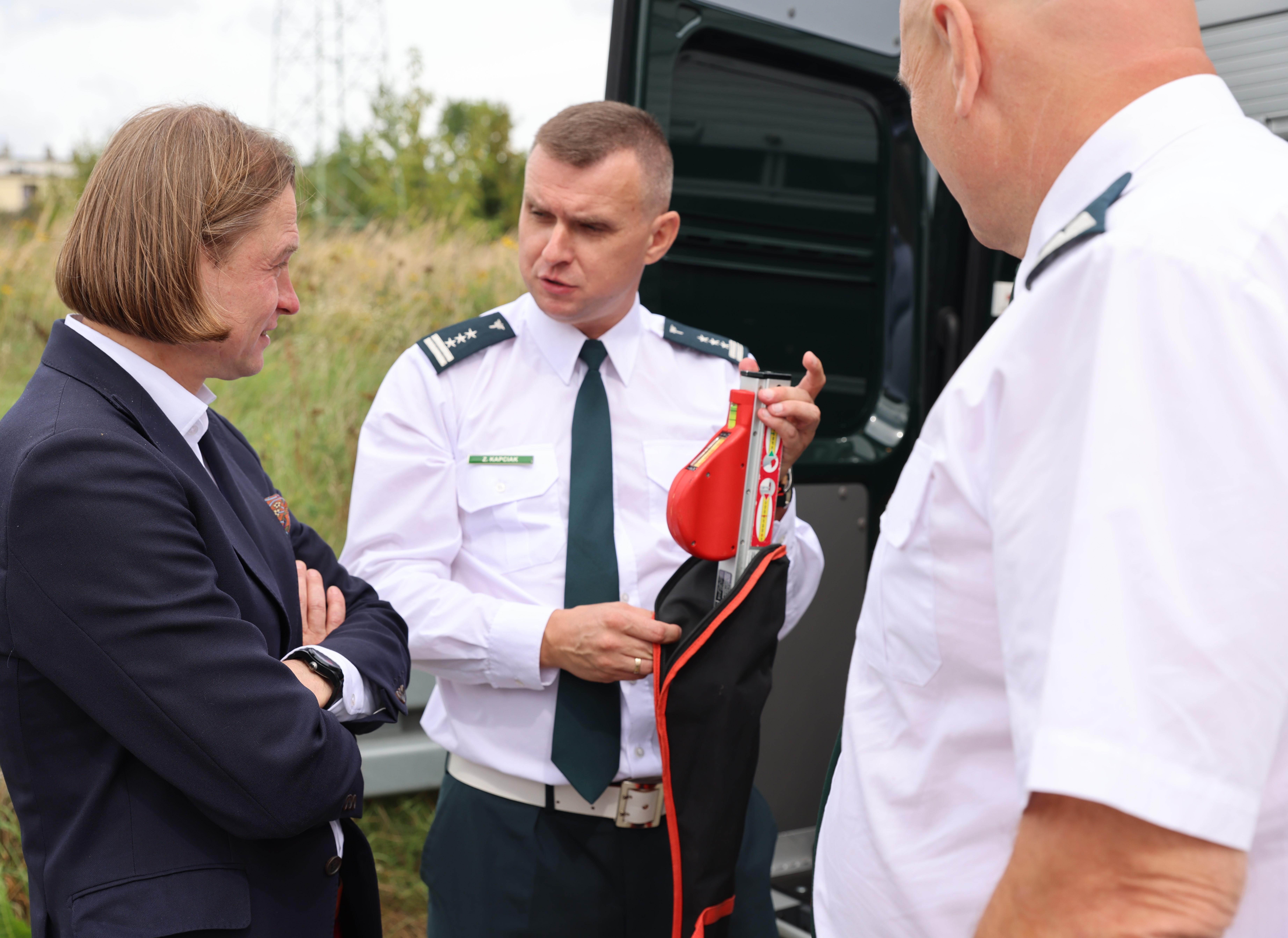 Wojewoda mógł też zobaczyć inspektorów w akcji oraz poznać funkcjonowanie Mobilnej Jednostki Diagnostycznej, która jest specjalistycznym urządzeniem pracującym w oparciu o elementy uniwersalnej linii diagnostycznej. Jest wyposażona w hydraulicznie rozkładane najazdy przewożone w zabudowanym samochodzie ciężarowym. Zakres kontroli pojazdów ciężarowych i autobusów w Mobilnej Jednostce Diagnostycznej jest niemal identyczny jak podczas badania wykonywanego w Okręgowej Stacji Kontroli Pojazdów.