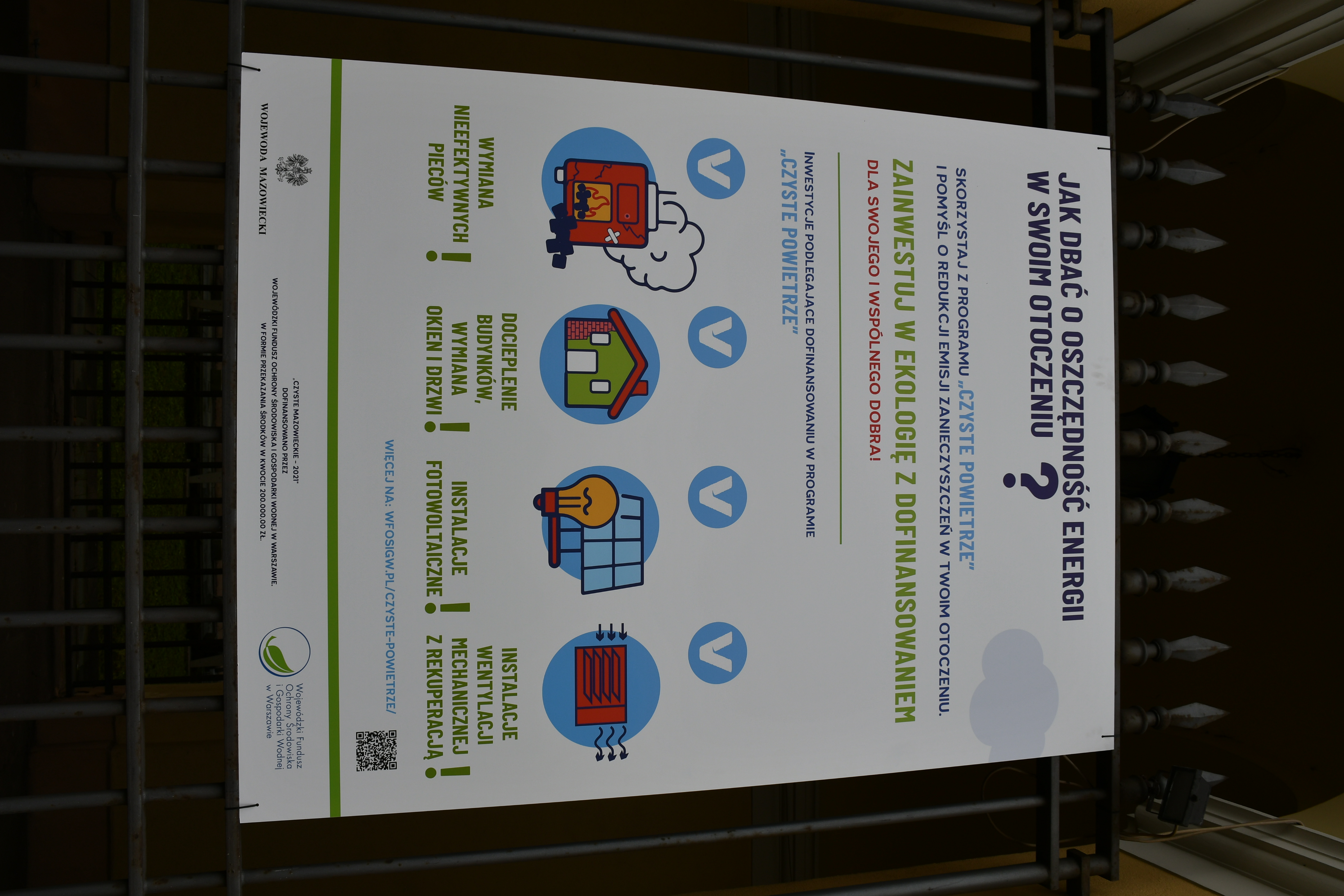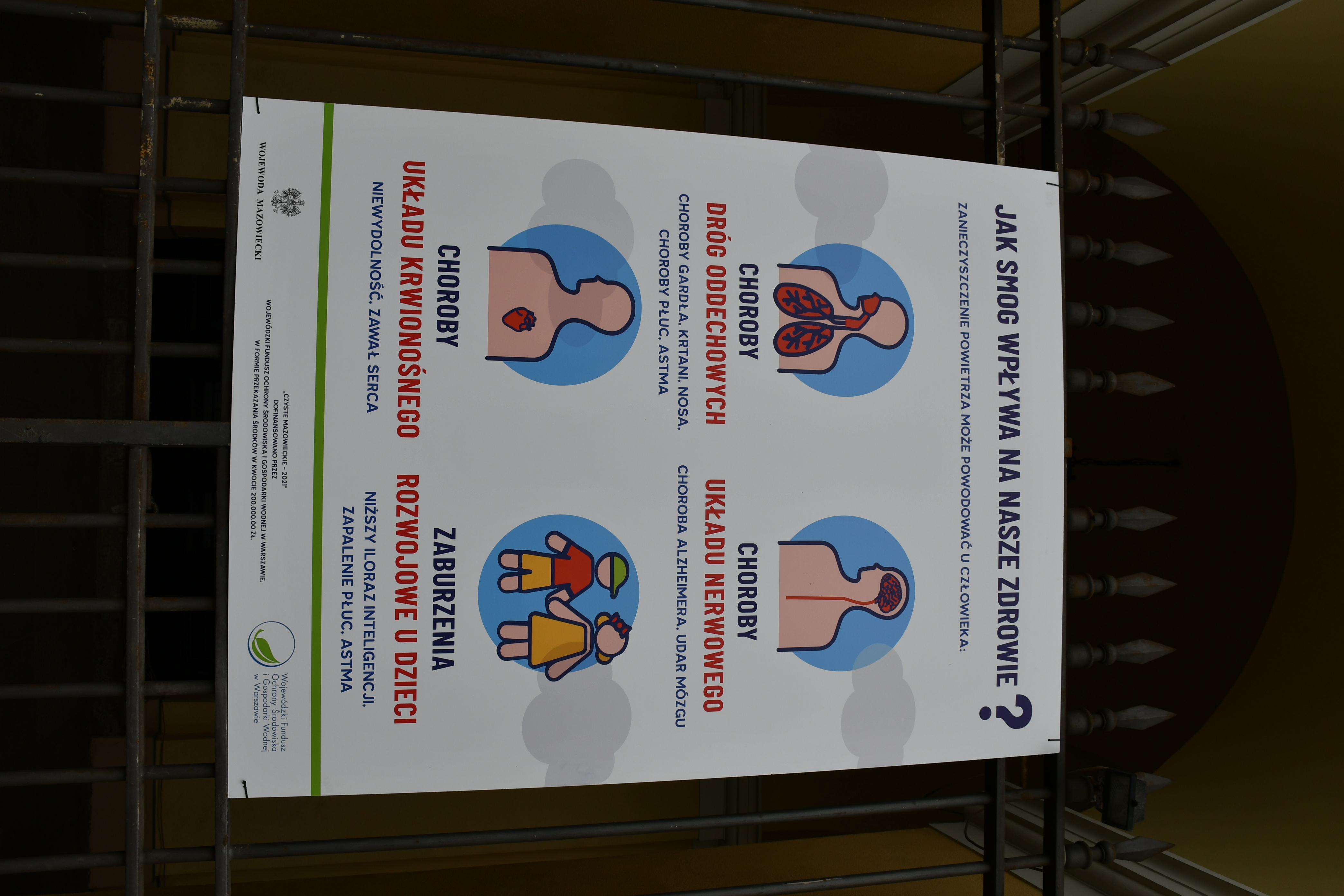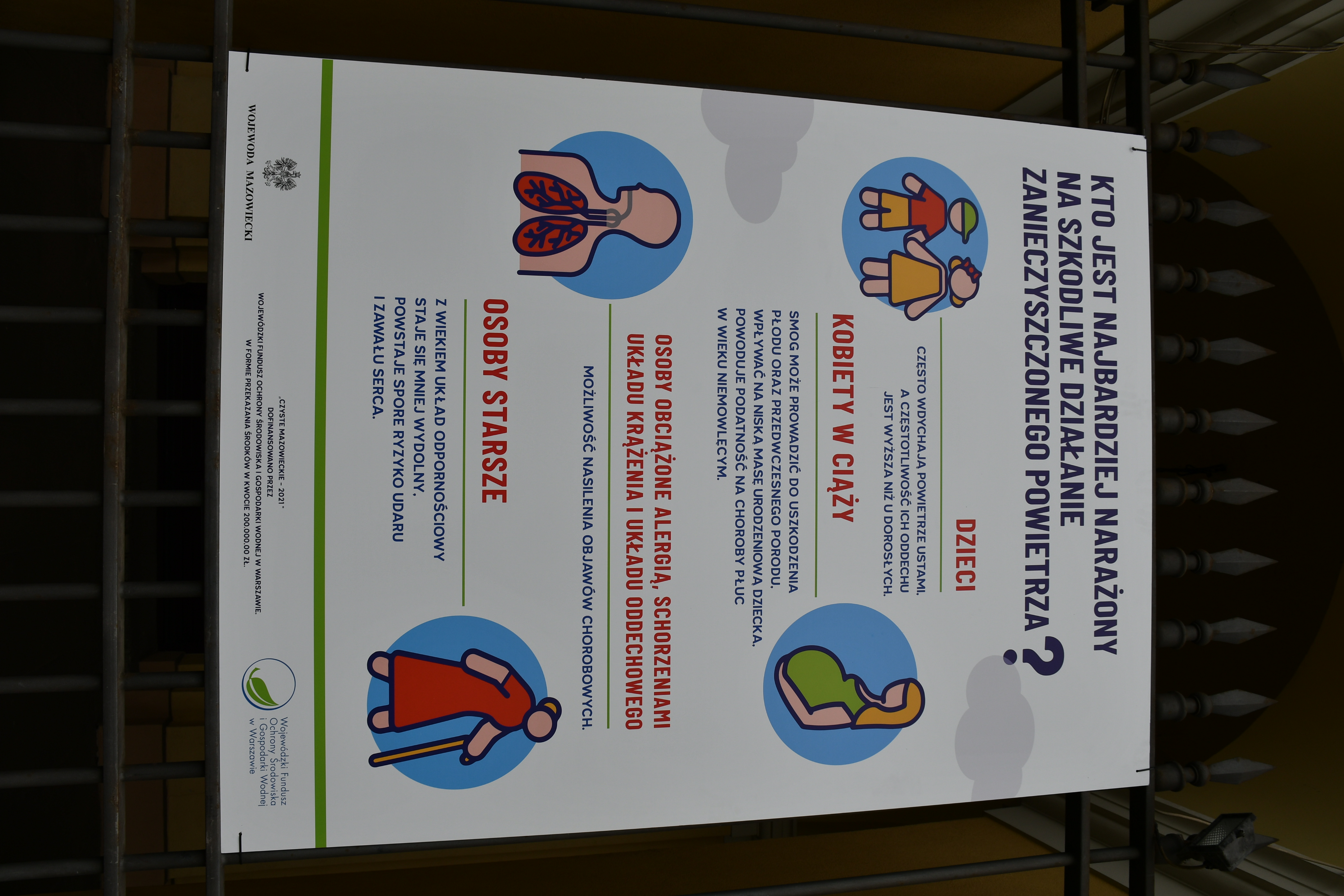 W arkadach budynku Mazowieckiego Urzędu Wojewódzkiego w Warszawie przy Placu Bankowym znajduje się wystawa plenerowa, która w czytelny sposób przekazuje podstawowe informacje o zanieczyszczeniu powietrza i możliwościach niwelacji zagrożenia. Ekspozycja prezentowana jest w ramach kampanii „Czyste mazowieckie – 2021”.