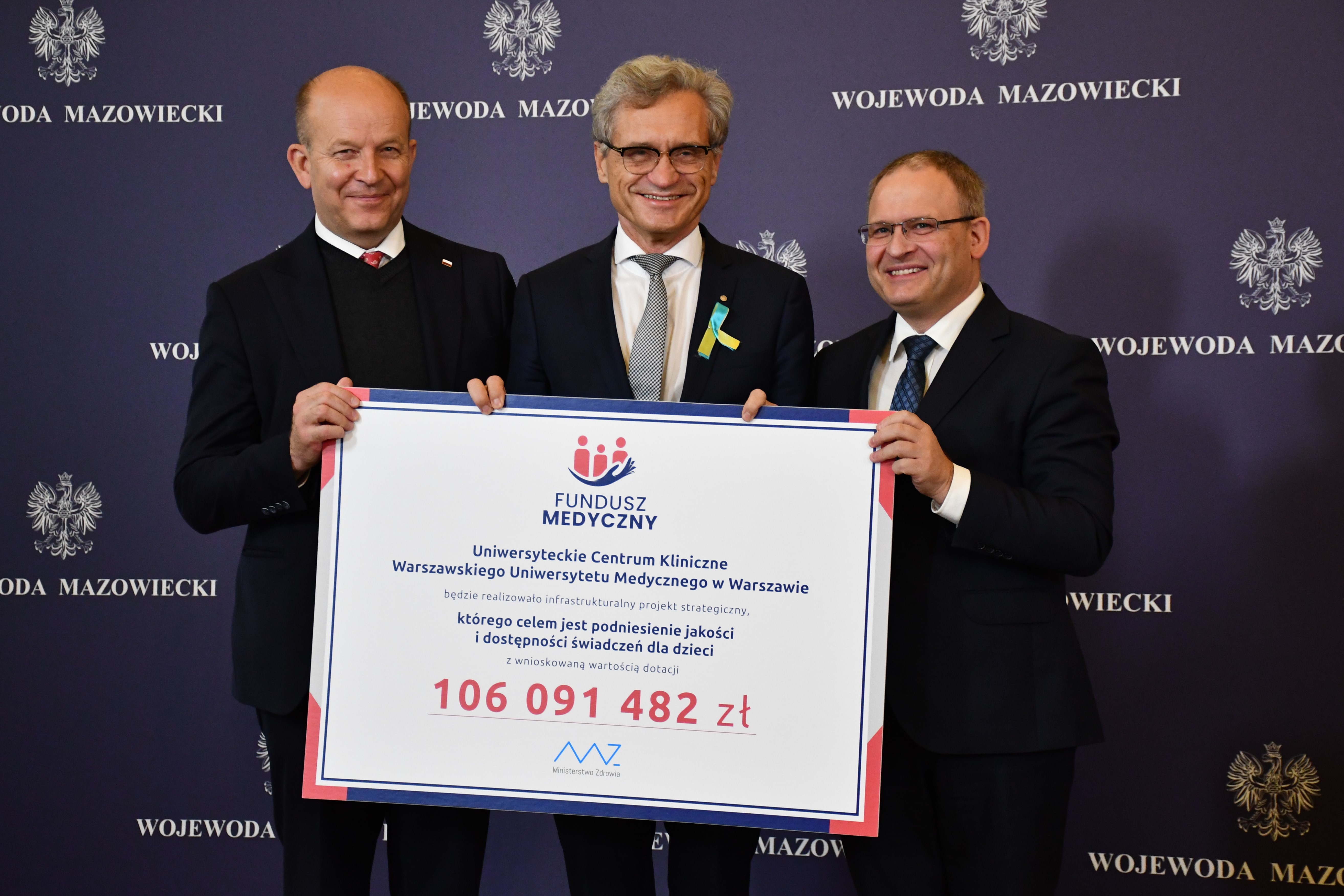 - System służby zdrowia składa się z wielu elementów, w których każdy jest istotny. Dlatego ważne jest istnienie tych trzech wysokospecjalistycznych pediatrycznych szpitali, gdzie leczą się najmłodsi mieszkańcy Warszawy, całego województwa mazowieckiego oraz całej Polski. Dlatego już teraz, w bardzo konkretny sposób planujemy rozbudowę oraz doposażenie w bardzo nowoczesny sprzęt tych trzech szpitali. To wyposażenie pozwoli na budowanie potencjału psychiatrii dziecięcej, onkologii, genetyki dziecięcej i innych specjalności, które są podstawowe do leczenia najtrudniejszych przypadków. Dziękuję bardzo za ten Fundusz i za to, że trzy szpitale z Warszawy zostały wybrane w ramach konkursu – powiedział Wojewoda Mazowiecki Konstanty Radziwiłł.