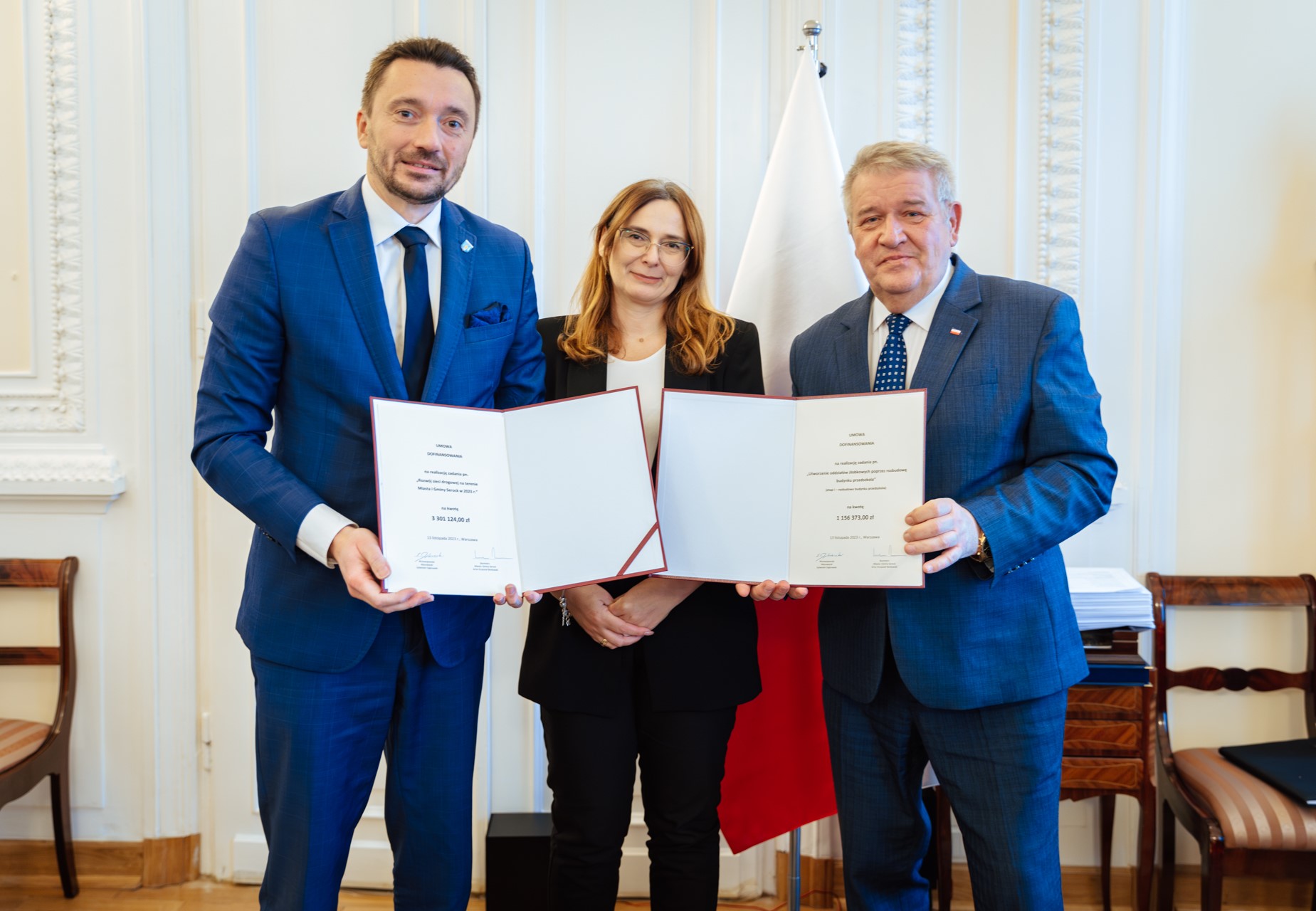 Wicewojewoda Mazowiecki Sylwester Dąbrowski podpisał dwie umowy z Burmistrzem Miasta i Gminy Serock Arturem Krzysztofem Borkowskim na realizację nowych inwestycji na terenie Serocka. Łączna kwota dofinansowań to ponad 4,4 mln zł. W spotkaniu uczestniczyła również Monika Karpińska, Skarbnik Miasta i Gminy Serock oraz Katarzyna Harmata, Dyrektor Wydziału Transportu i Rozwoju Regionalnego Mazowieckiego Urzędu Wojewódzkiego w Warszawie.
