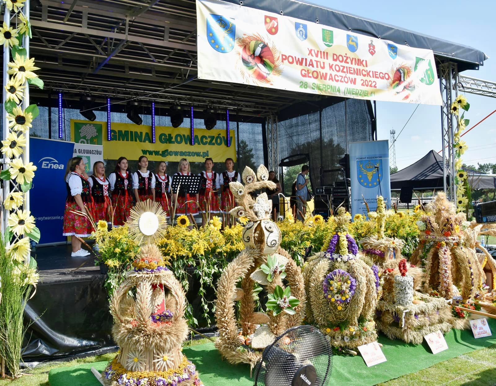 Dożynki w powiecie kozienickim rozpoczęły się mszą świętą w kościele pw. św. Wawrzyńca w Głowaczowie. Po nabożeństwie uczestnicy dożynek przeszli w pochodzie na teren stadionu, gdzie odbyła się oficjalna część święta. W trakcie wydarzenia na scenie zaprezentował się zespół „Słowiczanki”. Odbył się również obrzęd dzielenia się chlebem – symbolizującym pracę rolnika, dostatek oraz pomyślność.