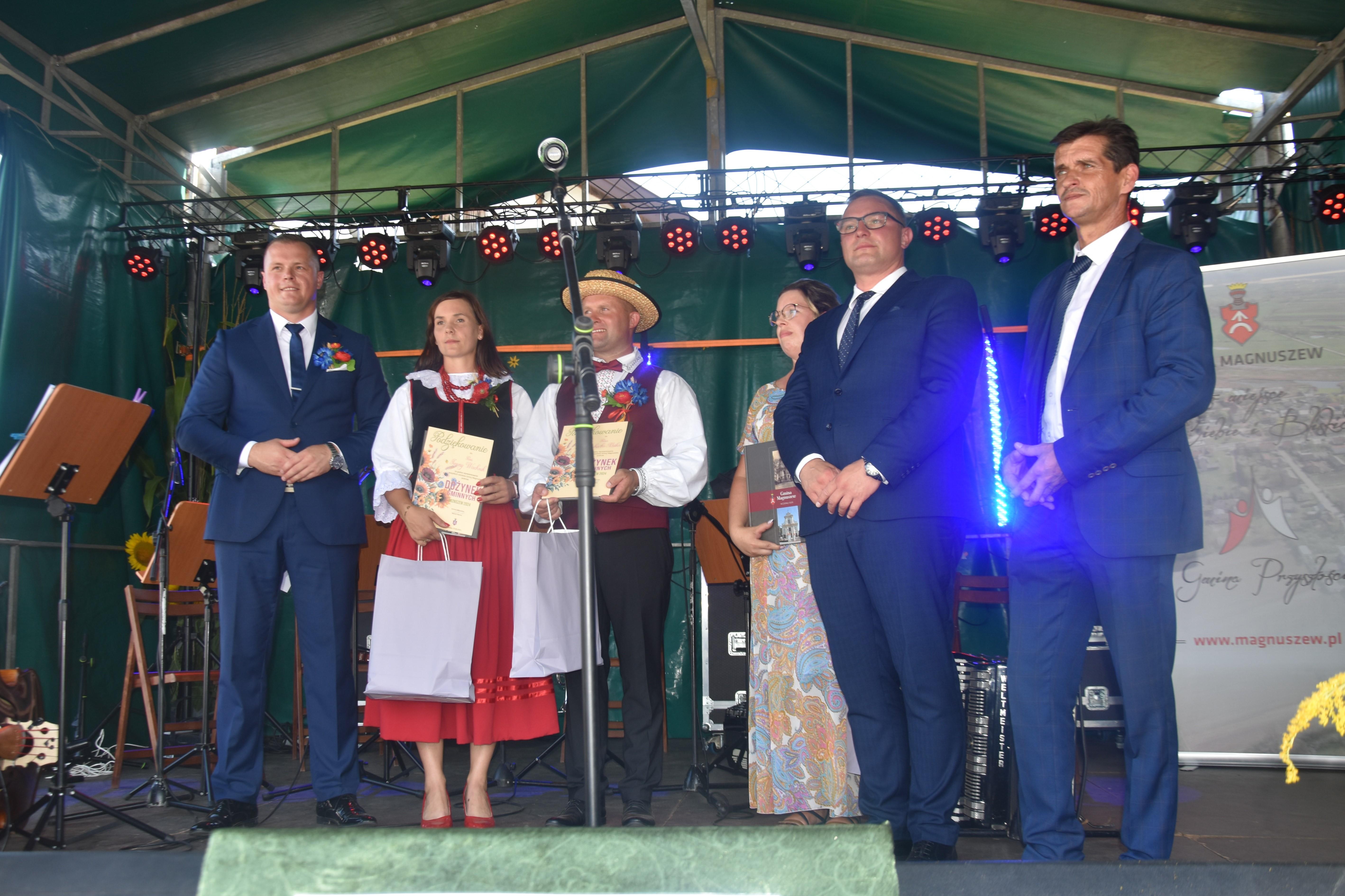 z tegorocznych zbóż starostowie dożynkowi przekazali na ręce Burmistrza Magnuszewa Wojciecha Wachnika. Zgodnie z ludowym zwyczajem chleb podzielono między wszystkich uczestników uroczystości.