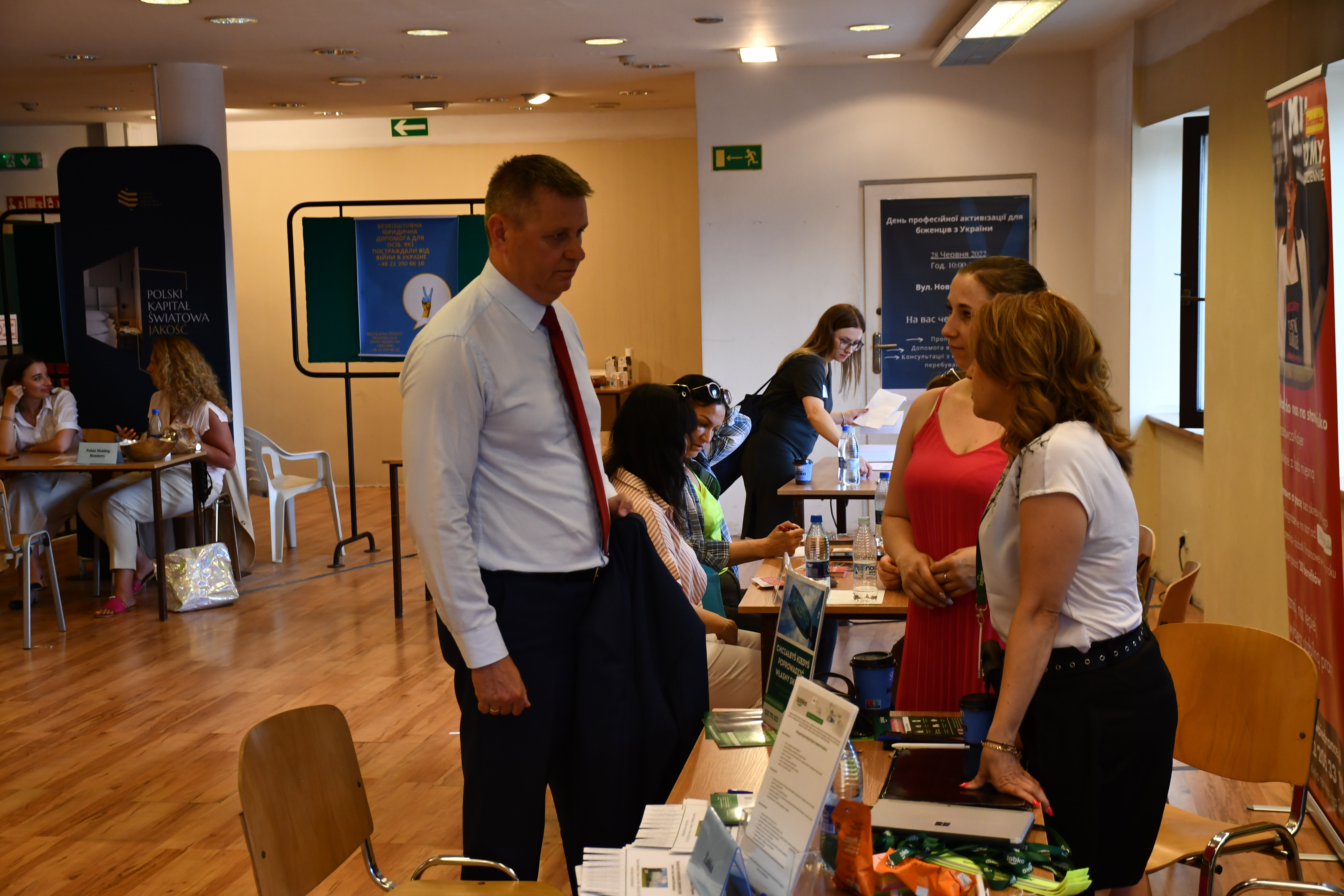 28 czerwca br., przy ul. Nowy Świat 15/17, miała miejsce kolejna edycja Dnia Aktywizacji Zawodowej dla uchodźców z Ukrainy w Warszawie. W wydarzeniu uczestniczył Wicewojewoda Mazowiecki Artur Standowicz. Podczas wielu rozmów i spotkań, w godz.: 10:00 – 16:00, można było m.in.: poznać zasady pisania CV, przebiegu rozmowy kwalifikacyjnej, czy poznać oferty pracy. W akcji udział wzięło ponad 350 osób.