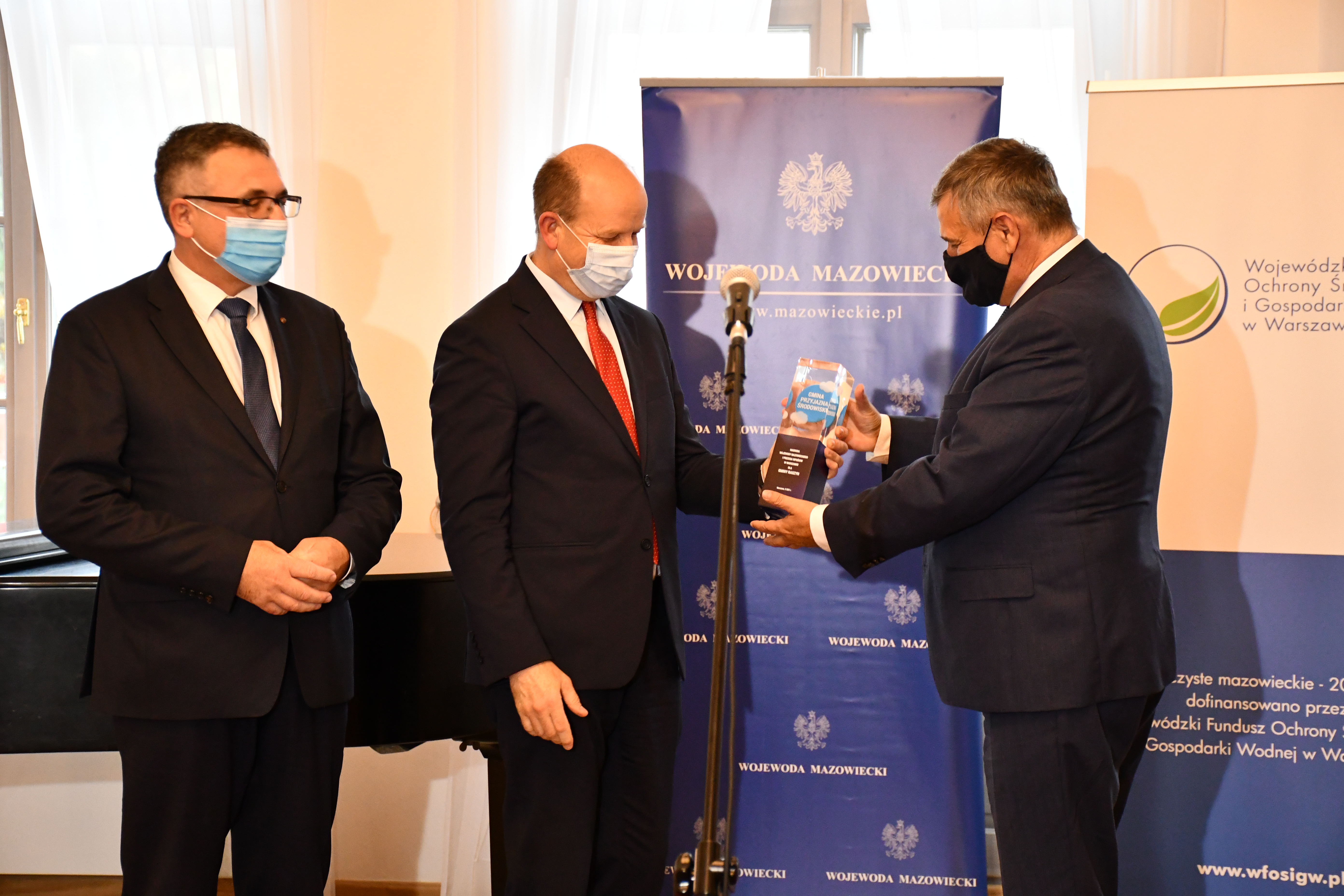 Następnie wręczono statuetkę Wojewody Mazowieckiego oraz Prezesa WFOŚiGW w Warszawie „Gmina przyjazna środowisku” Wójtowi Raszyna Andrzejowi Zarębie oraz wybrano trzy najlepsze prace plastyczne dotyczące ekologii i czystego powietrza.
