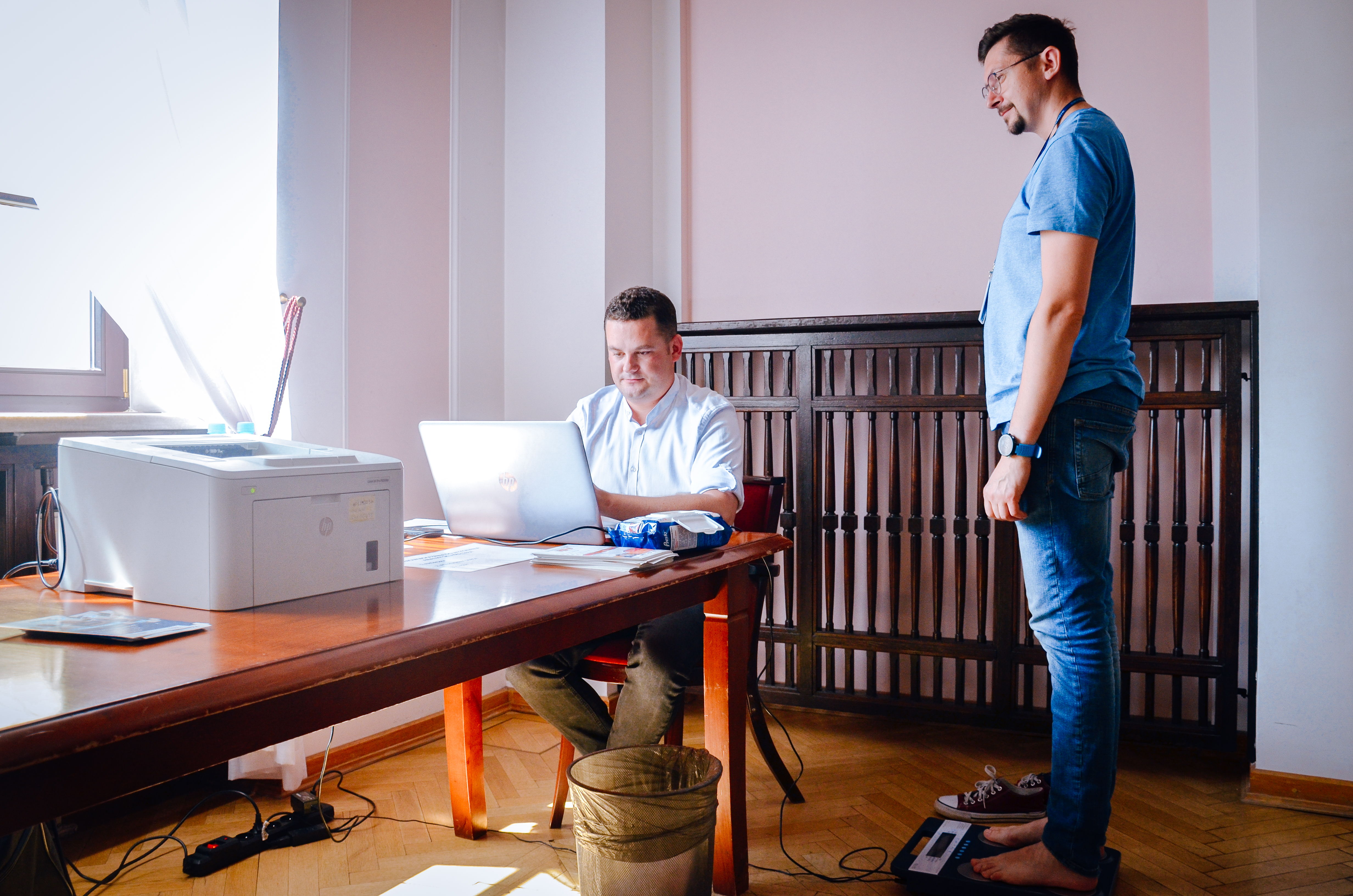 W piątek, 30 czerwca br. pracownicy Mazowieckiego Urzędu Wojewódzkiego mieli okazję na wykonanie specjalnym analizatorem pomiaru składu ciała oraz mogli uczestniczyć w wykładach w formie hybrydowej na temat otyłości oraz szkodliwości wyrobów tytoniowych. Prelekcja została zorganizowana w związku z Europejskim Dniem Walki z Otyłością, który był obchodzony 22 maja br. oraz Światowym Dniem bez Tytoniu, który przypadał 31 maja br.