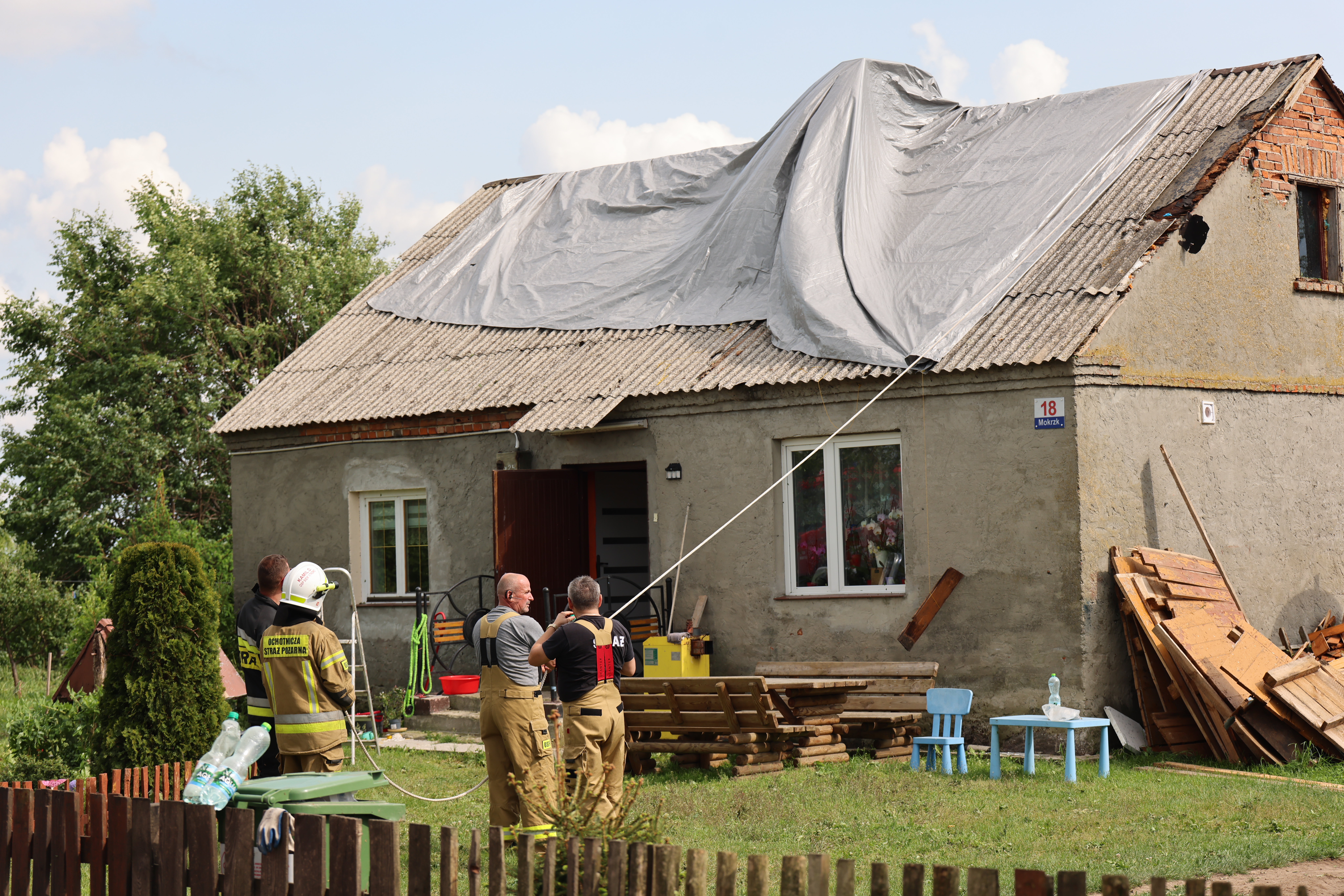 Zgłoszenia wpłynęły także z powiatu gostynińskiego (15 zgłoszeń), przasnyskiego (16 zgłoszeń) oraz płońskiego (14 zgłoszeń). Wszędzie informowano o zerwanych dachach i powalonych drzewach. Obecnie trwa szacowanie strat.