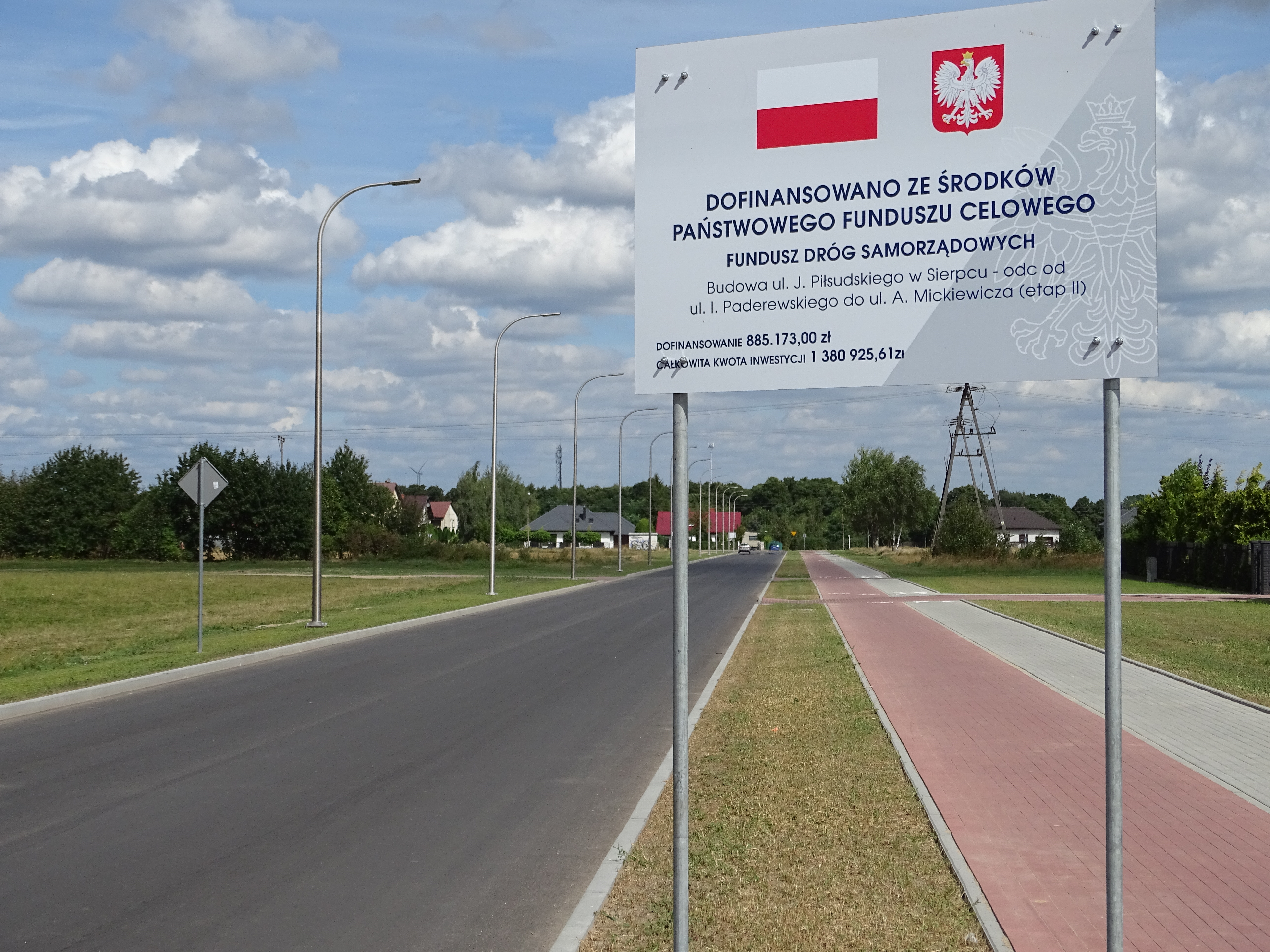 Zostało sfinalizowane zadanie „Budowa ul. Piłsudskiego w Sierpcu – odc. Od ul. I. Paderewskiego do ul. A. Mickiewicza (etap II)”. W ramach projektu zmodernizowano drogę o długości 861 m., a na jego realizację przyznano dofinansowanie w wysokości 885 173,00 zł.