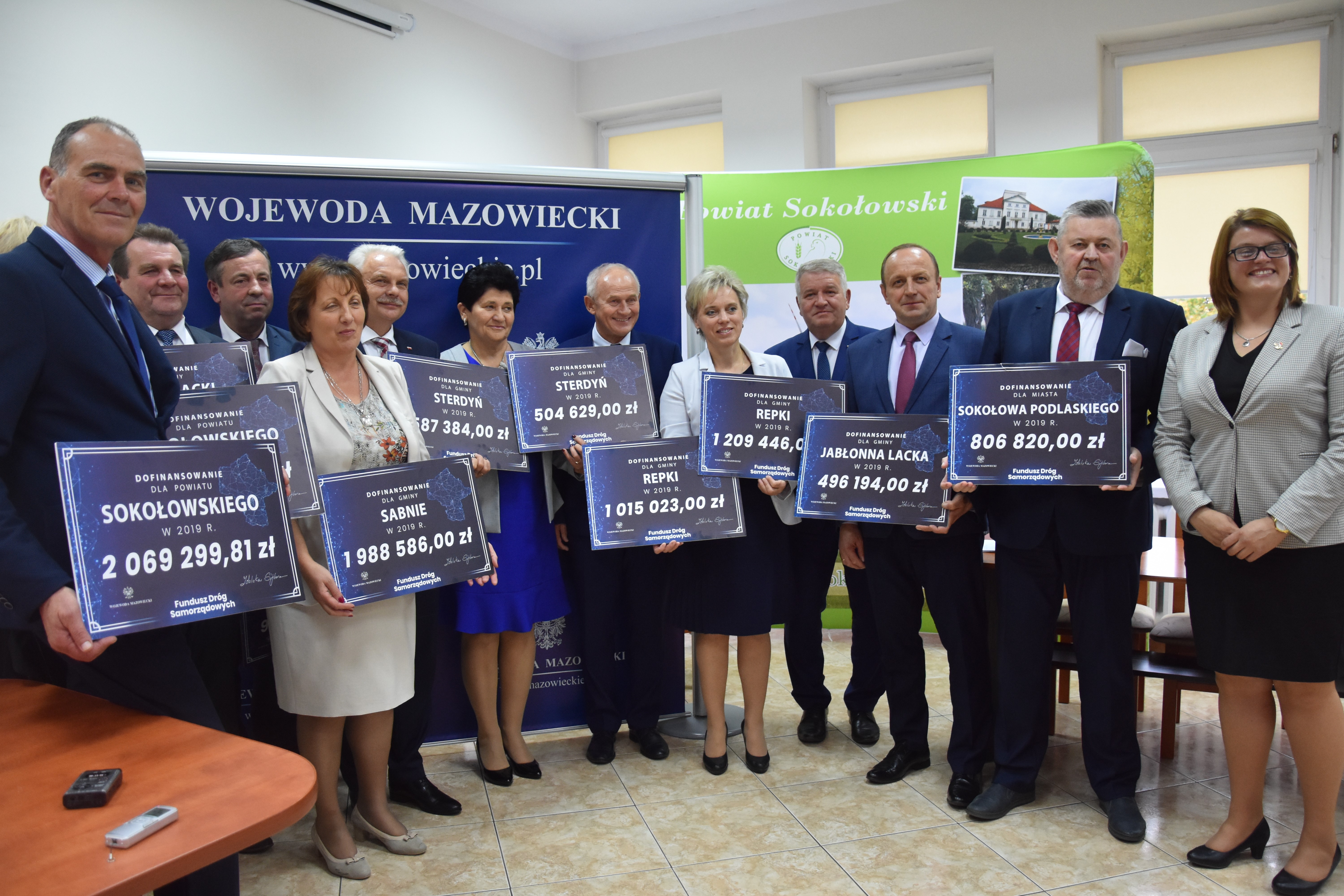 W regionie siedleckim z Funduszu Dróg Samorządowych przekazane będzie dofinansowanie w łącznej kwocie ponad 86 mln zł, dzięki któremu powstanie 12 dróg powiatowych i 49 dróg gminnych o łącznej długości ok. 94 km*. W Siedlcach i Sokołowie Podlaskim Wicewojewoda Sylwester Dąbrowski przekazał czeki na dofinansowanie zadań z programu przedstawicielom samorządów. Odebrały je następujące powiaty: siedlecki, sokołowski a także gminy miejskie oraz wiejskie: Huszlew, Korczew, Mokobody, Mordy, Paprotnia, Skórzec, Zbuczyn, Bielany, Jabłonna Lacka, Kosów Lacki, Repki, Sabnie, Sokołów Podlaski, Sterdyń. W spotkaniu uczestniczyła także Kierownik delegatury MUW w Siedlcach Anna Kaszuba.