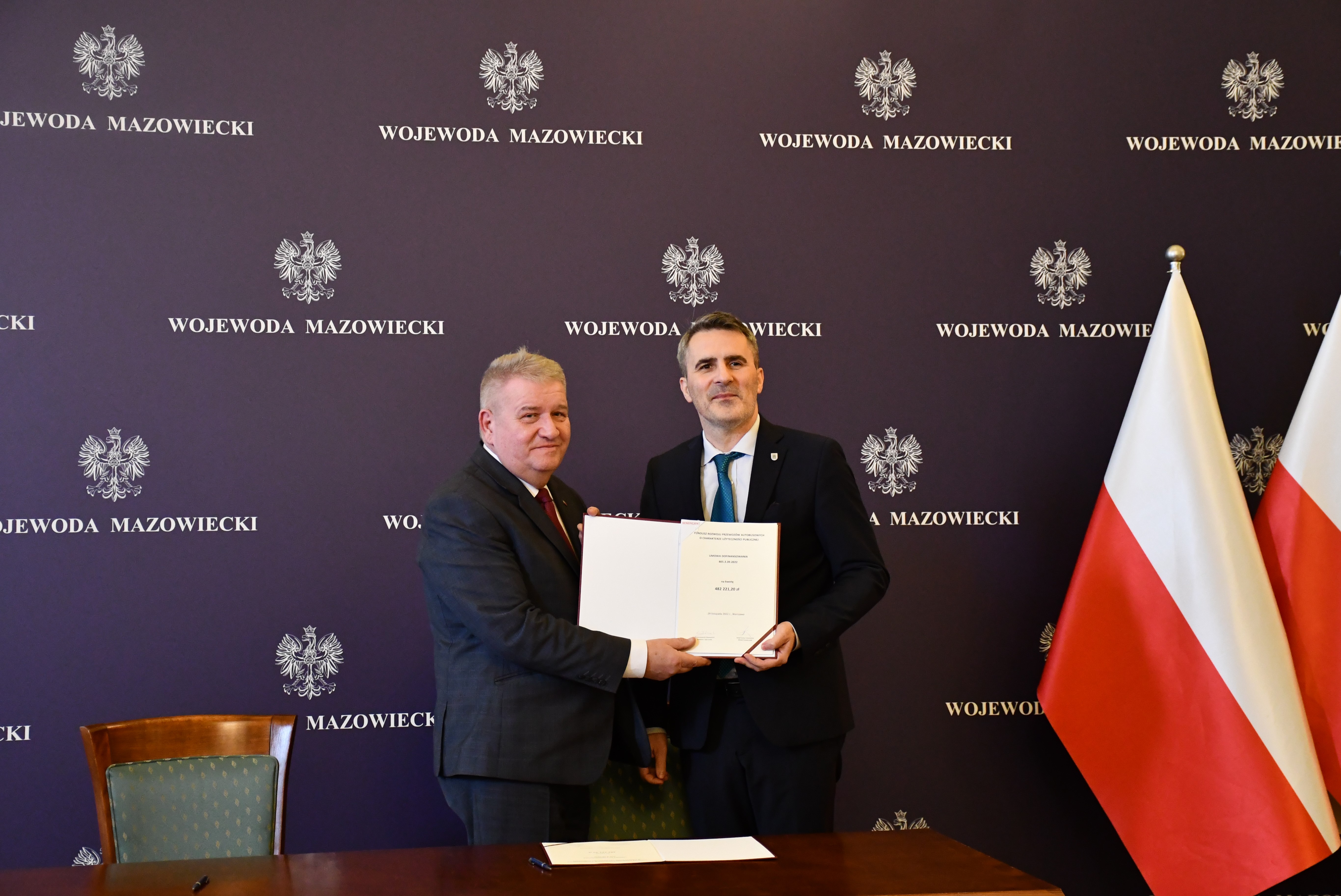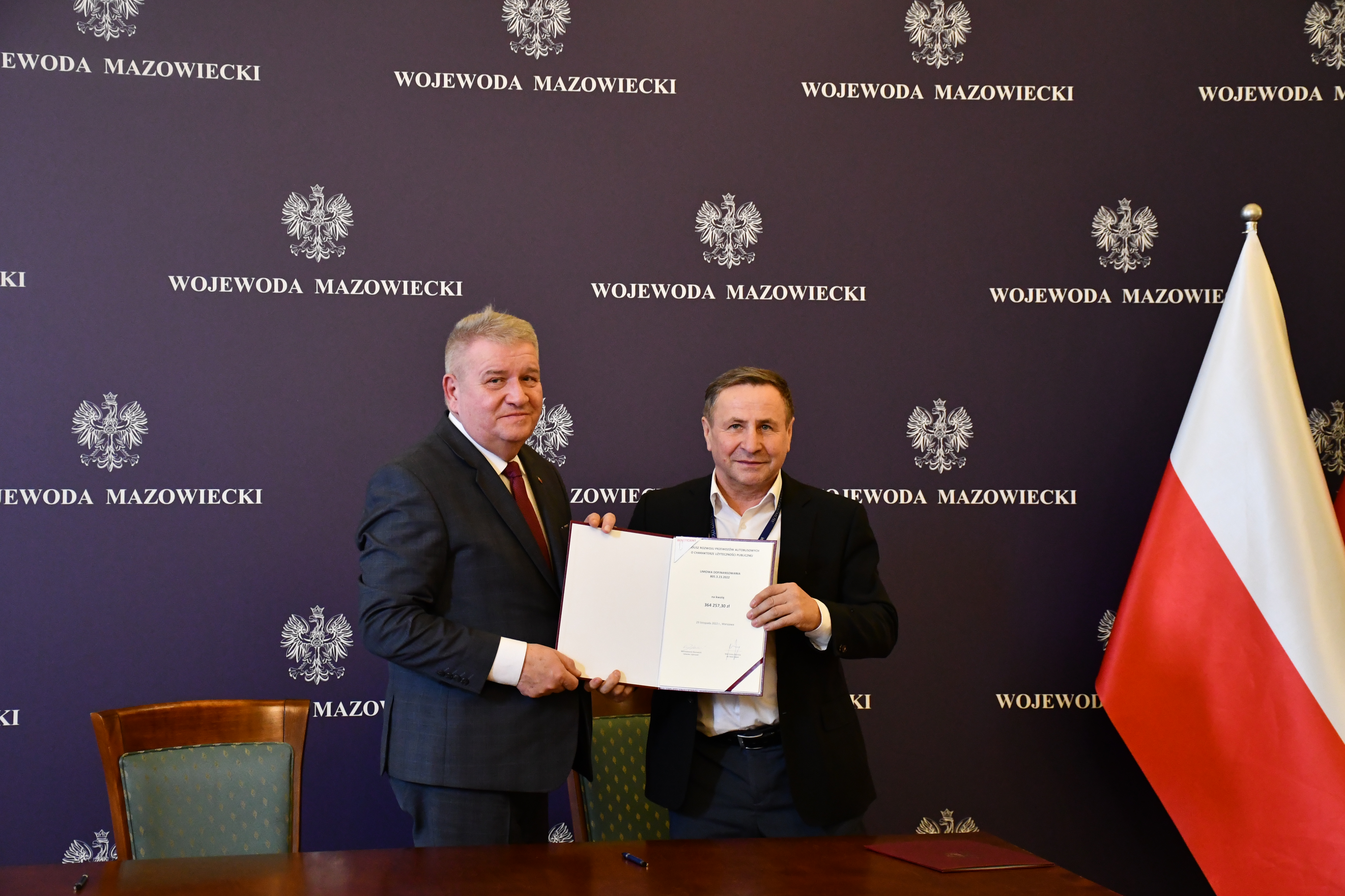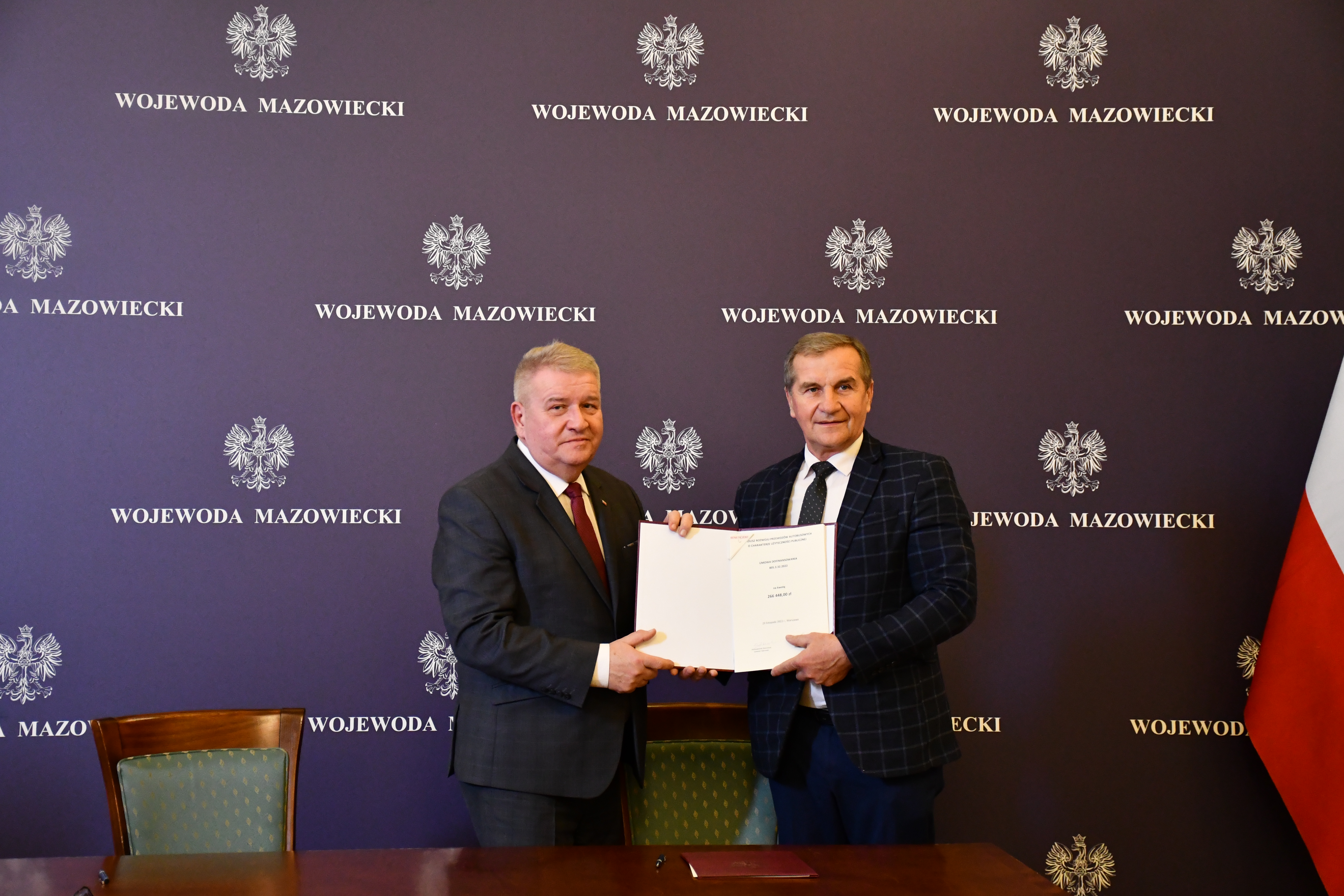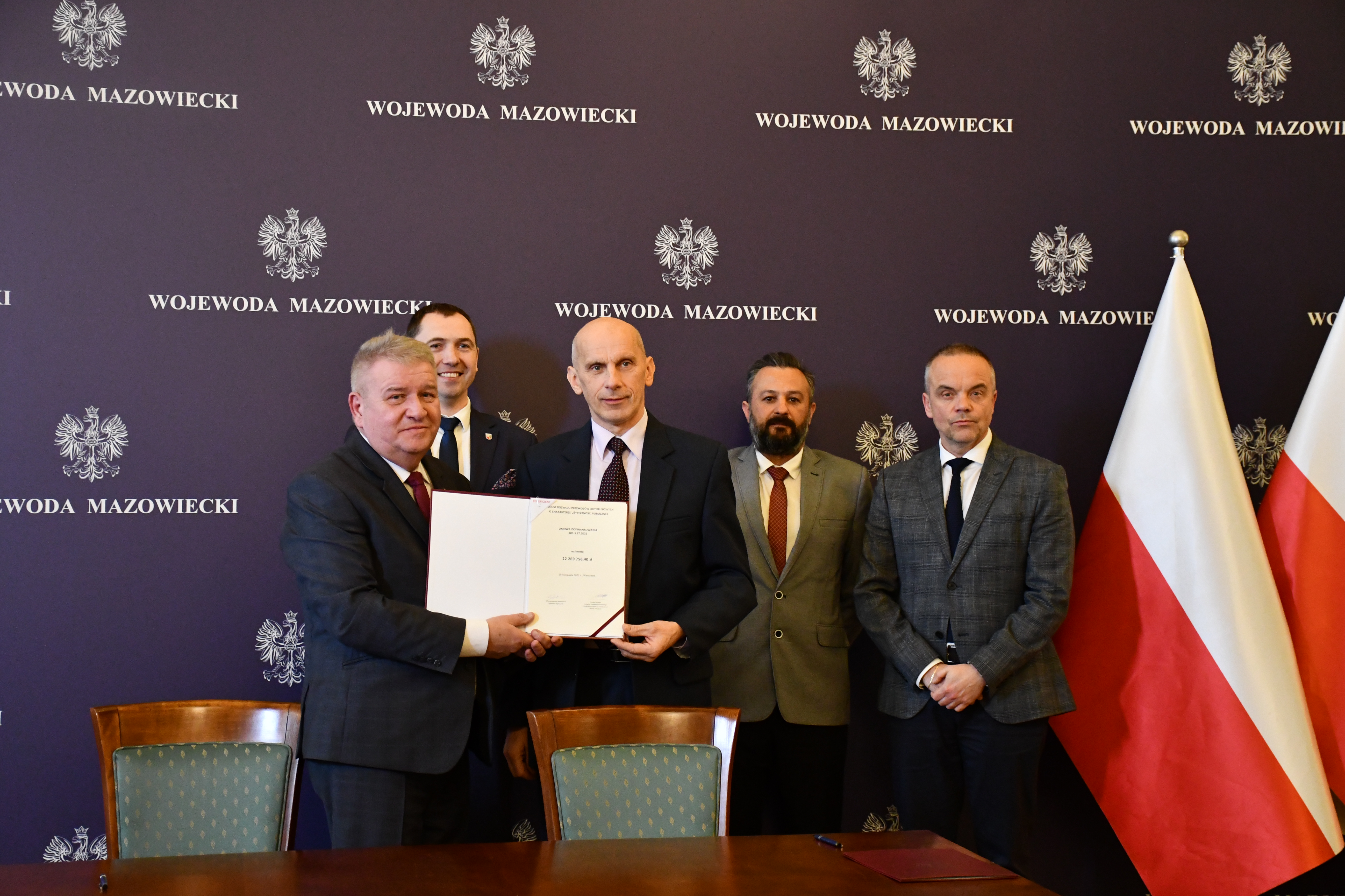 Wicewojewoda Mazowiecki Sylwester Dąbrowski podpisał łącznie 59 umów z przedstawicielami samorządów z województwa mazowieckiego na objęcie w 2023 r. dopłatą zadań organizatora transportu publicznego ze środków Funduszu Rozwoju Przewozów Autobusowych. Na ich mocy samorządy te otrzymają dopłatę o łącznej wysokości ponad 54 mln zł na uruchomienie połączeń lokalnych. W uroczystości podpisania umów udział wzięli także Szef Gabinetu Politycznego Ministra Spraw Wewnętrznych i Administracji oraz Radny Sejmiku Województwa Mazowieckiego Michał Prószyński, Szef Gabinetu Politycznego Ministra Obrony Narodowej oraz Radny Sejmiku Województwa Mazowieckiego Łukasz Kudlicki, Kierownik Delegatury Mazowieckiego Urzędu Wojewódzkiego w Siedlcach Anna Kaszuba oraz Kierownik Delegatury Mazowieckiego Urzędu Wojewódzkiego w Płocku Marlena Mazurska.