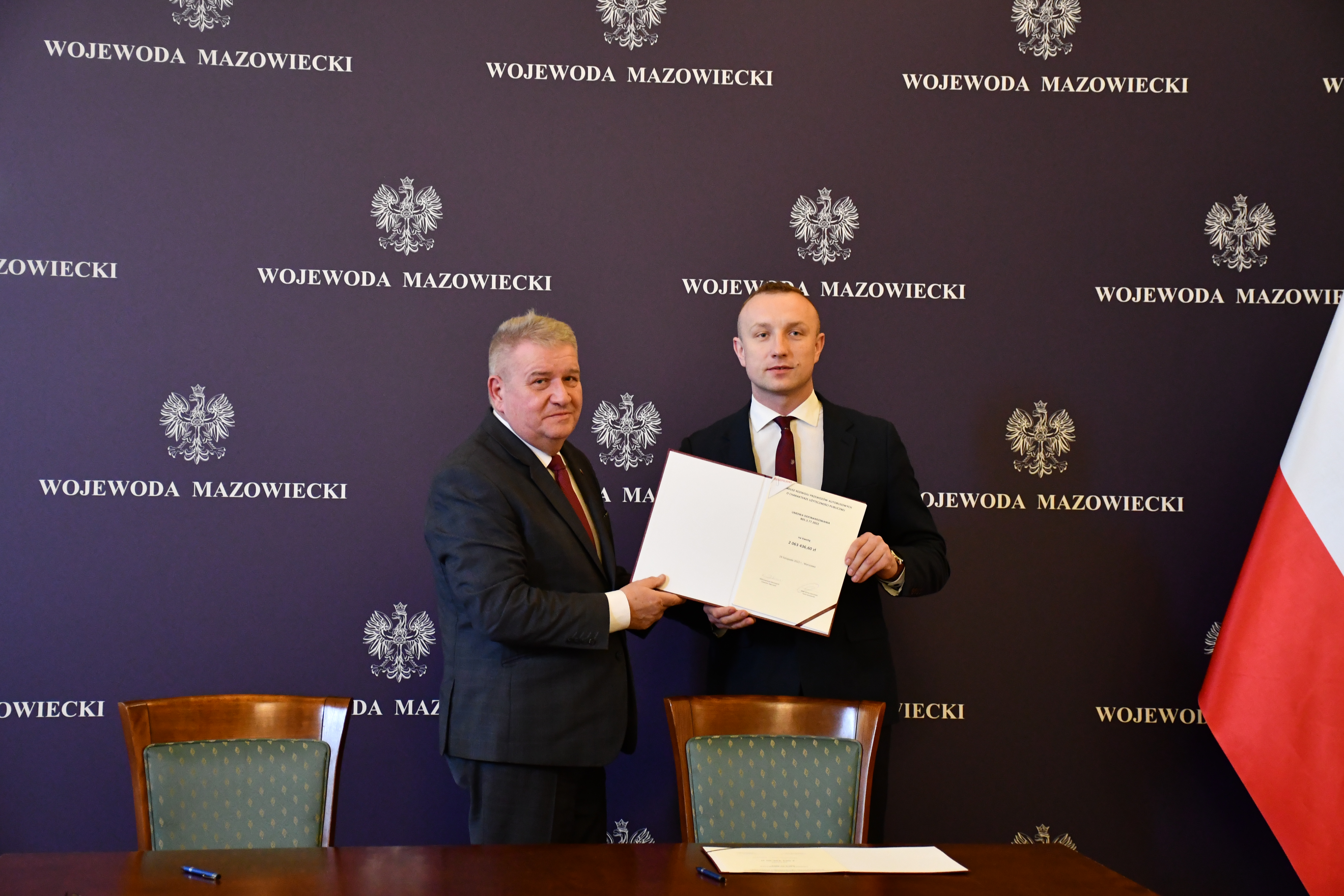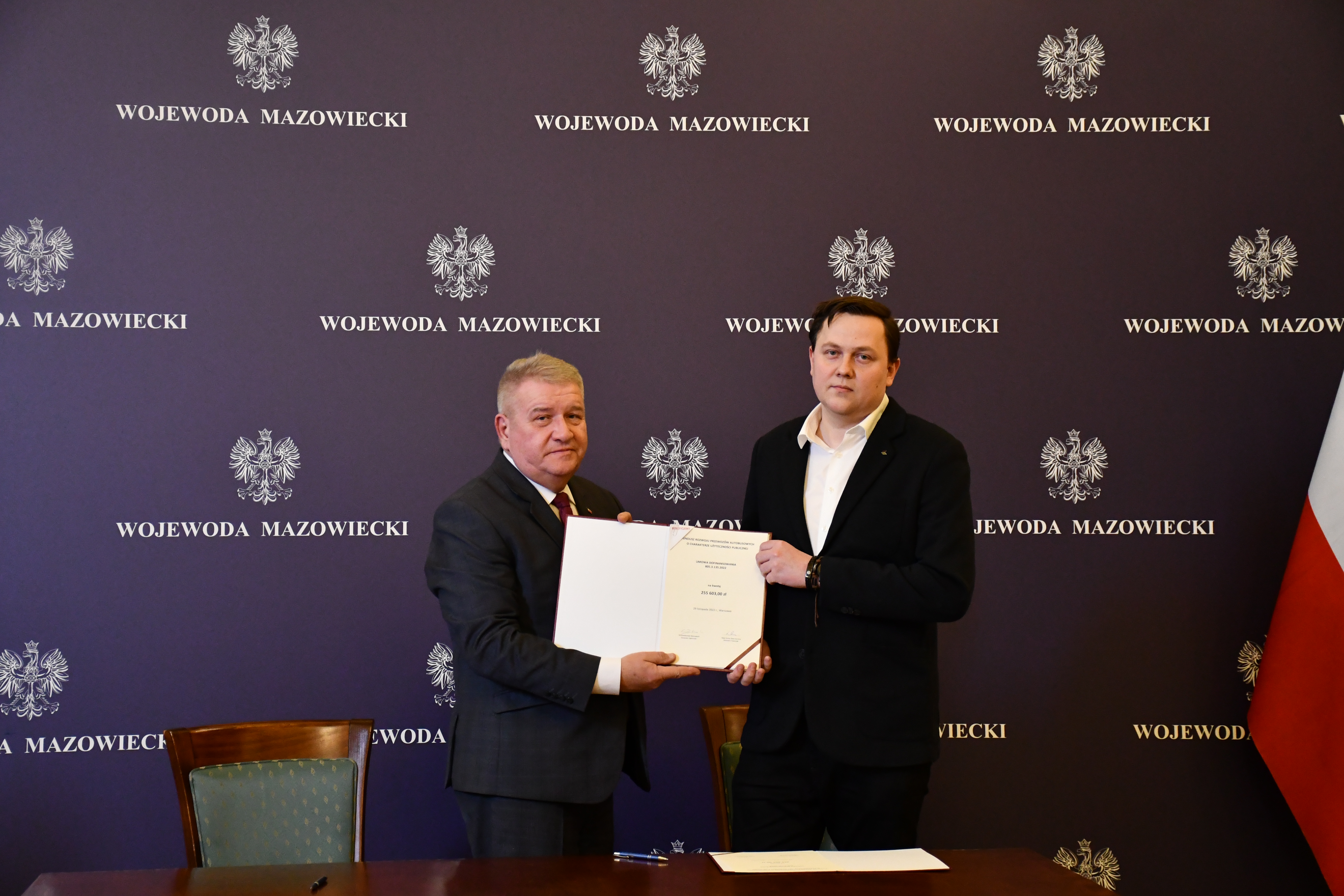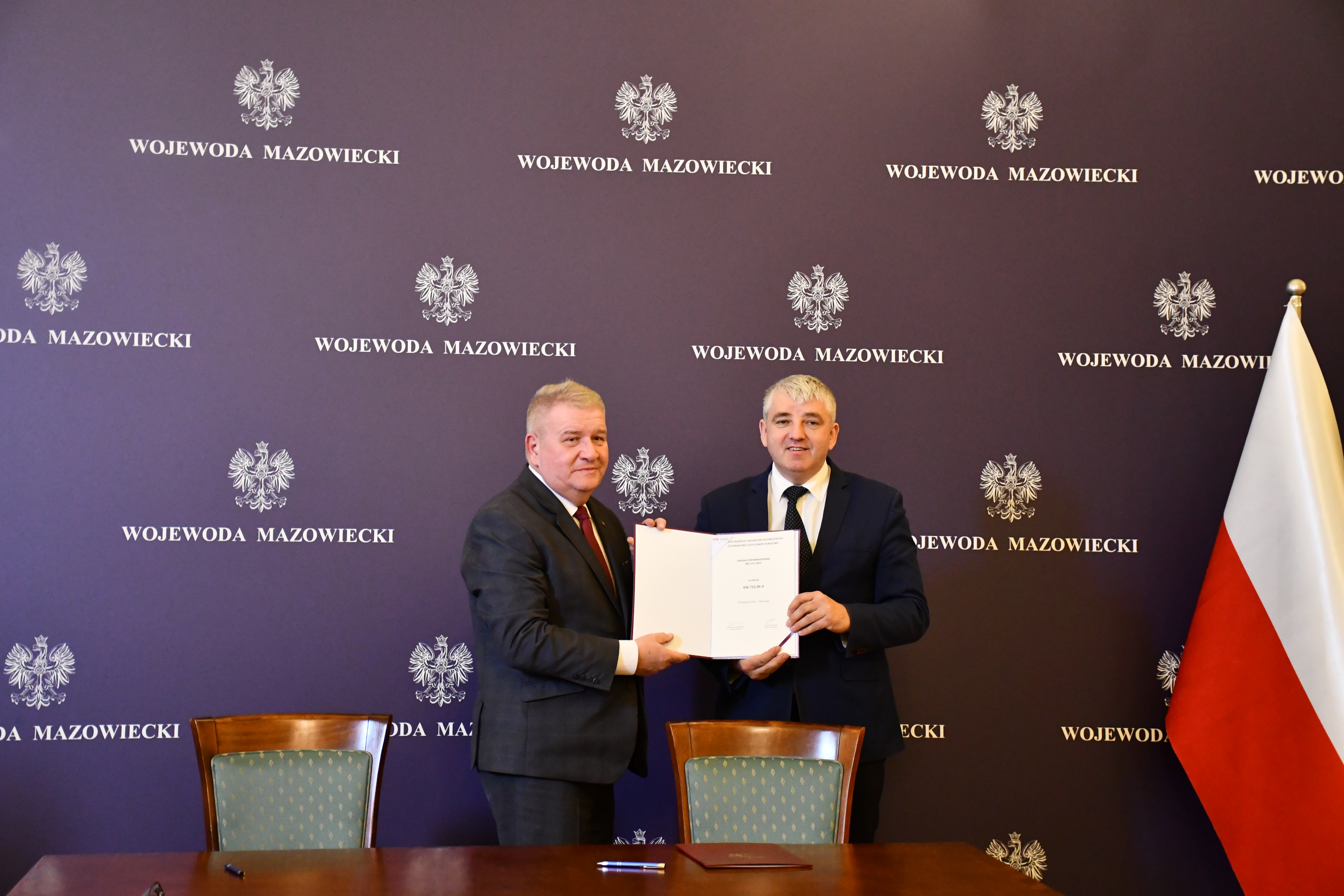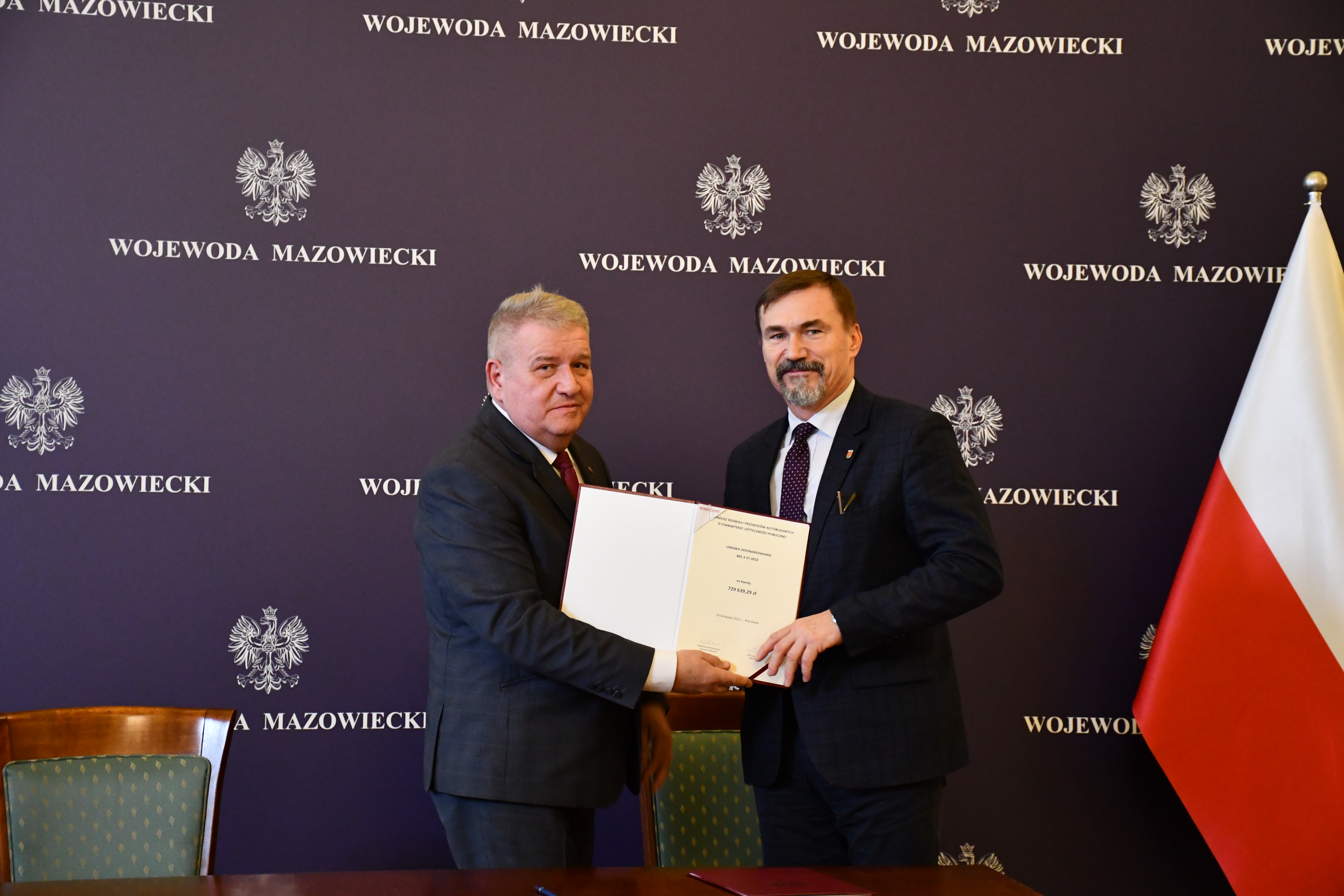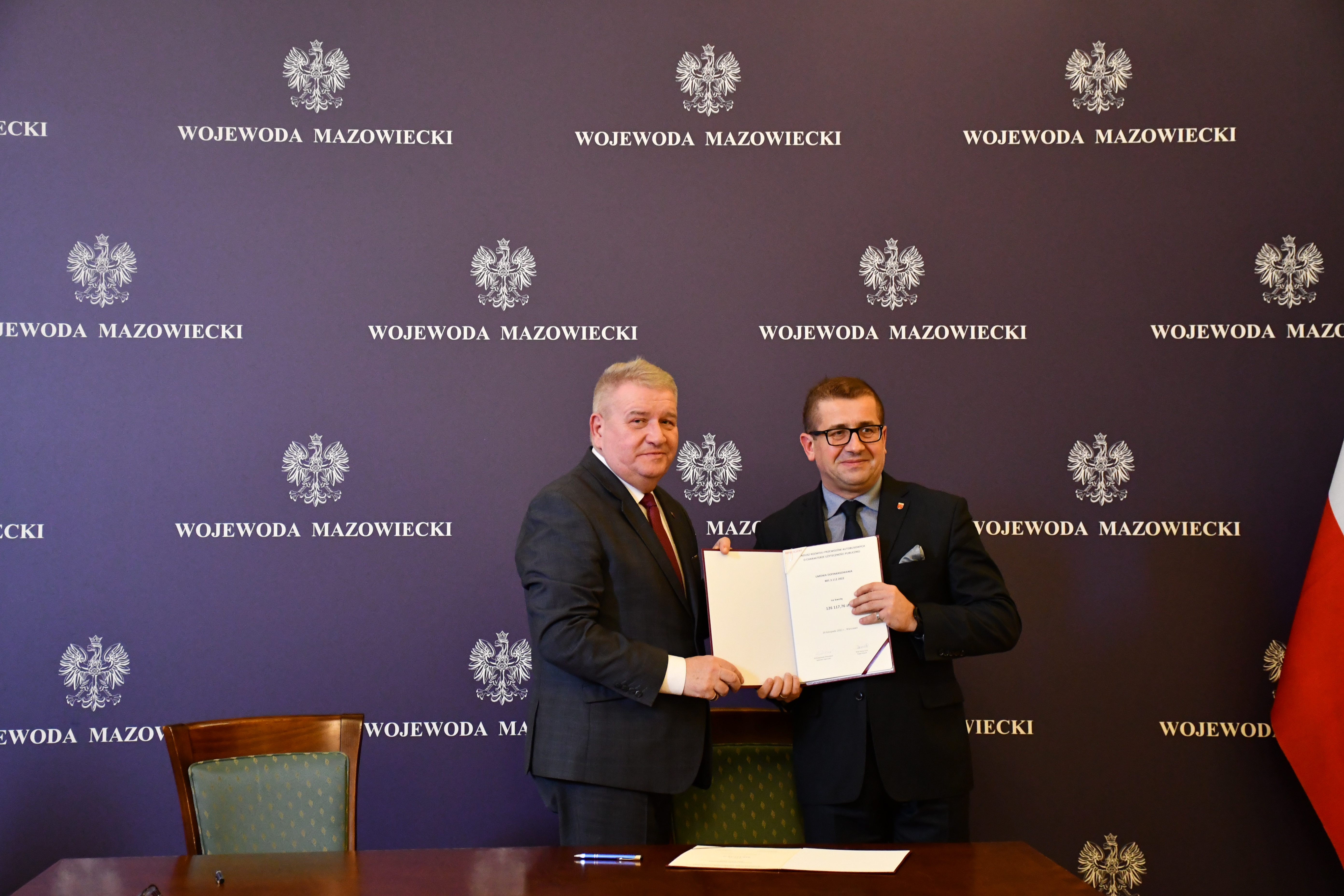Wicewojewoda Mazowiecki Sylwester Dąbrowski podpisał łącznie 59 umów z przedstawicielami samorządów z województwa mazowieckiego na objęcie w 2023 r. dopłatą zadań organizatora transportu publicznego ze środków Funduszu Rozwoju Przewozów Autobusowych. Na ich mocy samorządy te otrzymają dopłatę o łącznej wysokości ponad 54 mln zł na uruchomienie połączeń lokalnych. W uroczystości podpisania umów udział wzięli także Szef Gabinetu Politycznego Ministra Spraw Wewnętrznych i Administracji oraz Radny Sejmiku Województwa Mazowieckiego Michał Prószyński, Szef Gabinetu Politycznego Ministra Obrony Narodowej oraz Radny Sejmiku Województwa Mazowieckiego Łukasz Kudlicki, Kierownik Delegatury Mazowieckiego Urzędu Wojewódzkiego w Siedlcach Anna Kaszuba oraz Kierownik Delegatury Mazowieckiego Urzędu Wojewódzkiego w Płocku Marlena Mazurska.