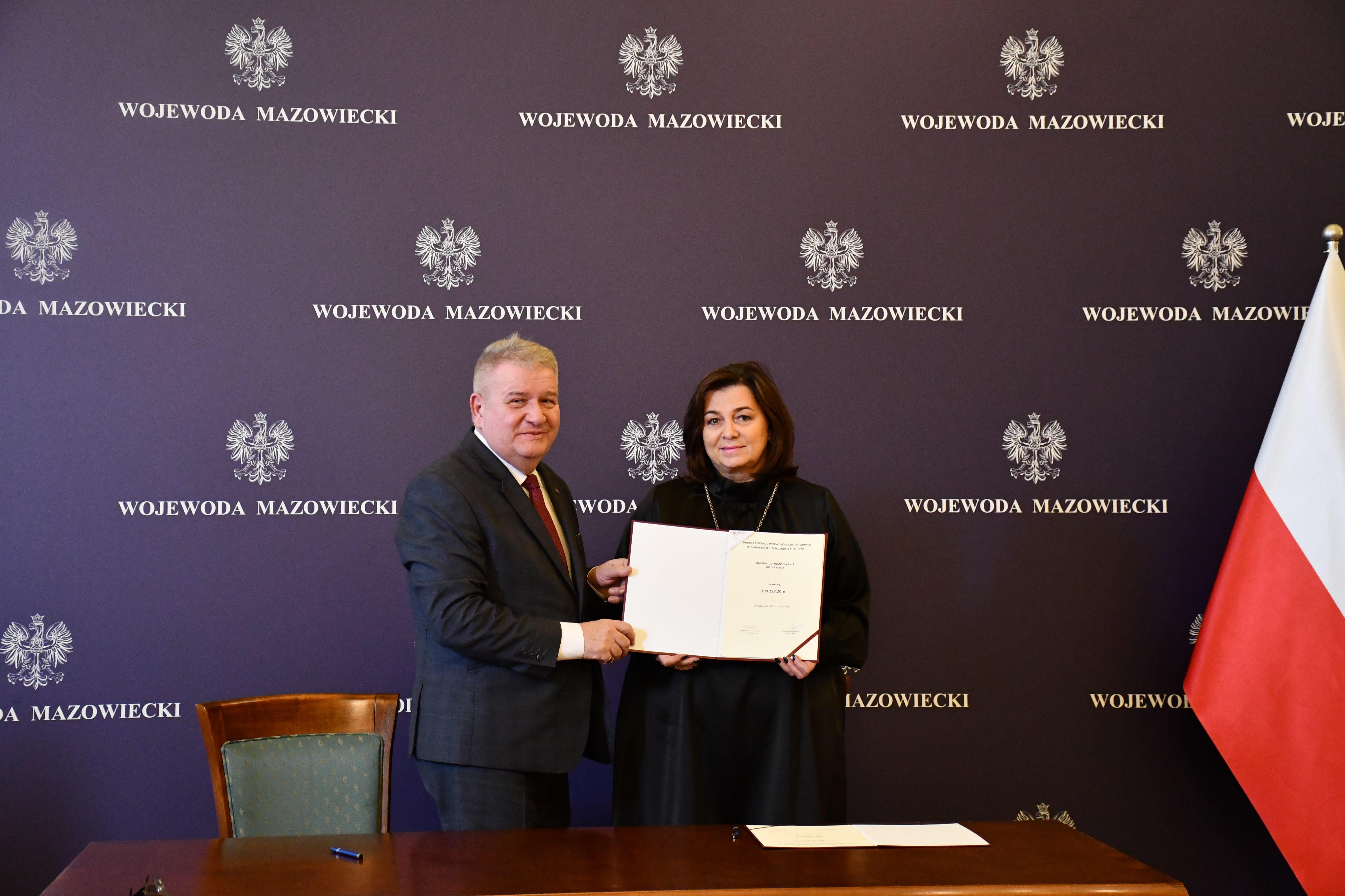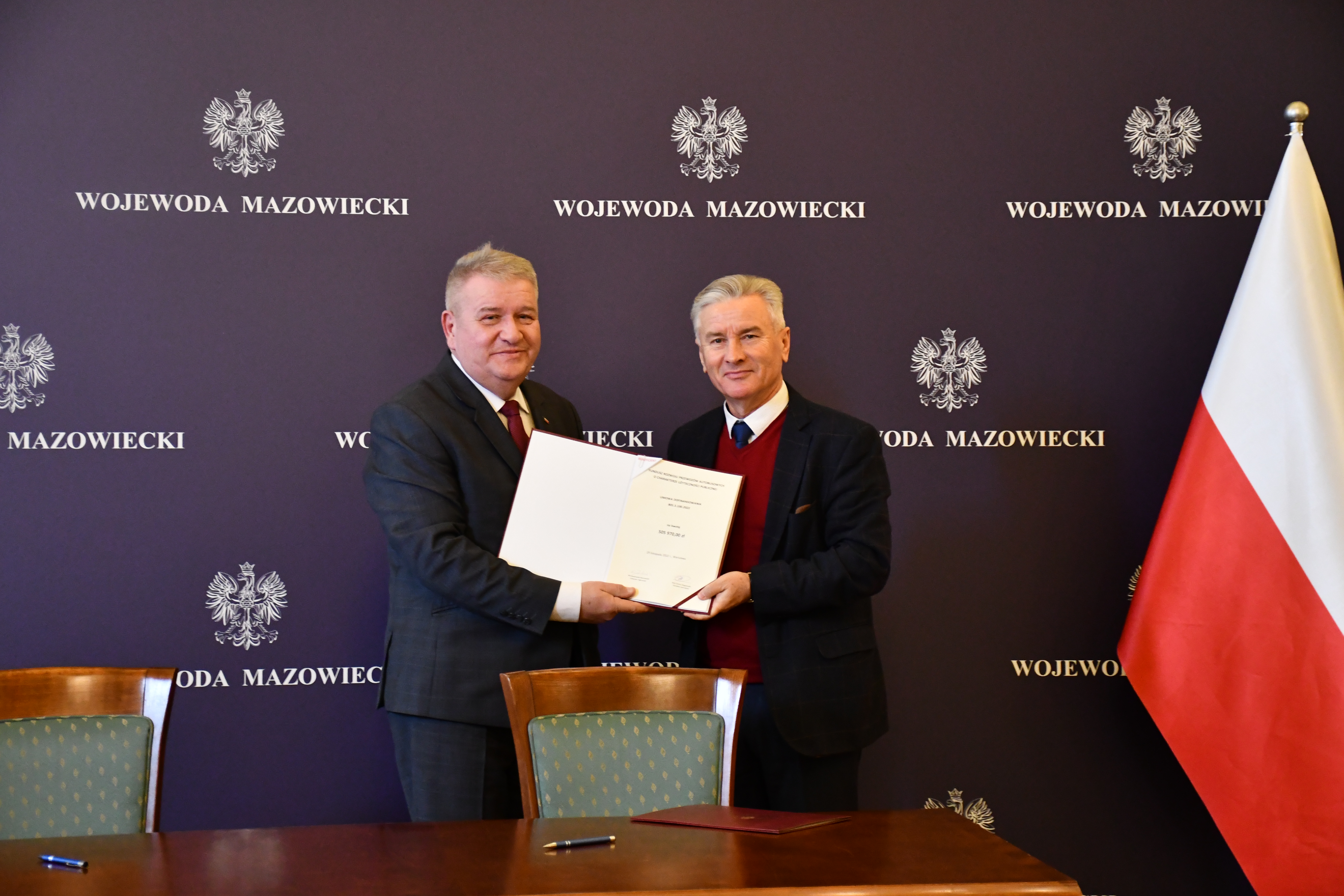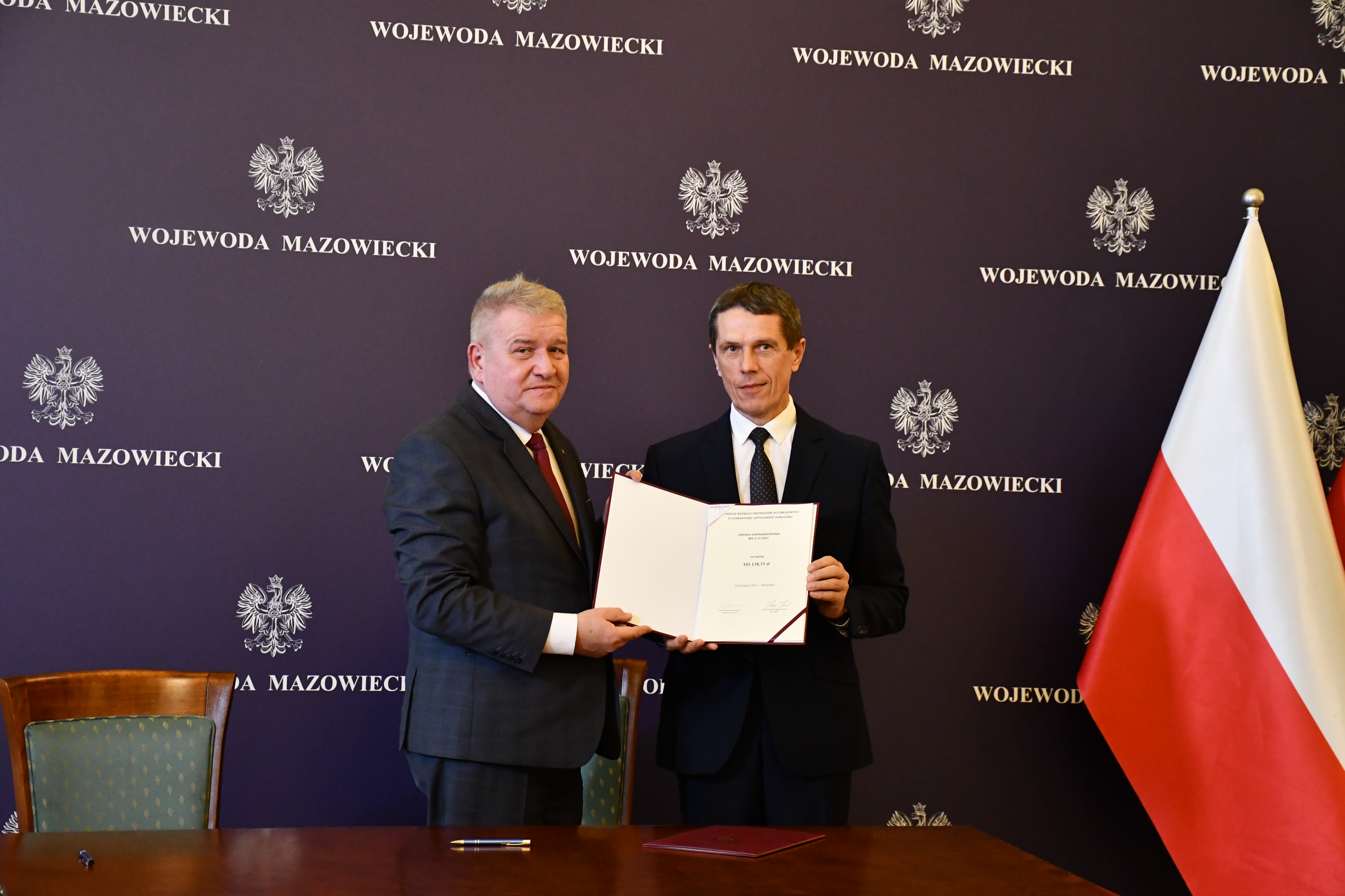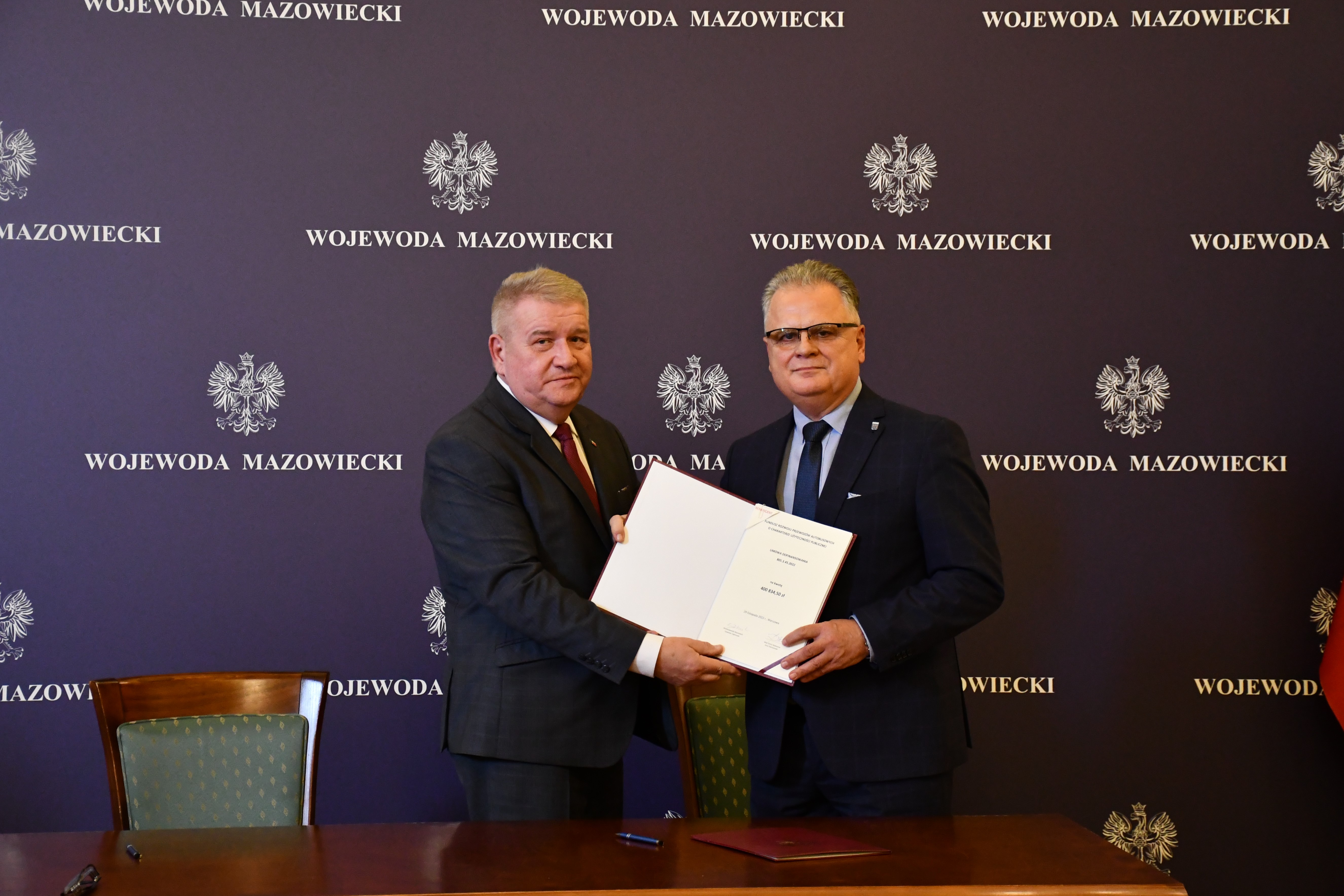 Wicewojewoda Mazowiecki Sylwester Dąbrowski podpisał łącznie 59 umów z przedstawicielami samorządów z województwa mazowieckiego na objęcie w 2023 r. dopłatą zadań organizatora transportu publicznego ze środków Funduszu Rozwoju Przewozów Autobusowych. Na ich mocy samorządy te otrzymają dopłatę o łącznej wysokości ponad 54 mln zł na uruchomienie połączeń lokalnych. W uroczystości podpisania umów udział wzięli także Szef Gabinetu Politycznego Ministra Spraw Wewnętrznych i Administracji oraz Radny Sejmiku Województwa Mazowieckiego Michał Prószyński, Szef Gabinetu Politycznego Ministra Obrony Narodowej oraz Radny Sejmiku Województwa Mazowieckiego Łukasz Kudlicki, Kierownik Delegatury Mazowieckiego Urzędu Wojewódzkiego w Siedlcach Anna Kaszuba oraz Kierownik Delegatury Mazowieckiego Urzędu Wojewódzkiego w Płocku Marlena Mazurska.