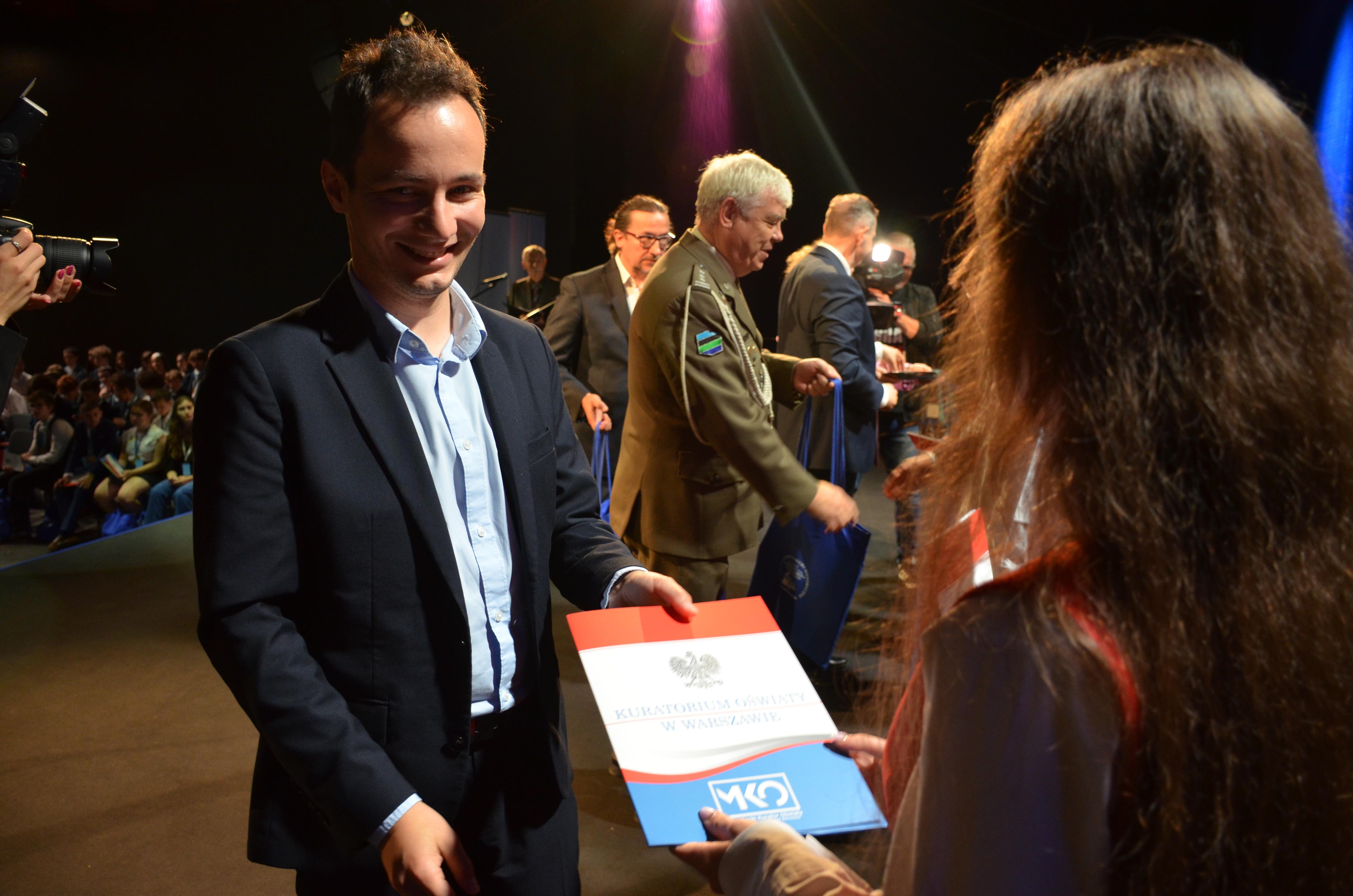 - Ja pewnie tak jak Państwo przeżywam dzisiaj wyruszający moment, bo sam brałem udział w tym konkursie. Dlatego dzisiaj jestem wzruszony, że występuję na tej uroczystości jako Wicewojewoda Mazowiecki. Z pełną świadomością mogę powiedzieć, że w tym konkursie, w tej olimpiadzie nie można liczyć na łut szczęścia. Są to wielotygodniowe przygotowania. Wasze i Waszych opiekunów. Chciałbym wszystkim bardzo serdecznie pogratulować. Dzisiaj, kiedy żyjemy w niespokojnych czasach, to Wy macie świadomość jak ta nasza przeszłość wyglądała. Jakie były skutki decyzji historycznych, czy politycznych. Dlatego też ze spokojem patrzę na Wasze pokolenie i to, że zdajecie sobie sprawę, że wolność nie jest dana raz na zawsze. Wolność trzeba szanować, o nią dbać, trzeba ją pielęgnować. Dlatego jestem spokojniejszy, kiedy myślę o wolności i przyszłości naszego kraju. Jeszcze raz gratuluję. Zasłużyliście na to, żeby dzisiaj trochę poświętować. Wszystkiego dobrego – powiedział Wicewojewoda Mazowiecki Patryk Fajdek.