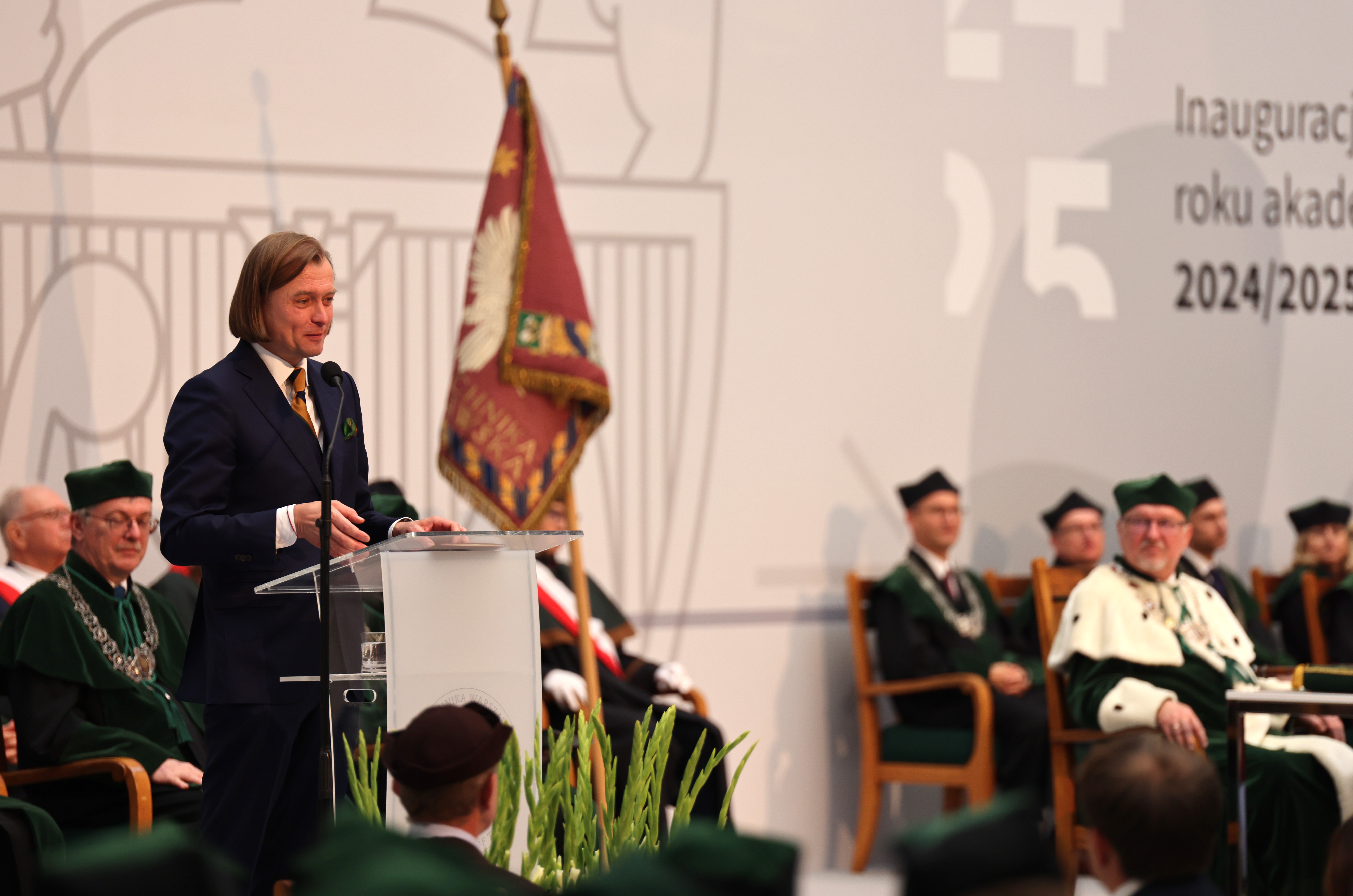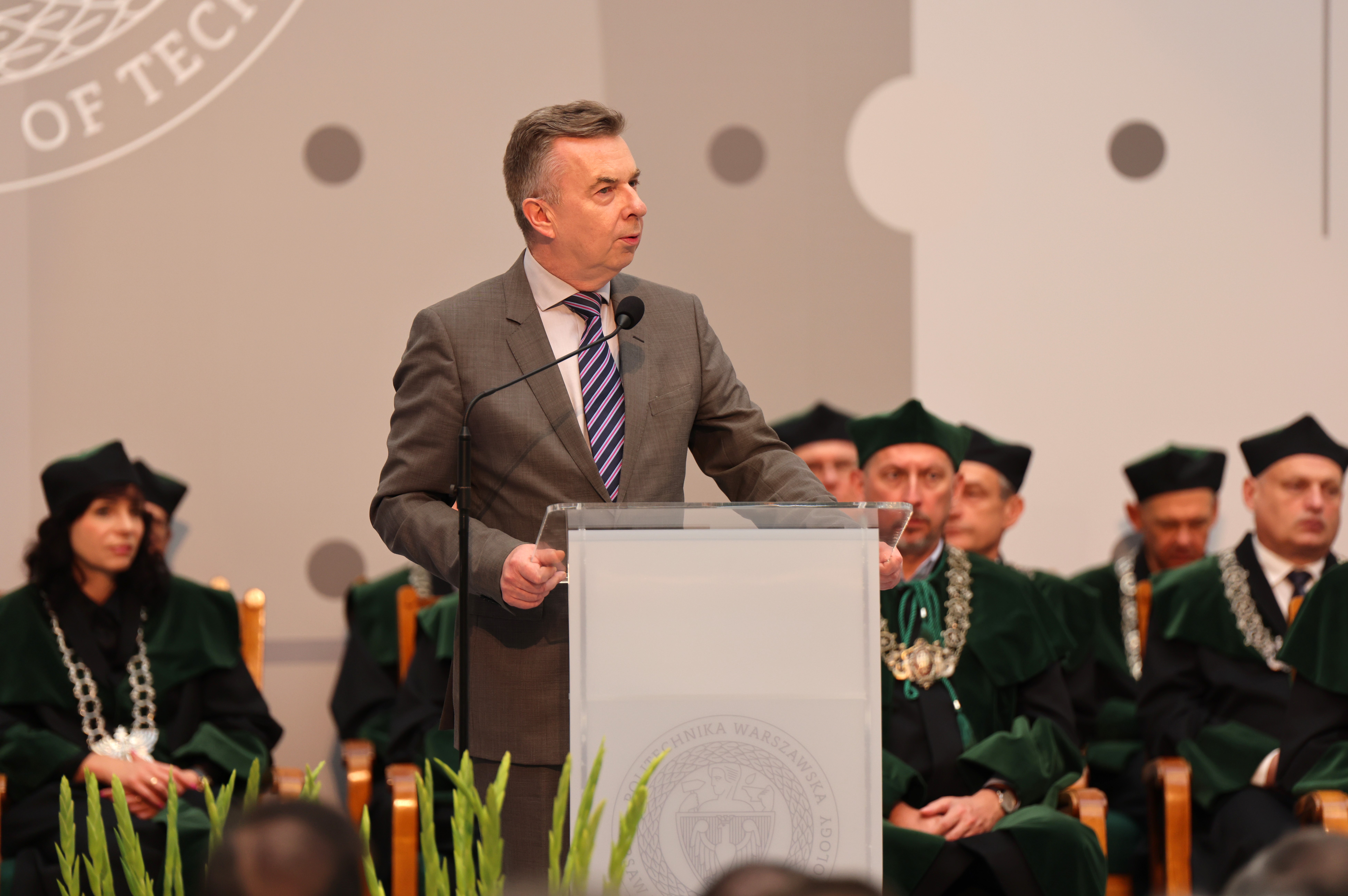 - Politechnika Warszawska od momentu swojego powstania kształtuje przyszłe pokolenia inżynierów, naukowców i innowatorów, oraz wyznacza kierunki rozwoju naszej gospodarki, przemysłu i nauki – powiedział Mariusz Frankowski Wojewoda Mazowiecki – Drogie studentki i studenci, trafiliście do miejsca, które daje wyjątkowy start w dorosłe życie, zarówno naukowe, jak i zawodowe. Ramię w ramię z wybitnymi naukowcami i dydaktykami będziecie mierzyć się z wyzwaniami dynamicznie zmieniającego się świata. Zmieniające się technologie, rozwój sztucznej inteligencji, wyzwania klimatyczne to tylko niektóre zagadnienia, które będą wymagały Waszej uwagi, pomysłowości i zaangażowania. Życzę wszystkim powodzenia w nowym roku akademickim i wielu sukcesów w kolejnych miesiącach – dodał.