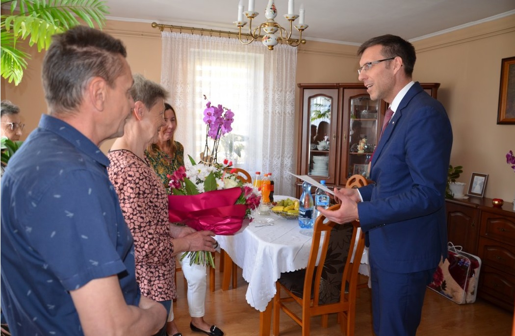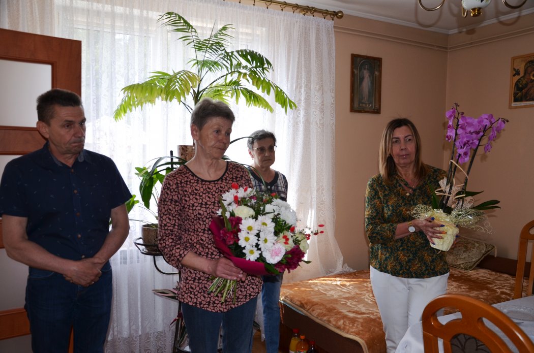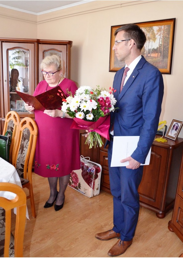 W związku z uroczystości, jubilatkę odwiedziła Wójt Gminy Bożena Kordek, która złożyła serdeczne gratulacje wraz z życzeniami, wręczając przy tym urodzinowe upominki.