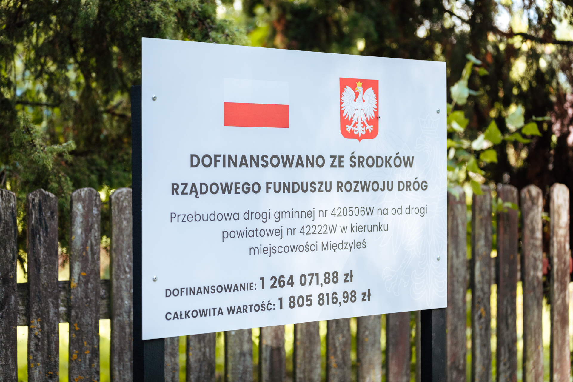 Droga gminna nr 420506W w powiecie węgrowskim została przebudowana na odcinku o długości 1 393 mb od drogi powiatowej 422W w kierunku miejscowości Międzyleś. Zakres prac obejmował: wykonanie jezdni o nawierzchni z betonu asfaltowego o szerokości 5,00 m (dwa pasy ruchu o szerokości 2,50 m), obustronnych nawierzchni poboczy z kruszywa łamanego 0,75 mm, odwodnienia w postaci rowów, wykonano elementy organizacji ruchu oraz przebudowano jedno ze skrzyżowań. Realizacja inwestycji wpłynie na poprawę bezpieczeństwa ruchu drogowego wszystkich użytkowników drogi.