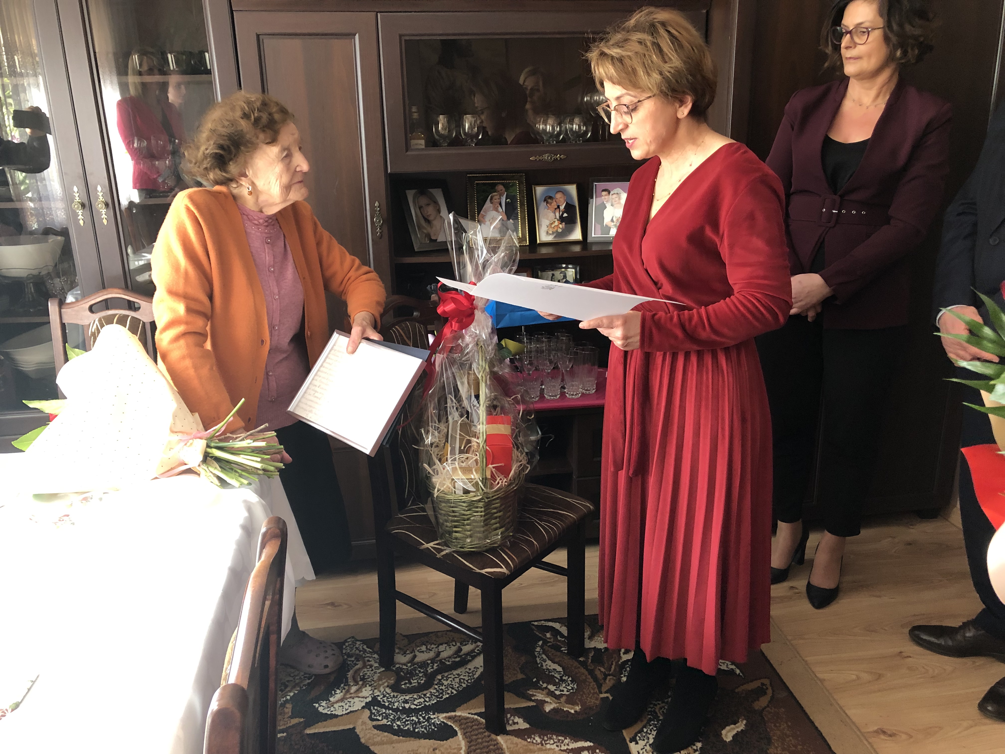 W tym wyjątkowym dniu Pani Krystynie towarzyszyła najbliższa rodzina, a życzenia złożyli również Wojciech Gregorczyk, Burmistrz Miasta Pułtusk, Bogumiła Przybyłowska, Kierownik Urzędu Stanu Cywilnego w Pułtusku oraz Małgorzata Kozłowska, Sołtys wsi Płocochowo.