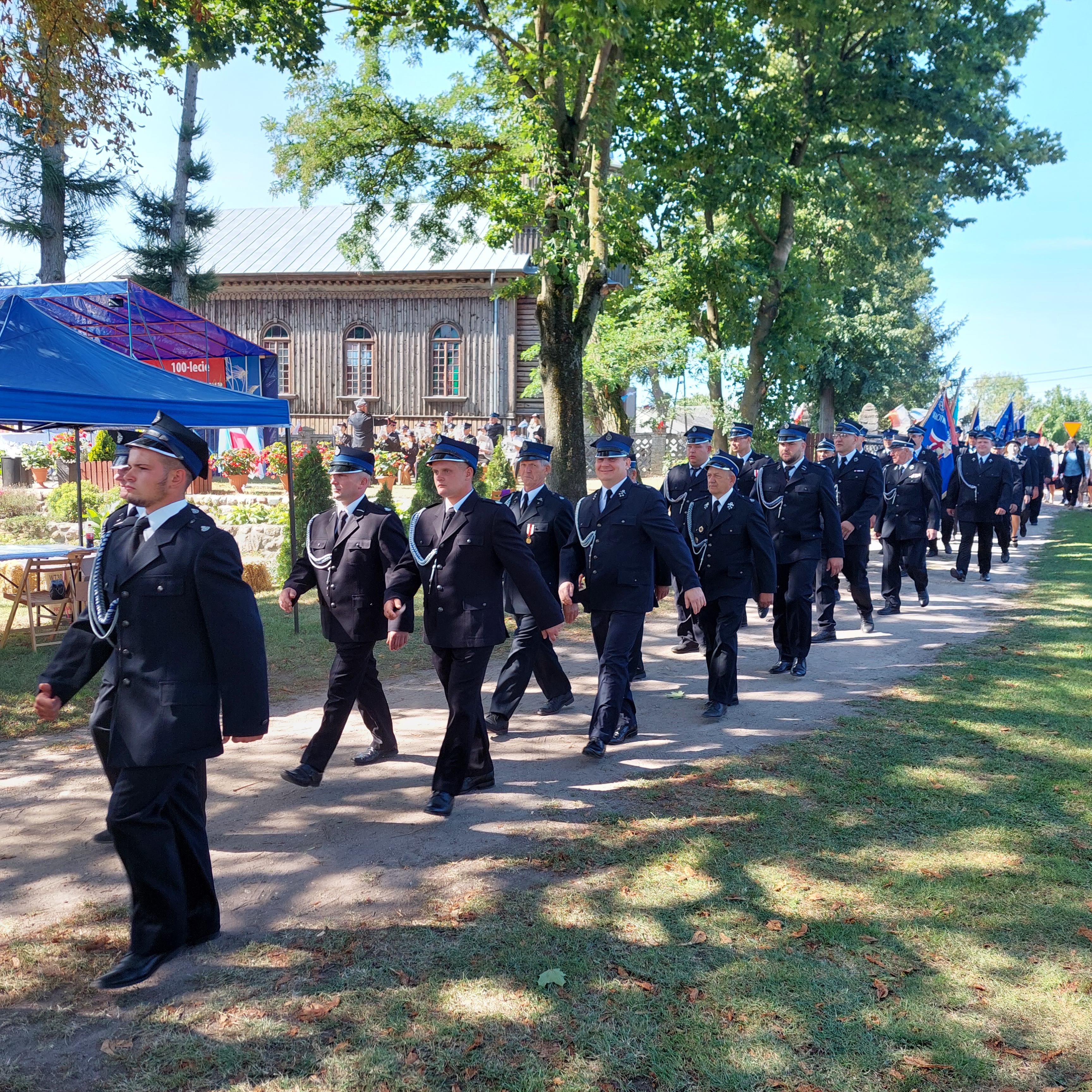 Następnie odbył się przemarsz pododdziałów i Korowodu na czele z orkiestrą OSP przed Kościołem św. Stanisława BM w Dąbrowie. Ponadto przed Kościołem na placu odbył się uroczysty apel z okazji jubileuszu, podczas którego Wójt Gminy Strzegowo Wiesław Zalewski powitał przybyłych gości oraz podziękował za tegoroczne plony.