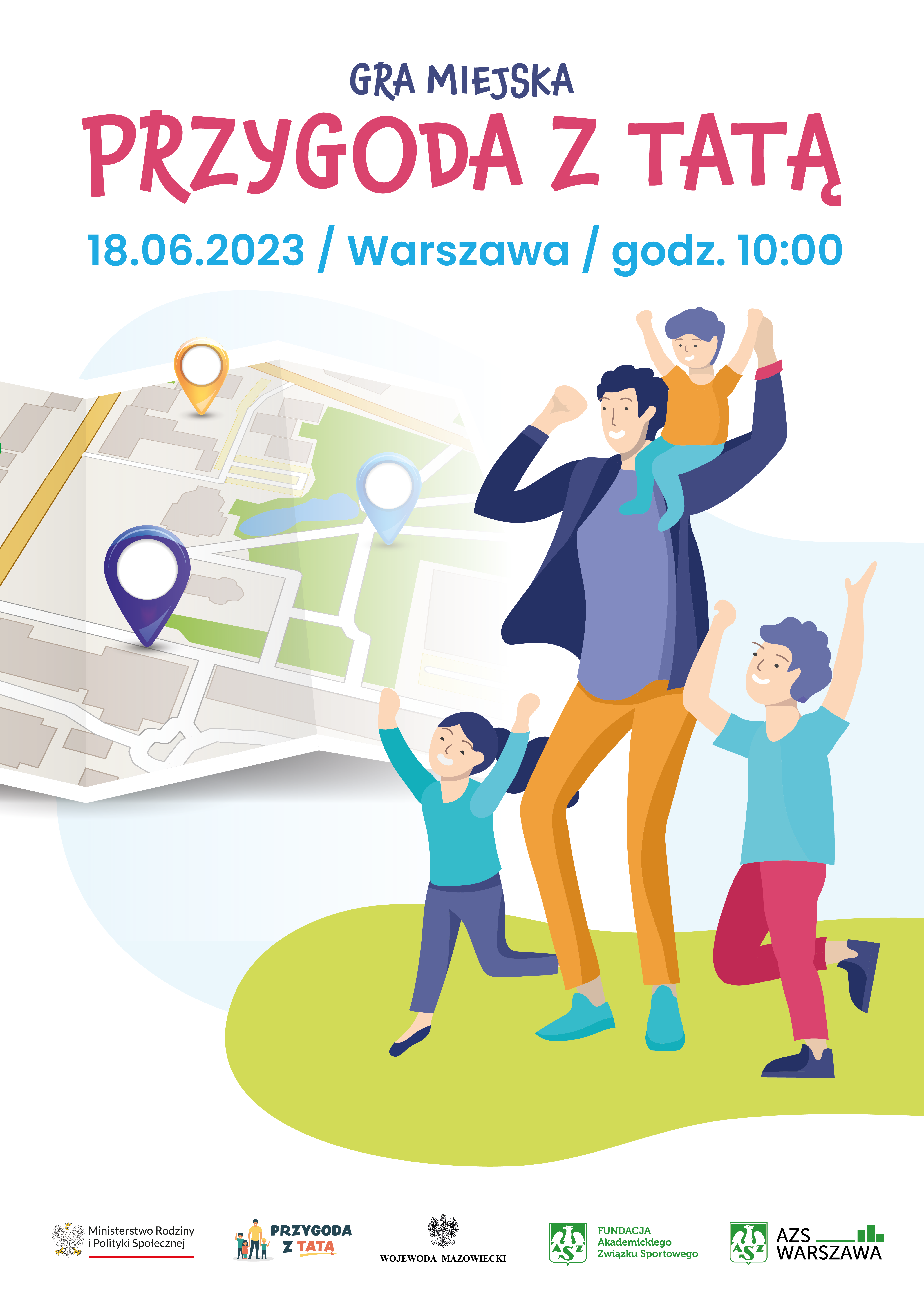 Wojewoda Mazowiecki zaprasza do udziału w grze miejskiej „Przygoda z Tatą”, organizowanej w ramach programu Ministra Rodziny i Polityki Społecznej „Ojcostwo – Przygoda życia” 2023 r. która odbędzie się w niedzielę 18 czerwca br. w Warszawie na terenie Kampusu SGGW i dzielnicy Ursynów. Celem wydarzenia jest wzmocnienie więzi rodzinnych, promowanie zaangażowanego ojcostwa i aktywnego spędzenia czasu ojców z dziećmi.