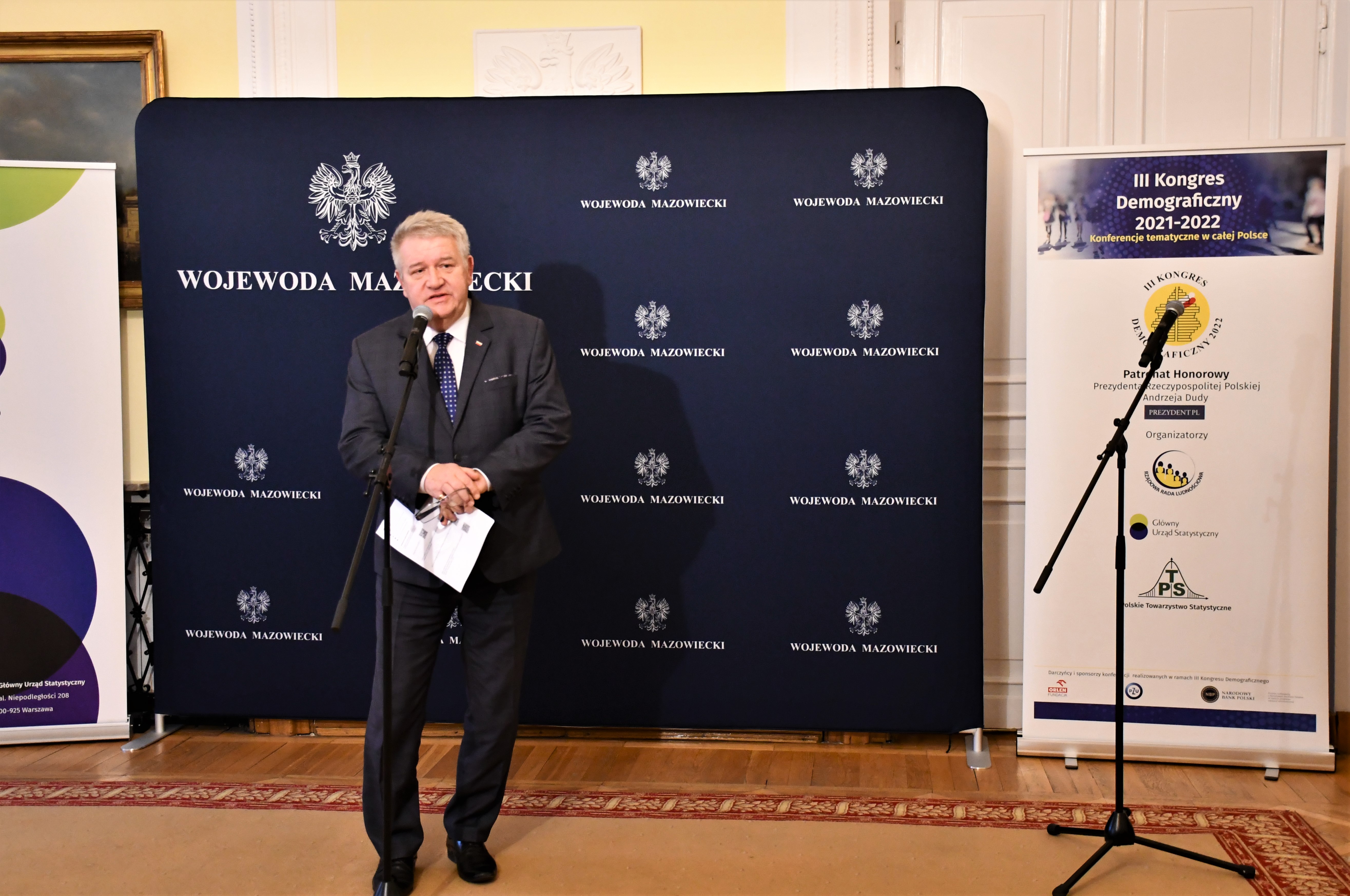 16 listopada br. w Mazowieckim Urzędzie Wojewódzkim odbył się III Kongres Demograficzny. Głównym hasłem tegorocznego kongresu są wyzwania demograficzne Polski na XXI wiek, którego program obejmuje kilkanaście konferencji naukowych organizowanych z inicjatywy Rządowej Rady Ludnościowej. W wydarzeniu udział wziął Sylwester Dąbrowski, Wicewojewoda Mazowiecki, prof. dr hab. Józefina Hrynkiewicz, Przewodnicząca Rządowej Rady Ludnościowej oraz dr Dominik Rozkrut, Prezes Głównego Urzędu Statystycznego. Kongres został objęty honorowym patronatem Prezydenta RP Andrzeja Dudy.