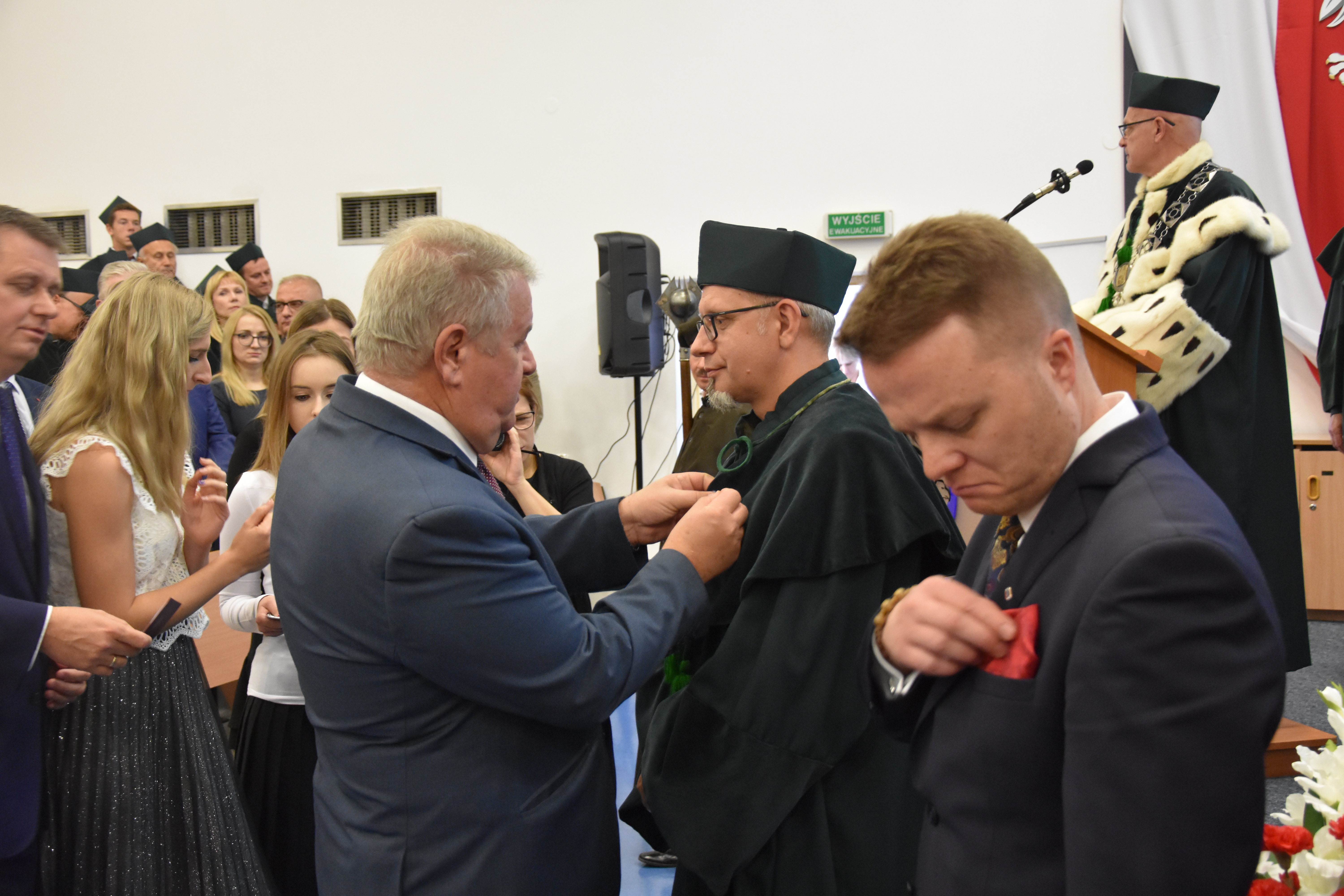 Wicewojewoda Sylwester Dąbrowski wraz z Wicewojewodą Arturem Standowiczem w imieniu Prezydenta RP wręczyli odznaczenia państwowe dla najbardziej zasłużonych pracowników naukowych Uniwersytetu. Brązowy Krzyż Zasługi za działalność na rzecz rozwoju nauki otrzymali: Mariusz Dański z Wydziału Sztuki oraz Daniel Pietruszczak z Wydziału Transportu Elektrotechniki i Informatyki.