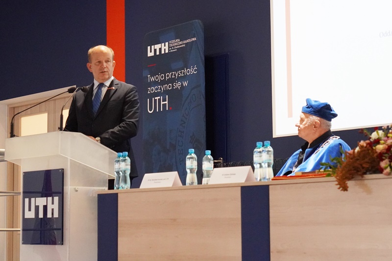 Wojewoda Mazowiecki podczas okolicznościowego przemówienia podkreślił rolę, jaką odgrywa w życiu człowieka okres kształcenia się, pogratulował nowo przyjętym studentom Uczelni Techniczno-Handlowej oraz złożył życzenia z okazji nowego roku akademickiego.