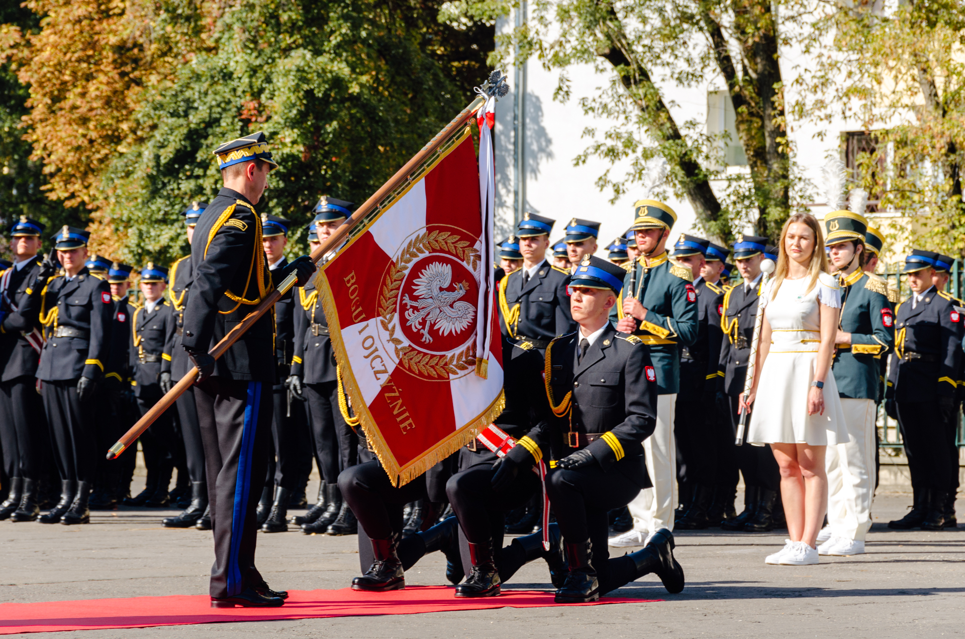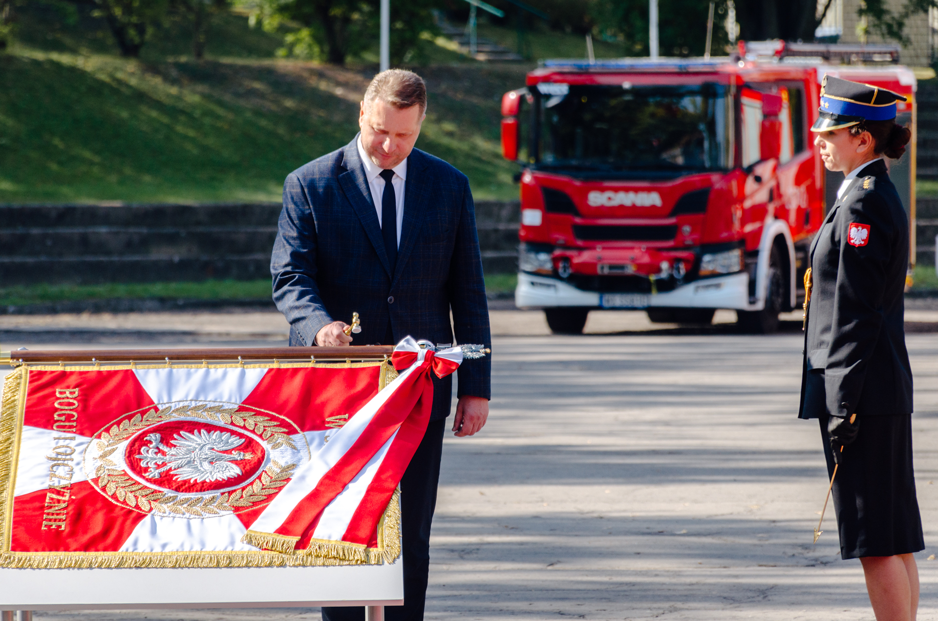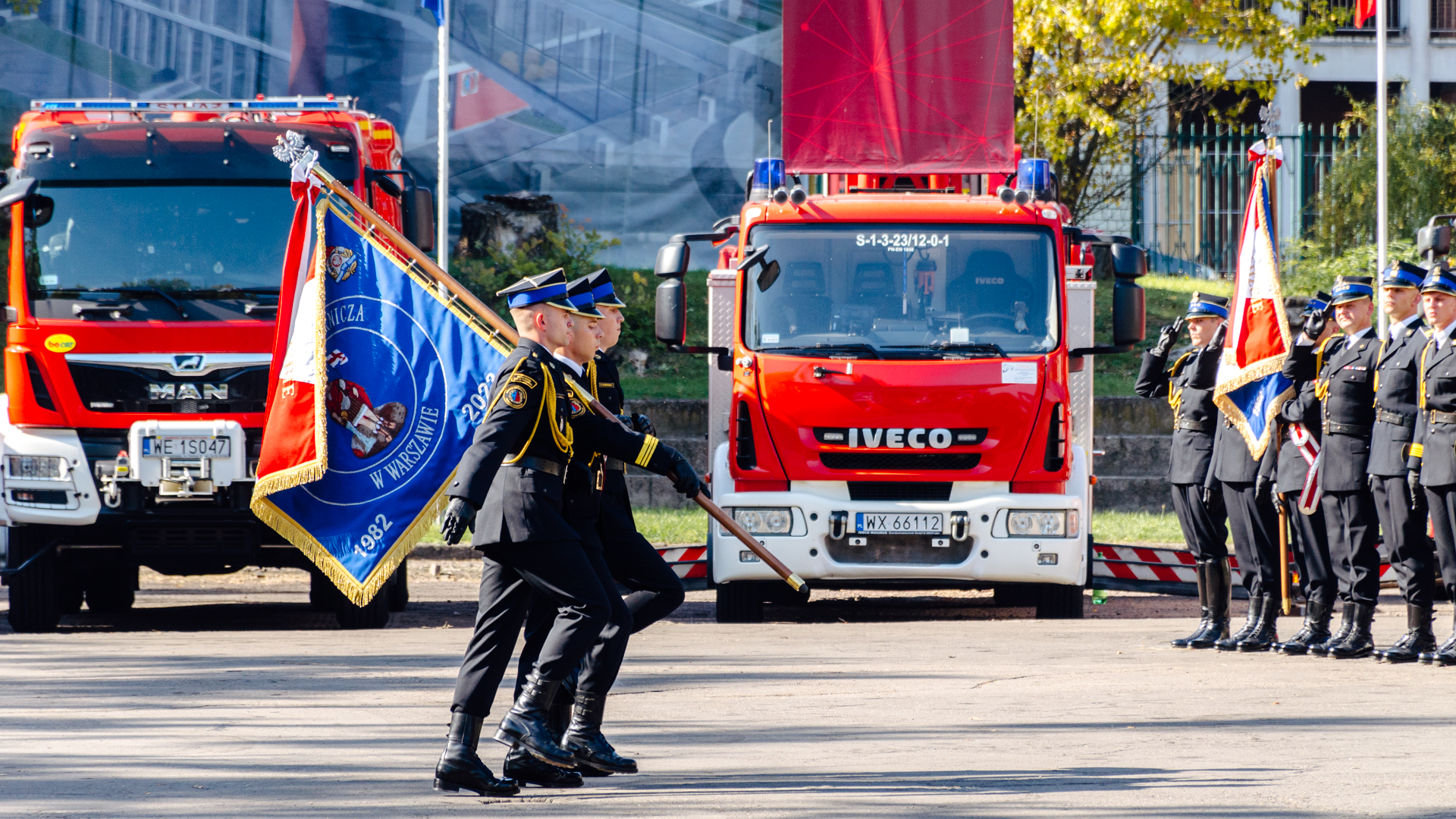 Ponadto pożegnano sztandar Szkoły Głównej Służby Pożarniczej oraz poświęcono nowy Akademii Pożarniczej.