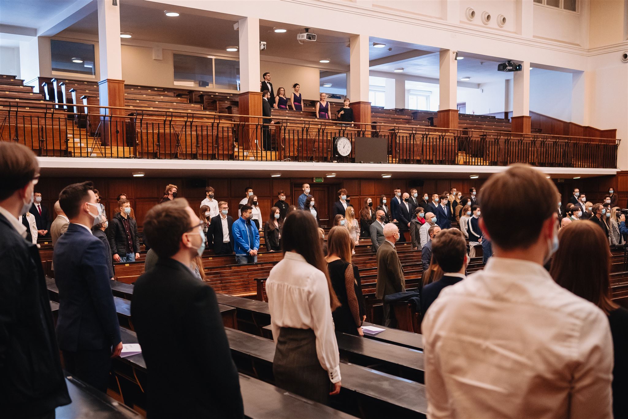 Zgromadzonych gości powitała Dziekan WNE UW dr hab. Gabriela Grotkowska. Podczas wydarzenia wręczono indeksy najlepszym kandydatom na studia I stopnia WNE UW w rekrutacji 2021/2022. Następnie odbyło się ślubowanie studentów I roku przeprowadzone przez Prodziekan ds. studenckich dr Dominikę Gadowską-dos Santos. Najlepsi absolwenci mijającego roku otrzymali listy gratulacyjne. Po chwili zgromadzeni na stojąco wysłuchali „Gaude Mater Polonia” w wykonaniu Chóru Uniwersytetu Warszawskiego.