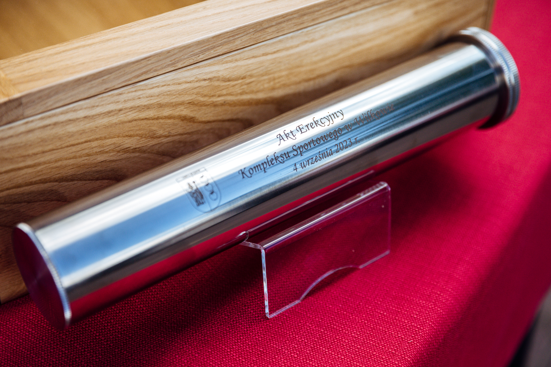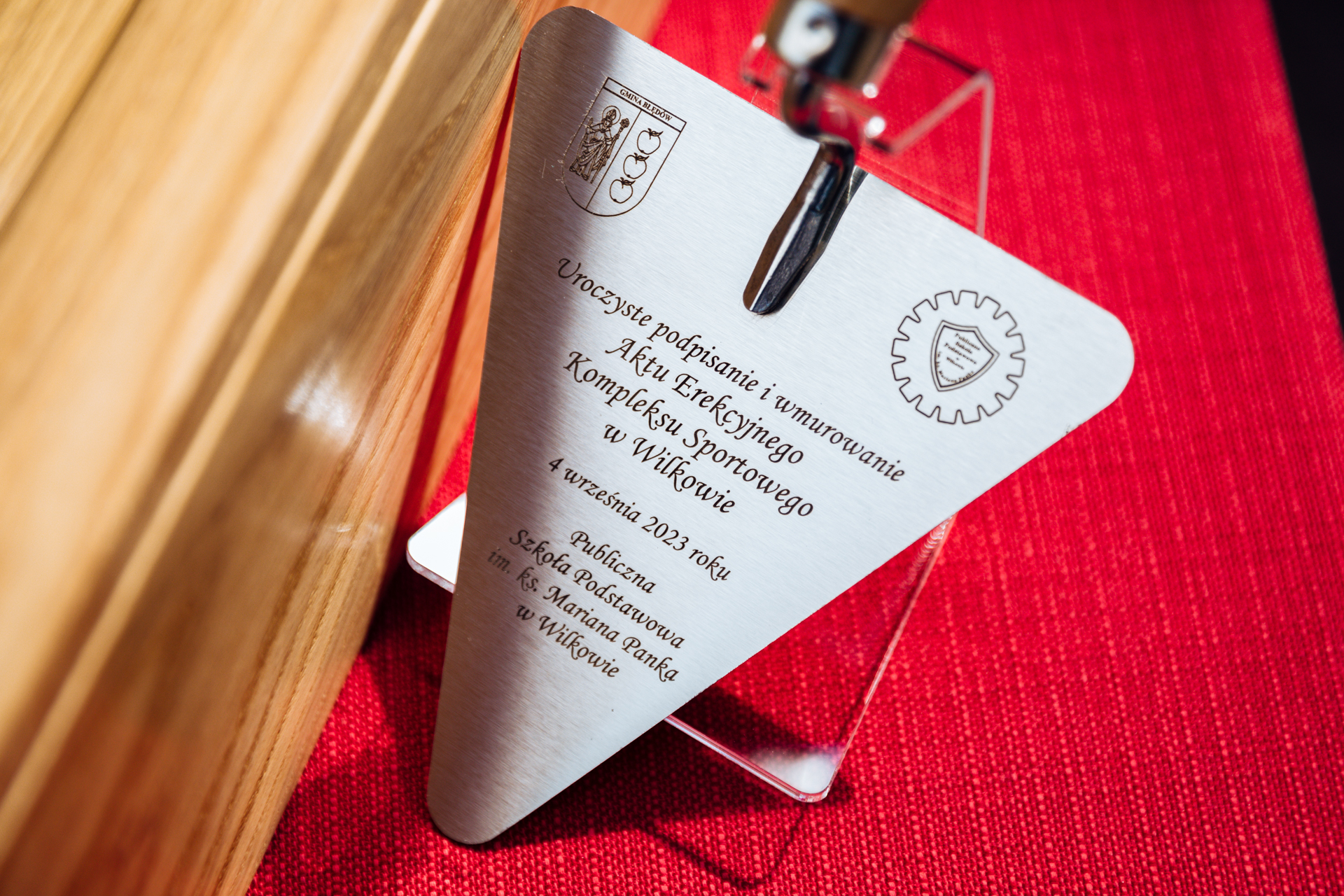 Następnie odbyła się uroczystość podpisania Aktu Erekcyjnego Kompleksu Sportowego w Wilkowie, który w późniejszym etapie budowy zostanie wmurowany.