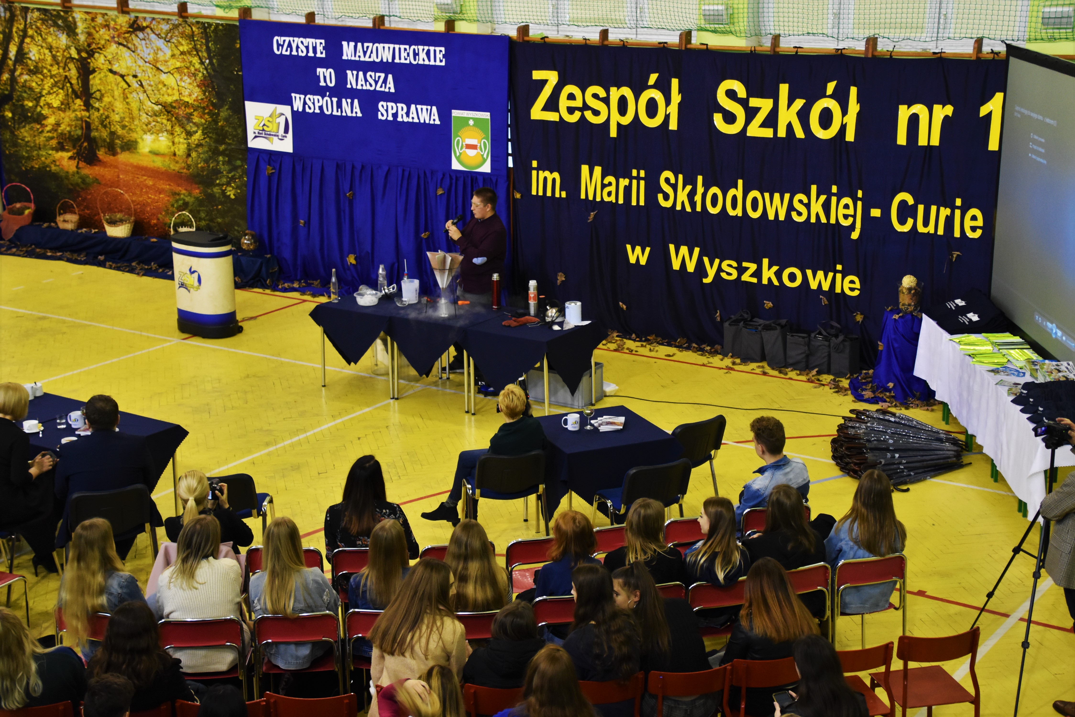 Warsztaty ekologiczne rozpoczęły się spotkaniem w Zespole Szkół nr 1 w Wyszkowie, w trakcie którego odbył się pokaz doświadczeń oraz wykład. Wyemitowano również spot filmowy. Pół godziny przed tą oficjalną częścią spotkania uczniowie Specjalnego Ośrodka Szkolno-Wychowawczego rozpoczęli międzyszkolny konkurs pn. „Matematyczne potyczki z ekologią”, który odbył się pod honorowym patronatem Starosty Wyszkowskiego.