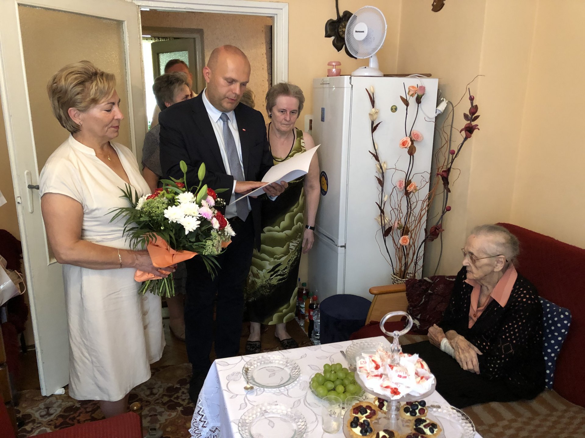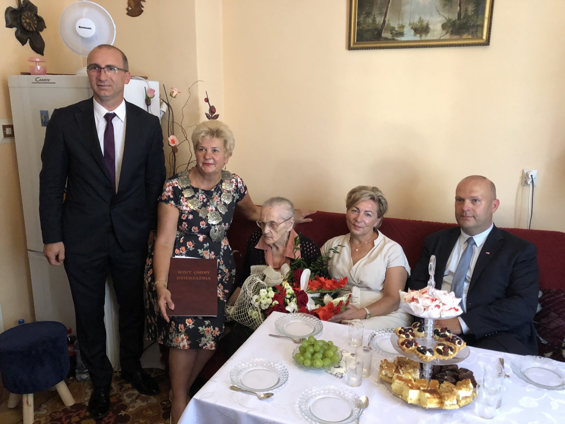 W spotkaniu wzięła również udział Poseł na Sejm RP Anna Cicholska, Wójt Gminy Dzierzążnia Adam Sobiecki, przedstawiciele KRUS i Urzędu Stanu Cywilnego z gminy Dzierzążnia. Podczas spotkania Robert Kochański odczytał i wręczył dostojnej Jubilatce list skierowany na jej ręce przez Prezesa Rady Ministrów RP Mateusza Morawieckiego. Poseł Anna Cicholska złożyła seniorce życzenia urodzinowe i wręczyła bukiet kwiatów. Spotkanie upłynęło w miłej i rodzinnej atmosferze.
