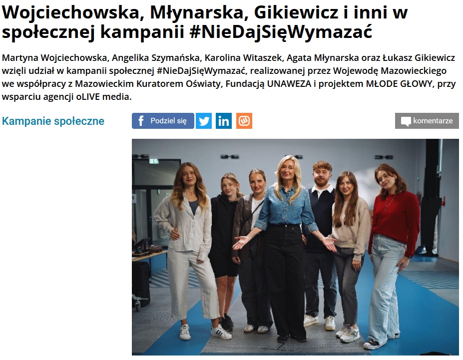 29/10/2024 Wirtualne media: Wojciechowska, Młynarska, Gikiewicz i inni w społecznej kampanii #NieDajSięWymazać. Artykuł do przeczytania TUTAJ.