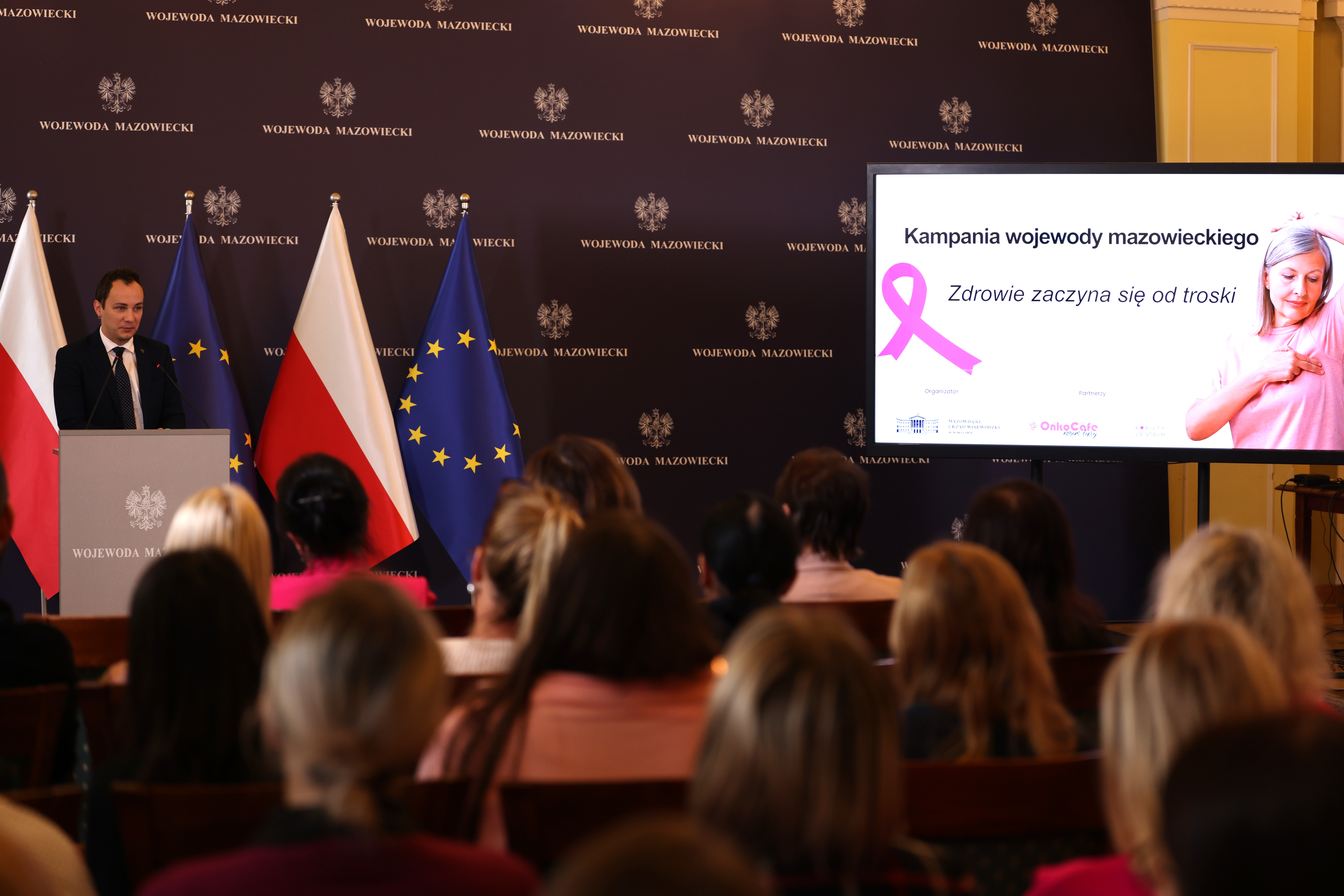 – W Warszawie inaugurujemy kampanię „Zdrowie zaczyna się od troski” – troski o siebie i naszych najbliższych. Październik to miesiąc świadomości raka piersi, dlatego dziś Mazowsze symbolicznie jest kobietą. My, mężczyźni, także chcemy angażować się w te działania – w świadomą profilaktykę i regularne badania. Być częścią tej inicjatywy, bo im więcej nas w tym wspólnym wysiłku, tym większa skuteczność. Ważne, żebyśmy byli świadomi i umieli wspierać nasze partnerki, również w samobadaniu, bo zdrowie zaczyna się od profilaktyki. Zdrowie kobiet to nasza wspólna sprawa – rozmawiajmy o tym, badajmy się i dbajmy o siebie nawzajem