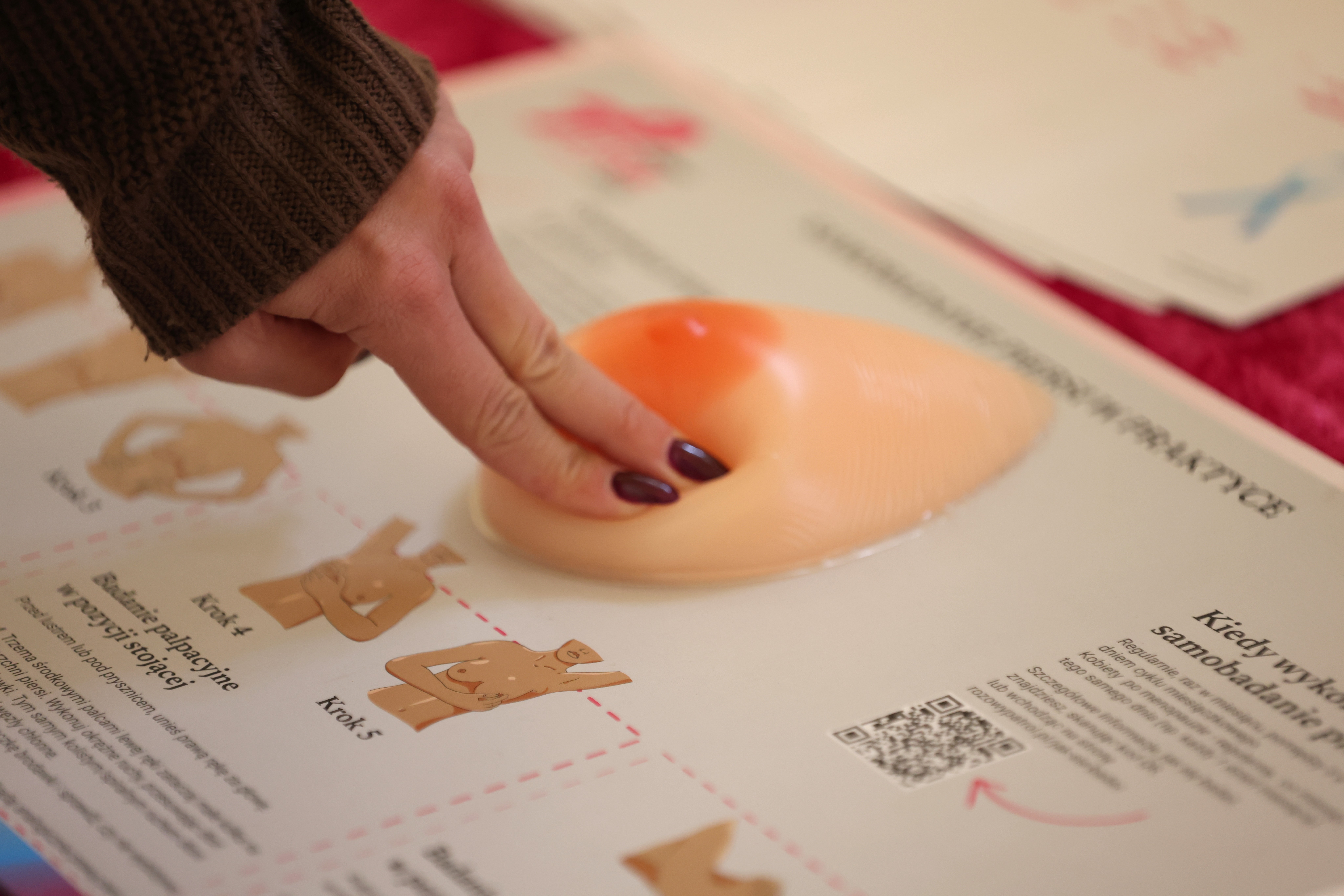Oprócz badania, Panie mają okazję skorzystać m.in. z warsztatów samobadania piersi przy użyciu modeli anatomicznych, poznać zasady wzywania pomocy i udzielania pierwszej pomocy medycznej, skorzystać z porad lekarza ginekologa.