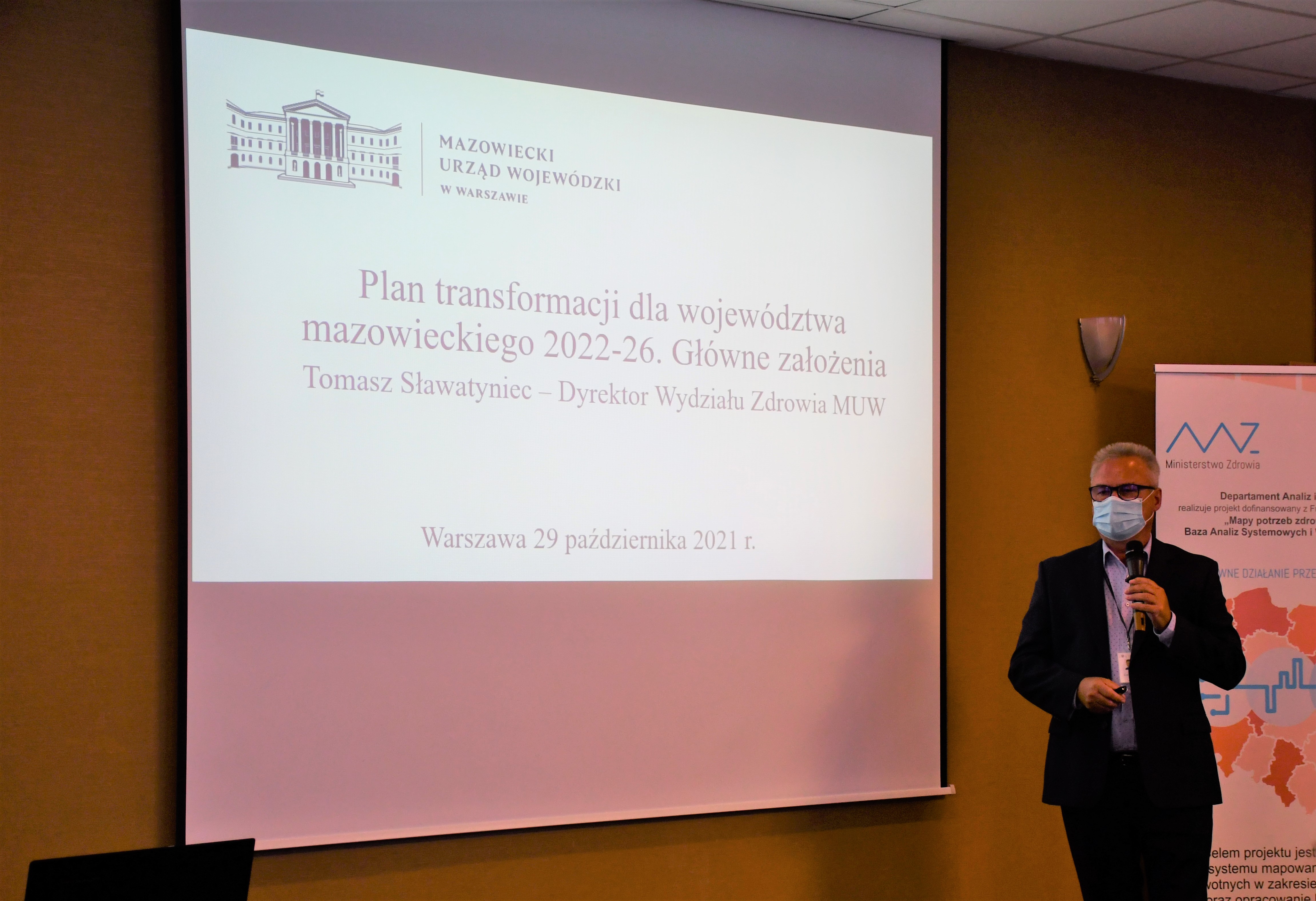 Konferencja odbyła się w piątek, 29 października 2021 roku. Program wydarzenia obejmował: omówienie map potrzeb zdrowotnych, przedstawienie kontekstu wojewódzkiego w nowych mapach potrzeb zdrowotnych, prezentację funkcjonalności narzędzia do analiz – Bazy Analiz Systemowych i Wdrożeniowych, prezentację założeń Krajowego Planu Transformacji, a także prezentację założeń Wojewódzkiego Planu Transformacji, którą przestawił Dyrektor Wydziału Zdrowia Mazowieckiego Urzędu Wojewódzkiego Tomasz Sławatyniec.