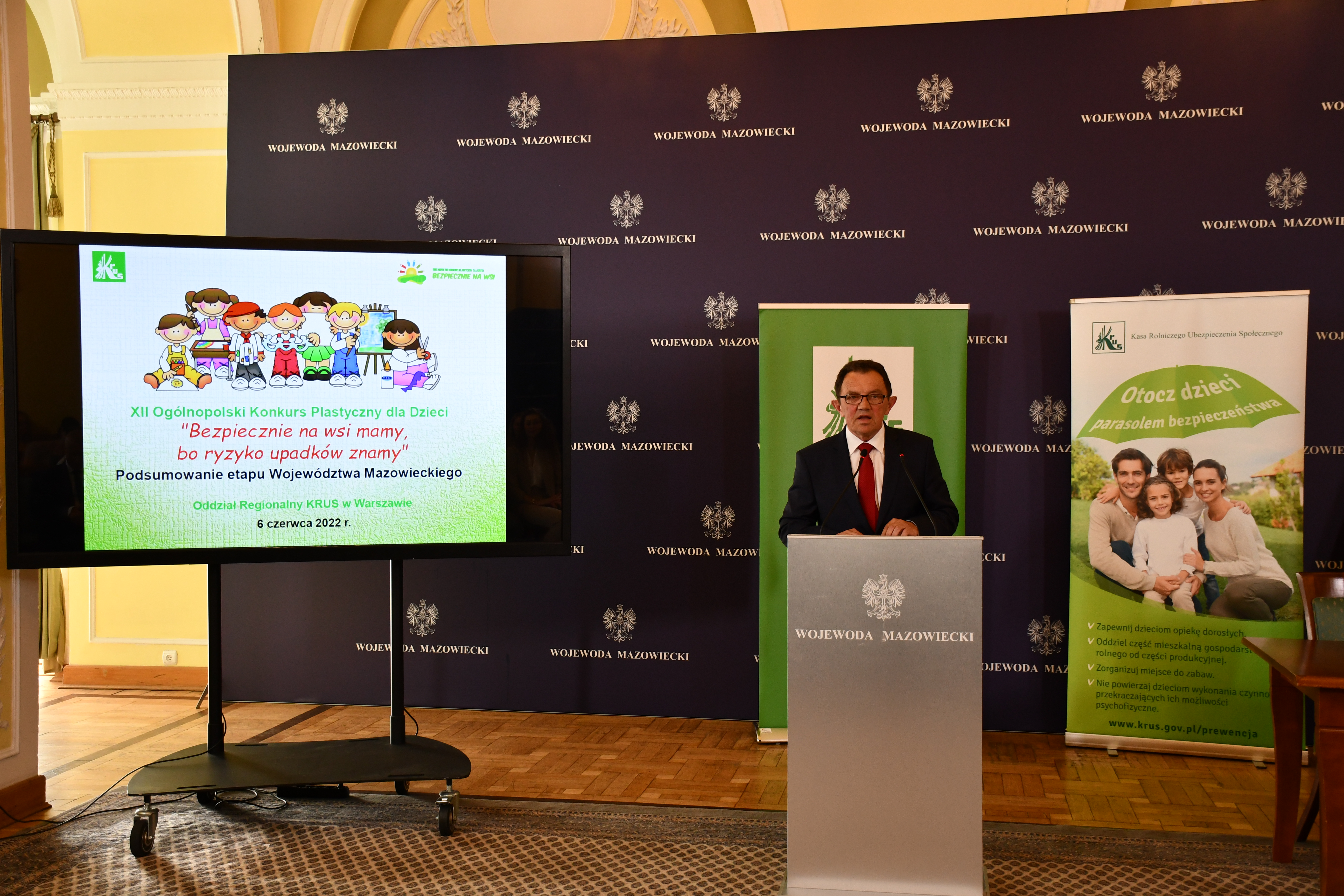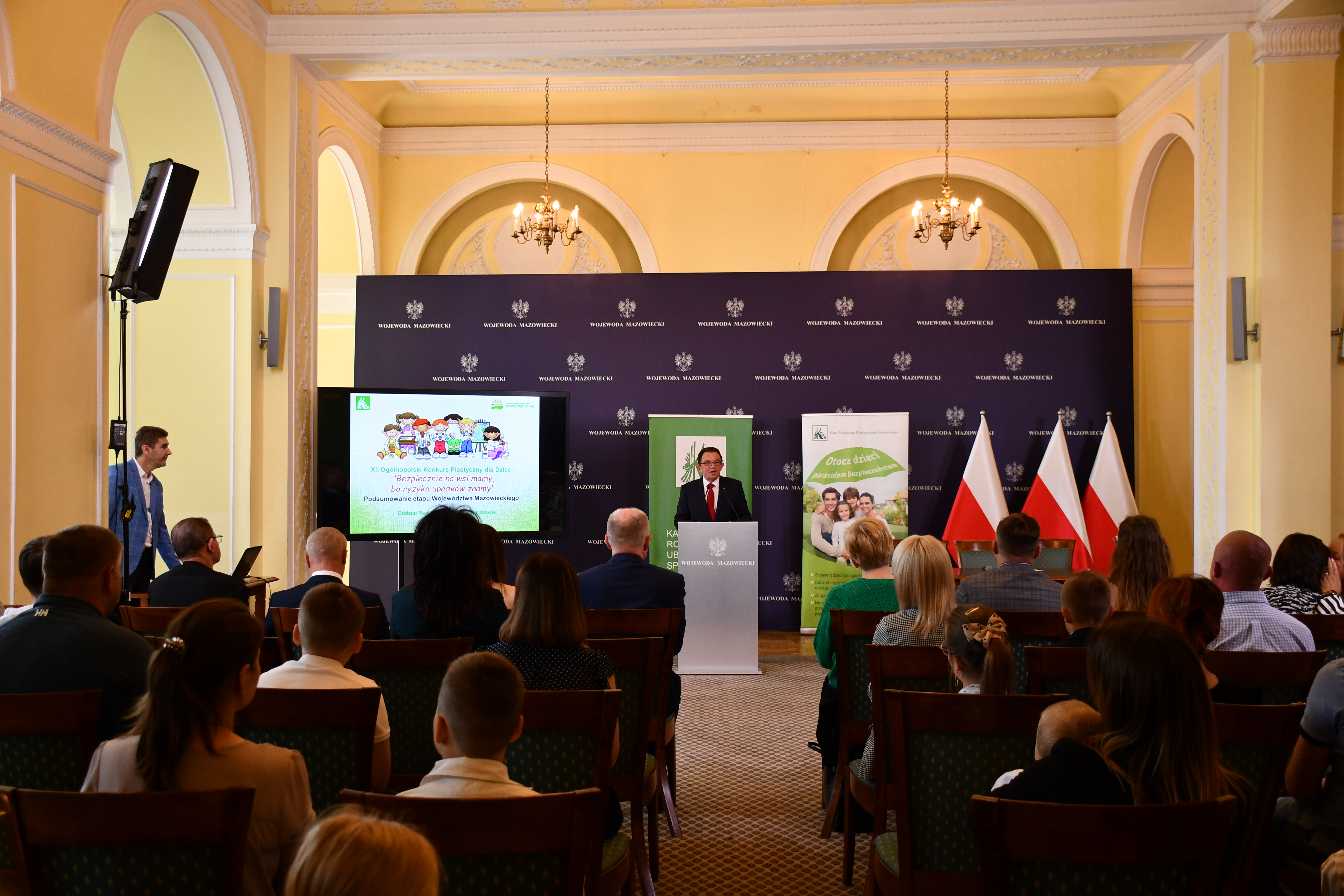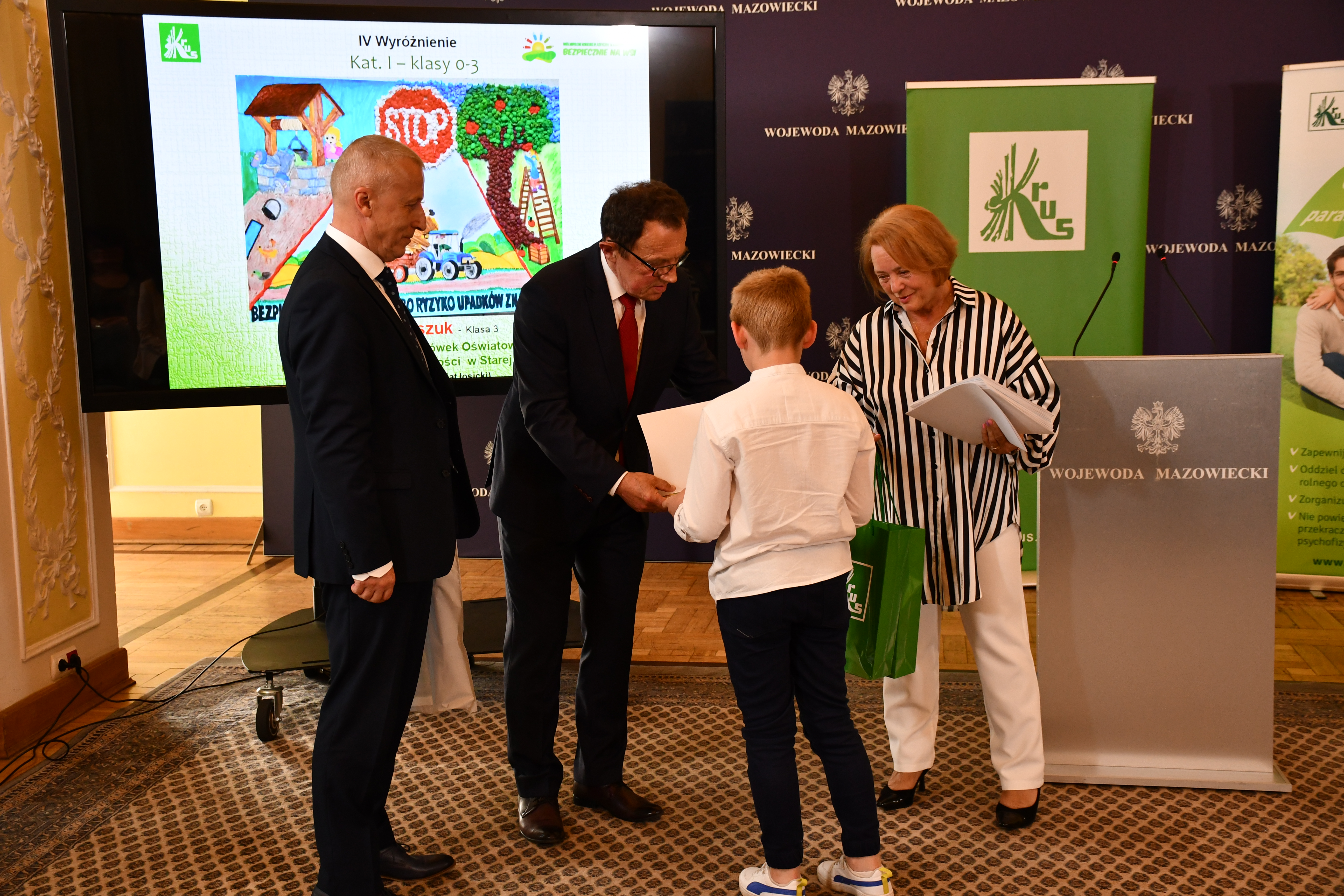 6 czerwca br. odbyło się rozstrzygnięcie konkursu plastycznego dla dzieci na temat bezpieczeństwa na wsi. Uroczystość zorganizowano w Mazowieckim Urzędzie Wojewódzkim. Udział wzięły m.in.: Mazowiecki Wicekurator Oświaty Dorota Skrzypek oraz Pełnomocnik Wojewody ds. Równego Traktowania Elżbieta Opara-Zawistowska. Honorowy patronat nad Konkursem objął Minister Rolnictwa i Rozwoju Wsi.