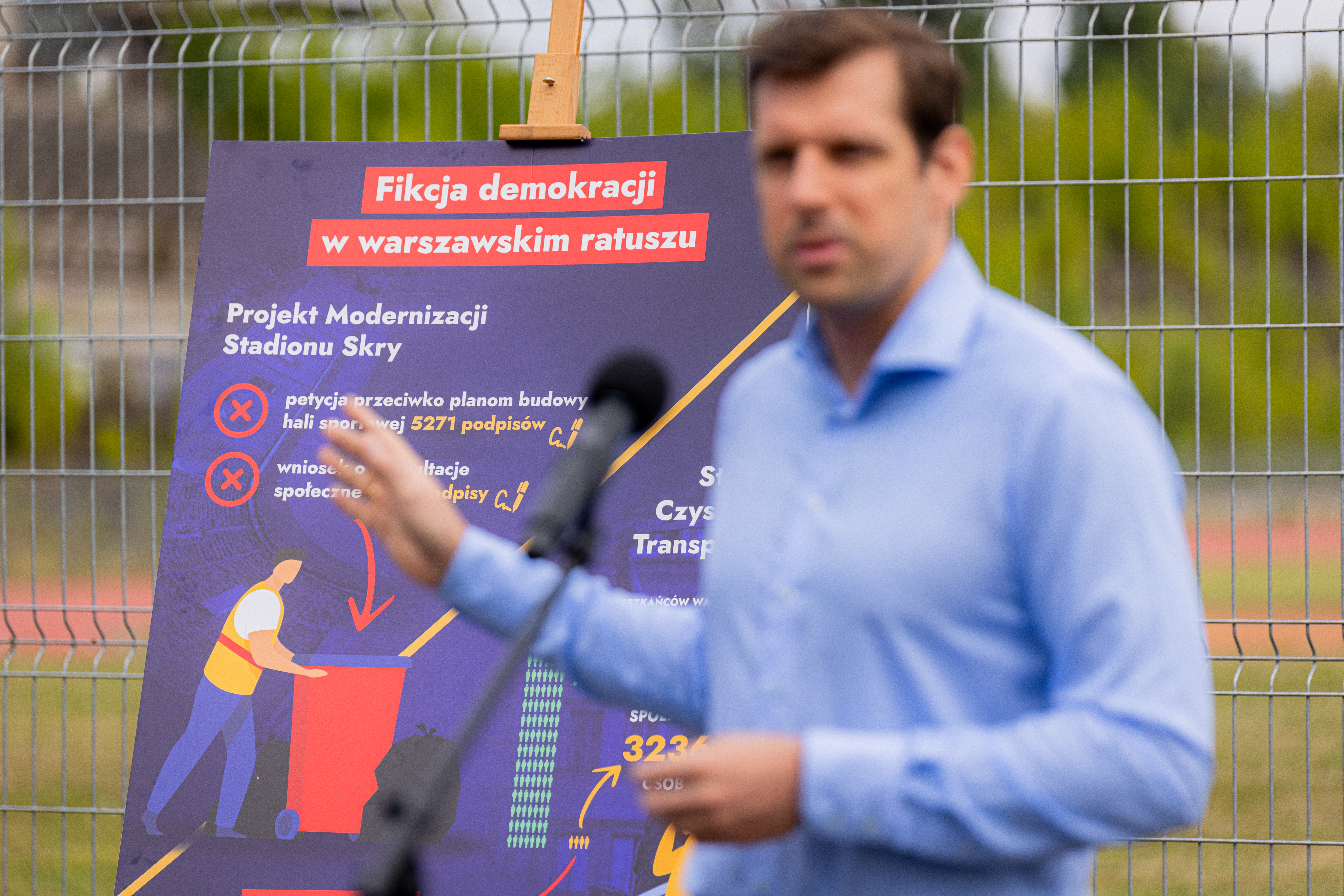 - W tym tygodniu Pan Prezydent Trzaskowski i rządzący stolicą, przedstawili koncepcję architektoniczną na zagospodarowanie stadionu Skry, który znajduje się w opłakanym stanie. Na konferencji Prezydenta zabrakło jednak mieszkańców Ochoty i zabrakło mieszkańców Warszawy. Wszystkim nam zależy, żeby to miejsce było nowoczesne, aby się rozwijało, aby tętniło życiem. Ale przyszłość tego miejsca powinna być decydowana razem z mieszkańcami. Wiemy, że 7 tys. osób, w różny sposób, podpisało się w sprawie stadionu Skry. Czy to wyrażając sprzeciw wobec wcześniej zaprezentowanej koncepcji, jak i też wnioskując o konsultacje społeczne. Co się stało z tymi podpisami? Jedyne co się stało z tym głosem mieszkańców to, co jest nam znane z informacji medialnych i różnego rodzaju wystąpień, to Pan Prezydent Trzaskowski na ostatniej sesji absolutoryjnej, wygłosił stwierdzenie do radnych Rady Miejskiej, iż ci, którzy protestują w jakiejś formule przeciwko obecnej koncepcji architektonicznej Skry, kompletnie nie rozumieją sportowych potrzeb miasta. Chciałbym w związku z tym stanąć w kategorycznej opozycji, wobec tego co mówi Prezydent Trzaskowski i stanąć ramię w ramię z mieszkańcami, którzy zbierają tutaj podpisy po to, aby przeprowadzić konsultacje społeczne, ponieważ jako Wojewoda uważam, że ani Wójt, ani Burmistrz, ani Prezydent jakiegokolwiek miasta, ani nawet Starosta nie jest od tego, by mieszkańców pouczać, pryncypialnie i arogancko informować ich co wiedzą, co rozumieją, a czego nie rozumieją. Apeluję! Zwracam się za pośrednictwem mediów, ponieważ nie ma innych narzędzi prawnych, do Prezydenta Trzaskowskiego, aby nie bał się mieszkańców Ochoty, aby nie bał się mieszkańców Warszawy i aby rozpisał koniecznie konsultacje społeczne w tej sprawie i nie obawiał się głosu mieszkańców, bo głos mieszkańców jest ważny, interesujący i może wzbogacić tę koncepcję architektoniczną – powiedział Wojewoda Mazowiecki Tobiasz Bocheński.