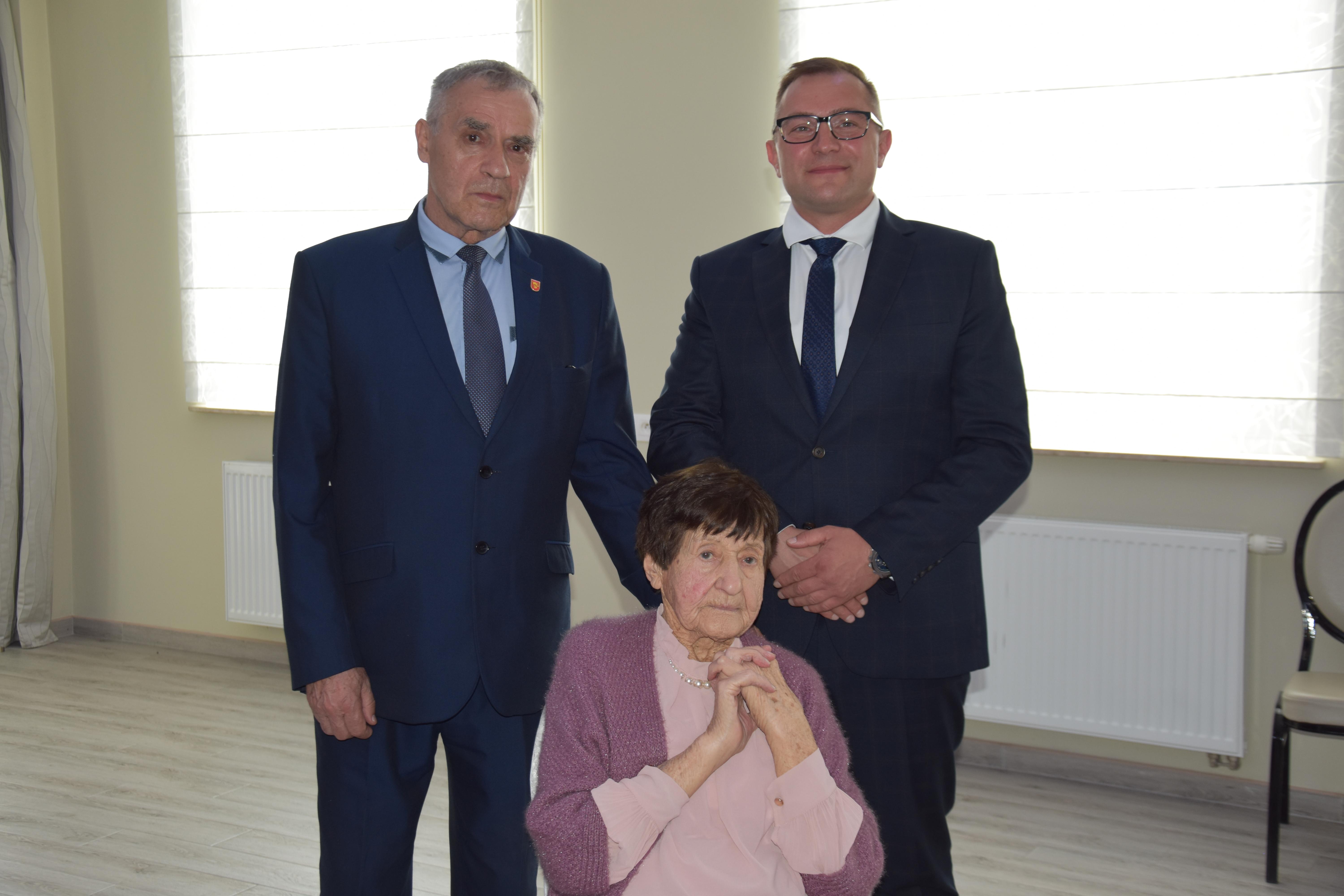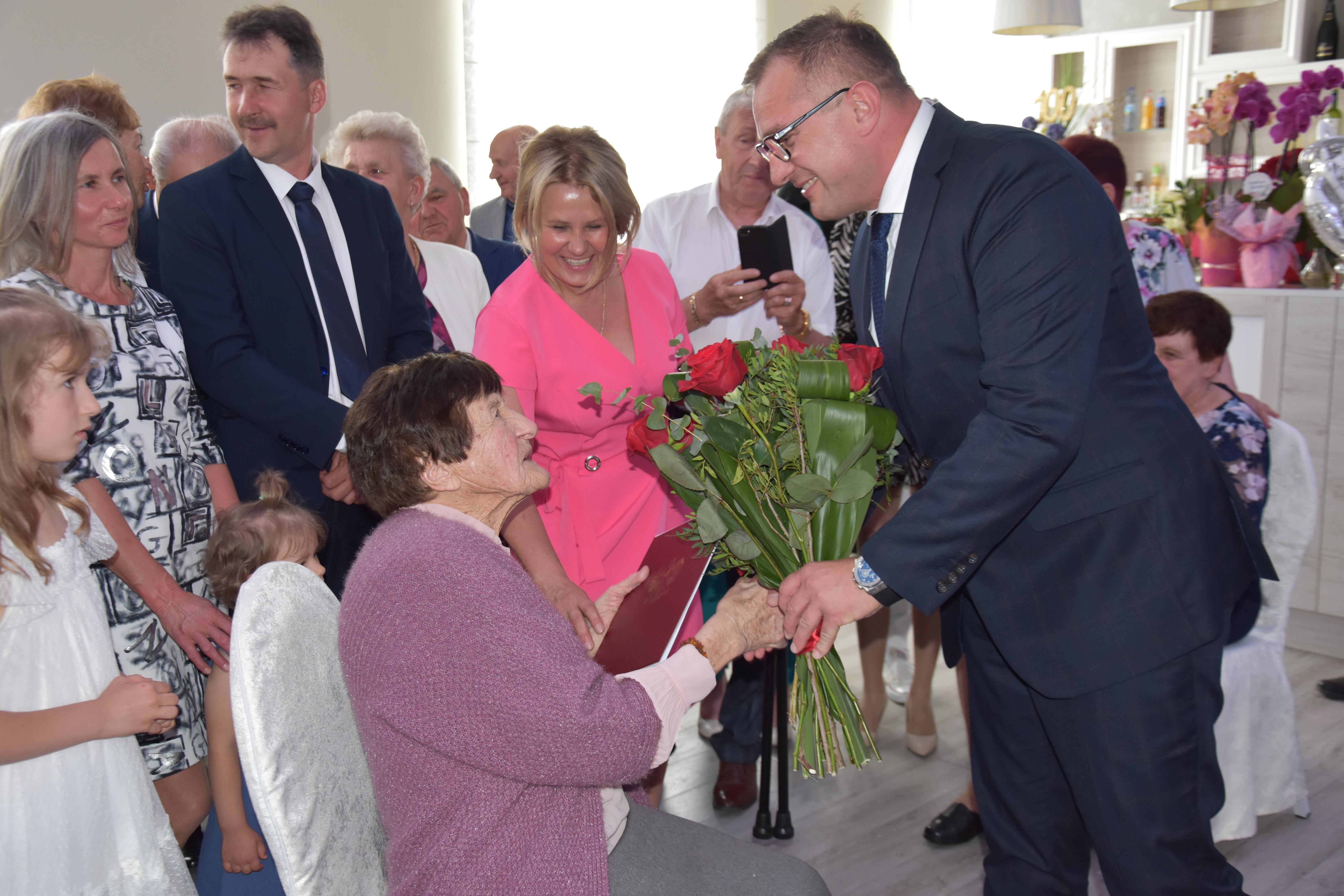 Po odczytaniu listu od Prezesa Rady Ministrów Donalda Tuska Kierownik Delegatury MUW w Radomiu Rafał Molga przekazał Pani Genowefie życzenia, gratulacje i kwiaty od Wojewody Mazowieckiego Mariusza Frankowskiego.