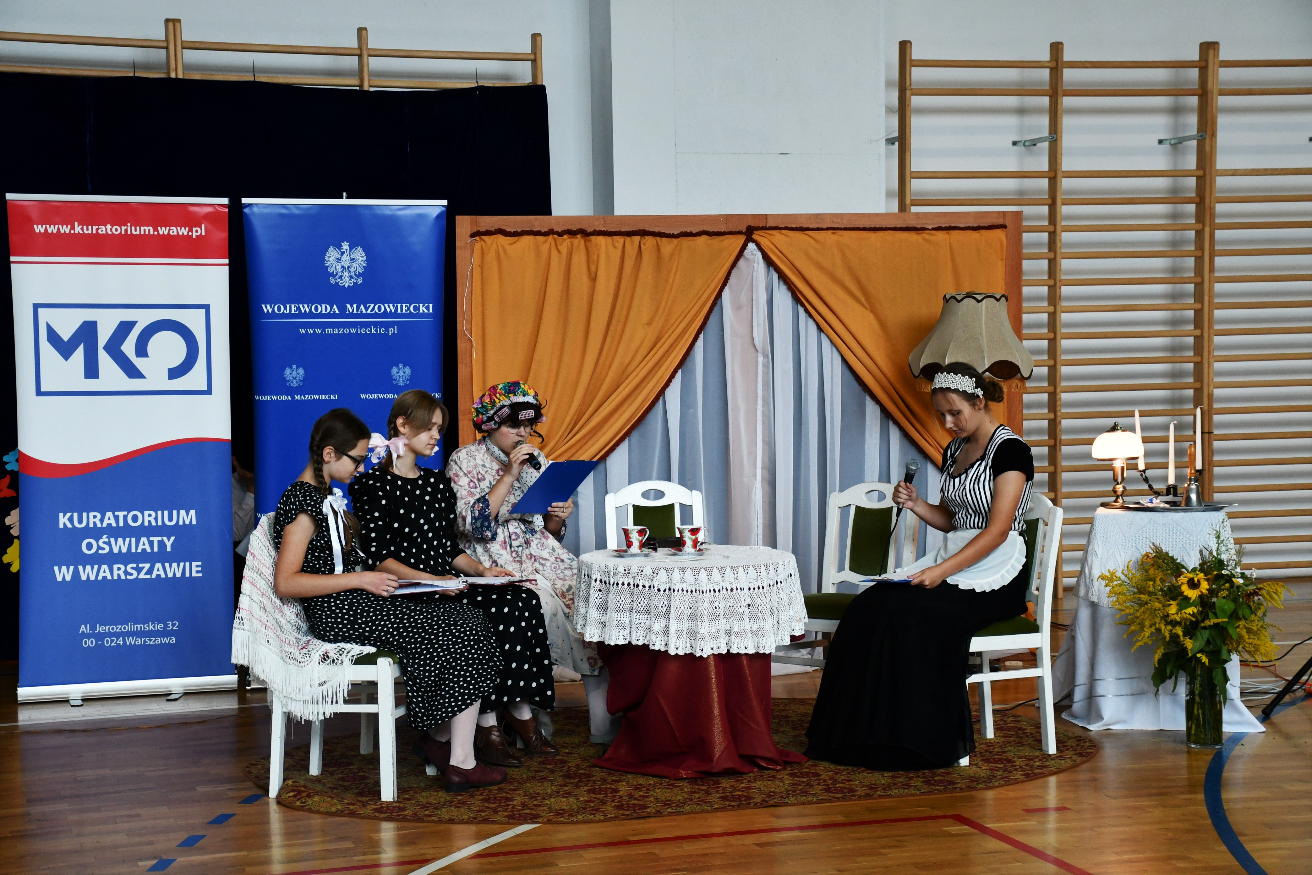 Następnie uczniowie zaprezentowali część artystyczną, w trakcie której przeczytali m.in. fragment lektury pt. „Moralność pani Dulskiej” Gabrieli Zapolskiej, której utwór jest lekturą Jubileuszowej 10. edycji Narodowego Czytania.