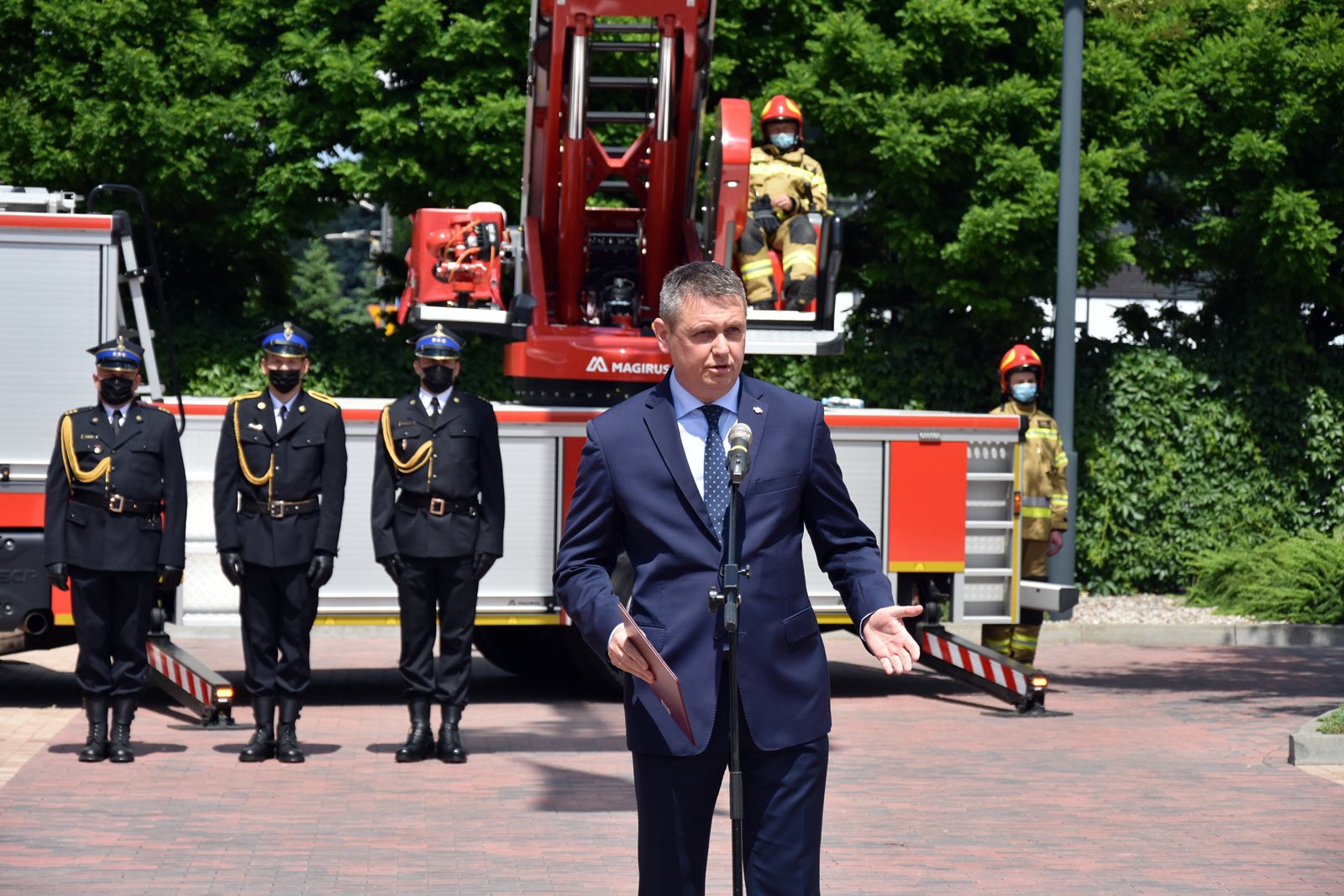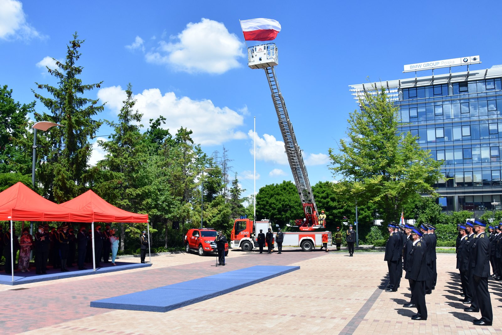 Uroczystości rozpoczęły się meldunkiem dowódcy przyjętym przez Macieja Wąsika Sekretarza Stanu w Ministerstwie Spraw Wewnętrznych i Administracji, podniesieniem flagi państwowej oraz odegraniem hymnu narodowego. Następnie, gości przywitał nadbryg. Jarosław Nowosielski, Mazowiecki Komendant Wojewódzki PSP.