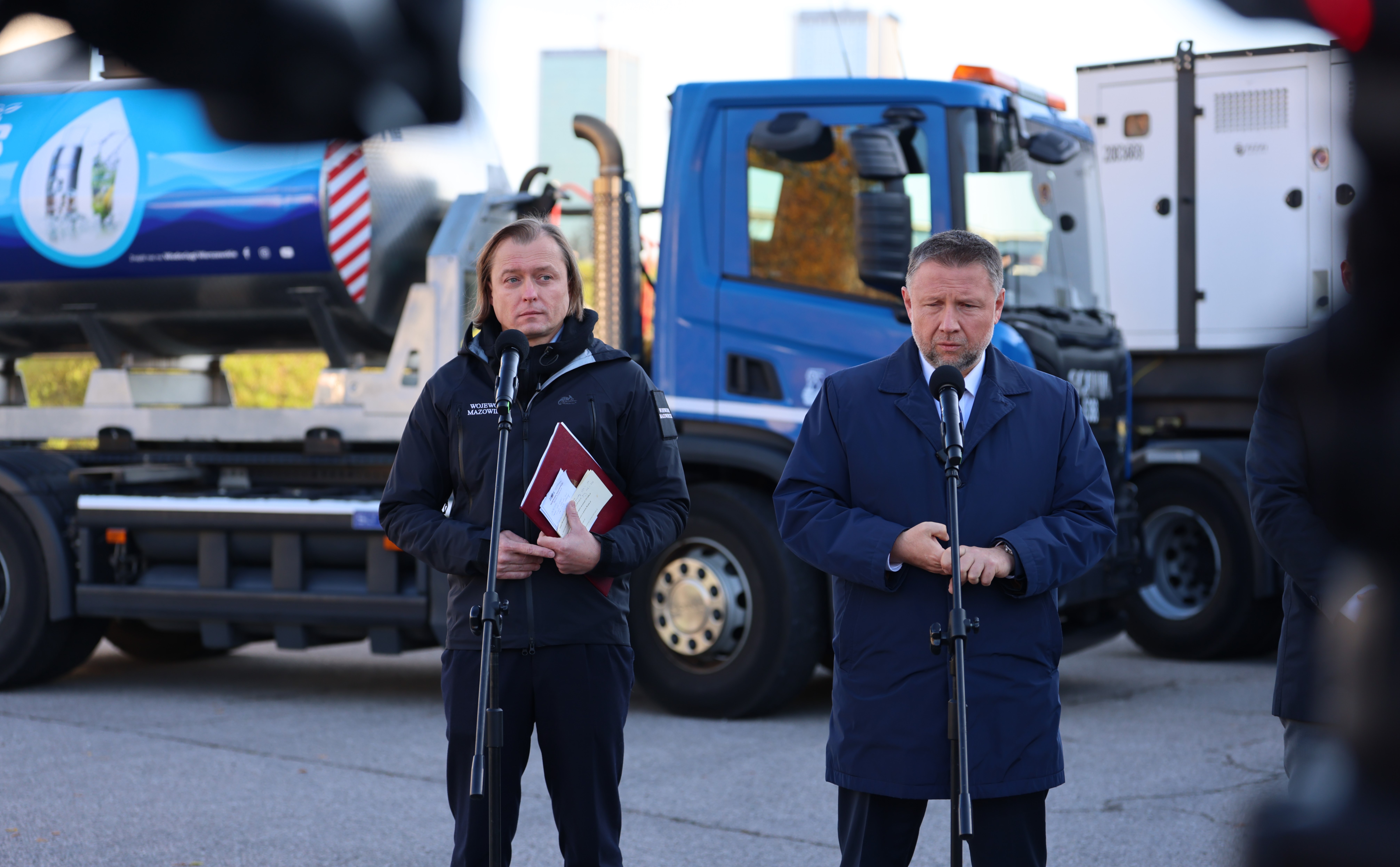 W konferencji prasowej na terenie warszawskich wodociągów wzięli również udział prezydent Warszawy Rafał Trzaskowski.