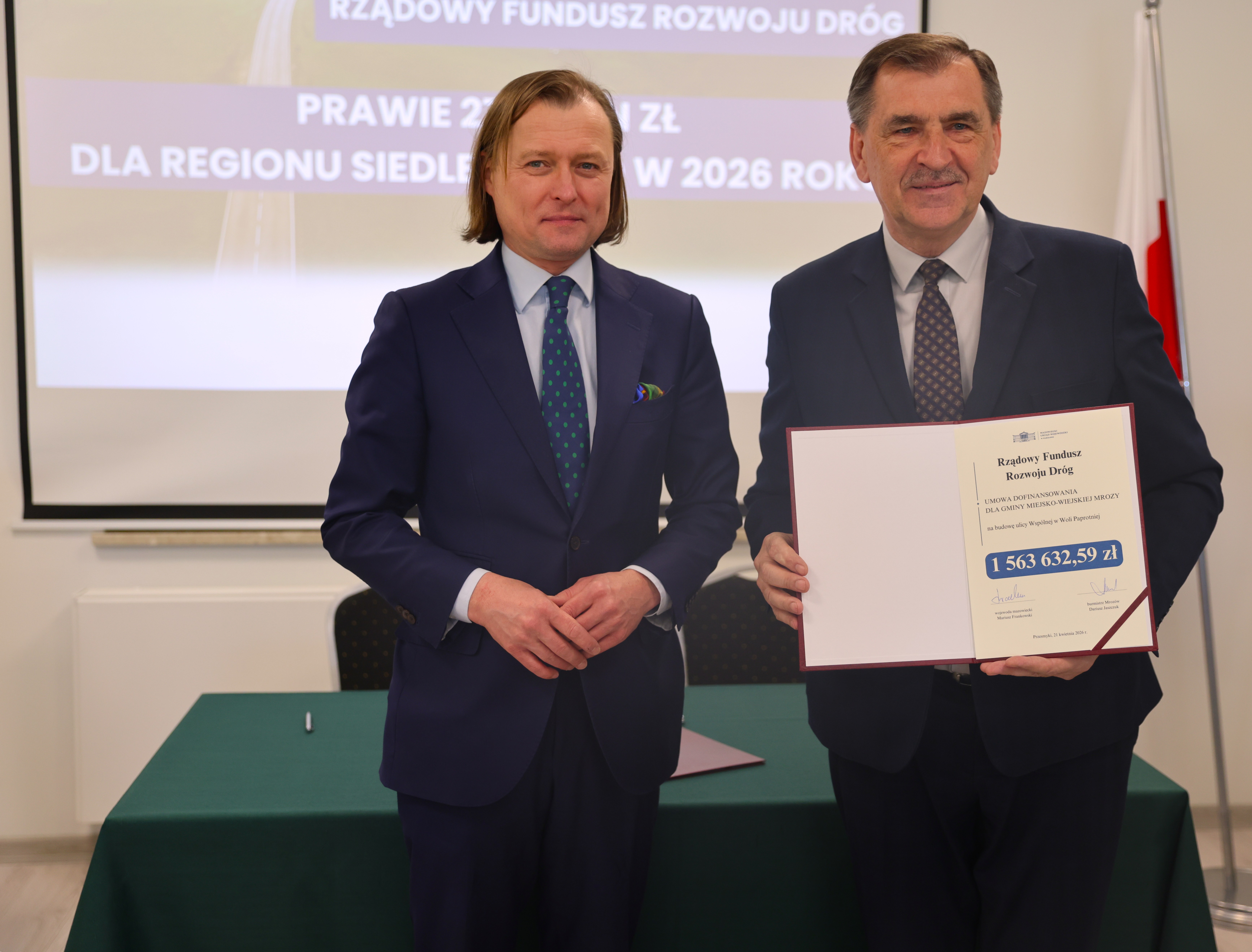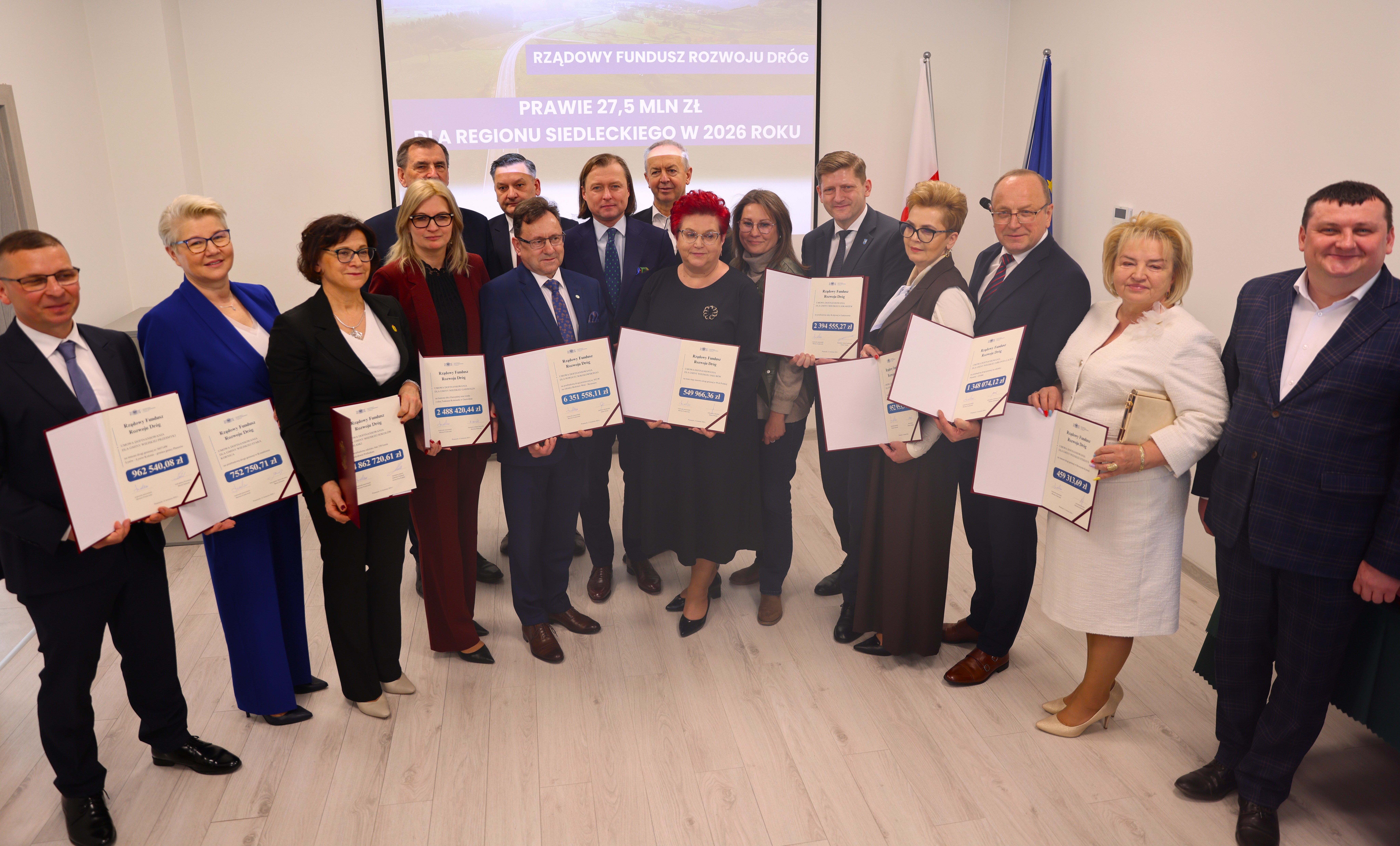 Samorządy z regionu siedleckiego pozyskały prawie 24 mln zł na rozwój lokalnej infrastruktury drogowej. Wojewoda mazowiecki podpisał z samorządowcami 12 umów w ramach Rządowego Funduszu Rozwoju Dróg. Dzięki tym środkom zrealizowane zostaną inwestycje obejmujące budowę, przebudowę oraz remonty dróg lokalnych. To konkretne działania, które przełożą się na większe bezpieczeństwo w ruchu drogowym oraz poprawę komfortu codziennego przemieszczania się mieszkańców.