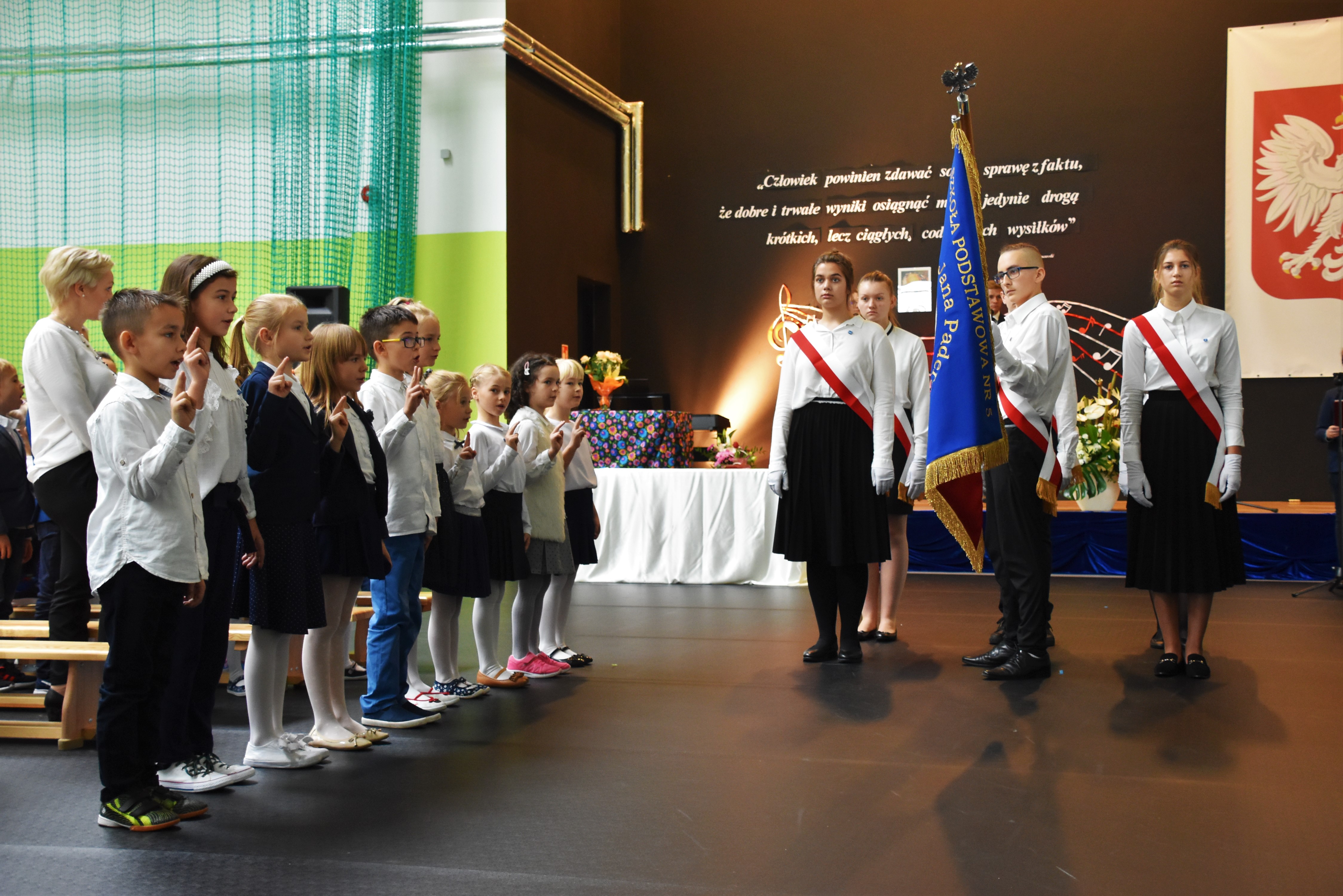 W obecności gości i społeczności Szkoły Podstawowej im. Ignacego Jana Paderewskiego w Pruszkowie uczniowie złożyli ślubowanie na otrzymany sztandar.