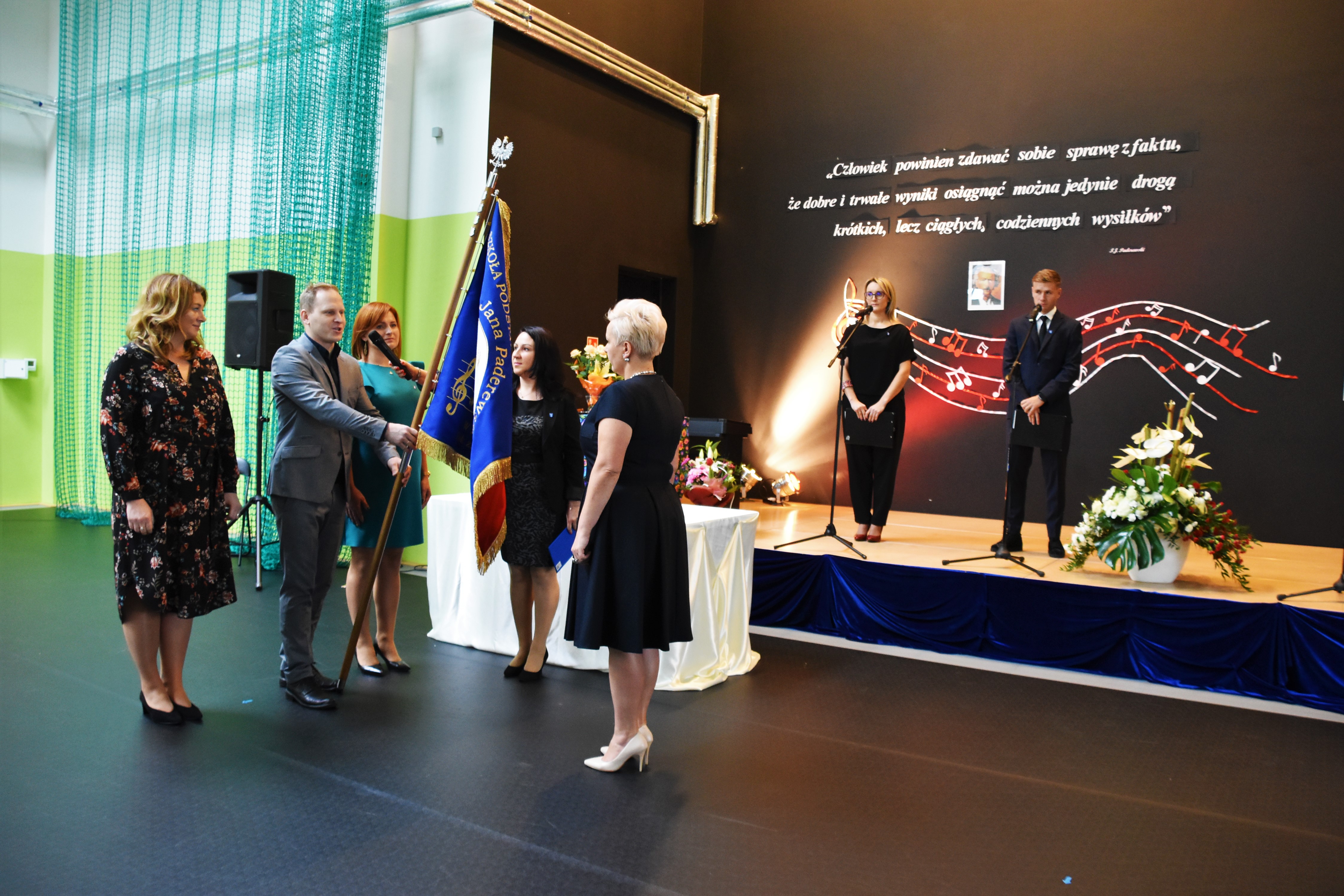 Uroczystość nadania patrona oraz przekazania sztandaru pruszkowskiej szkole poprzedziły: wspólnie odśpiewany hymn państwowy, powitanie przybyłych gości przez dyrektora placówki, Panią Anetę Pawłowską oraz wystąpienia okolicznościowe. W trakcie wydarzenia głos zabrał Wojewoda Mazowiecki Zdzisław Sipiera.